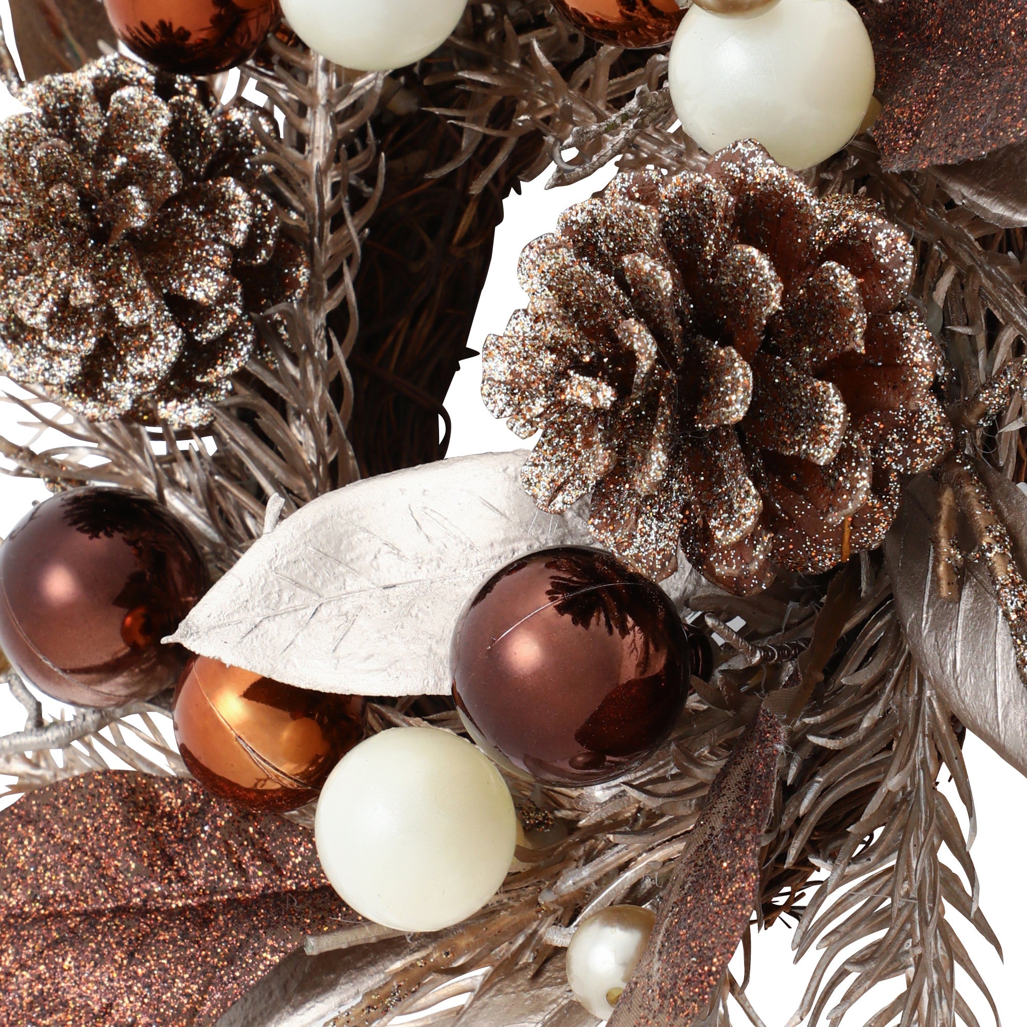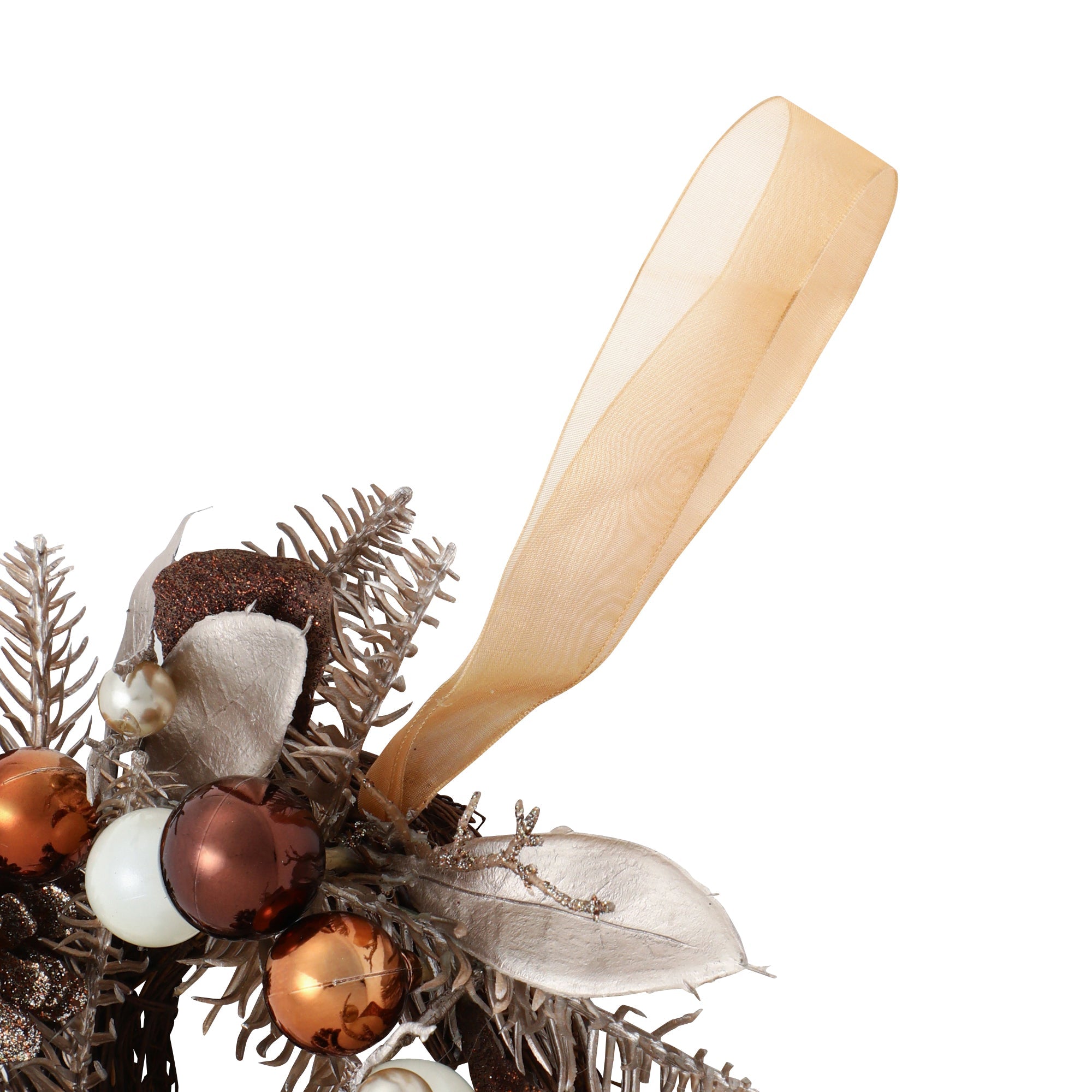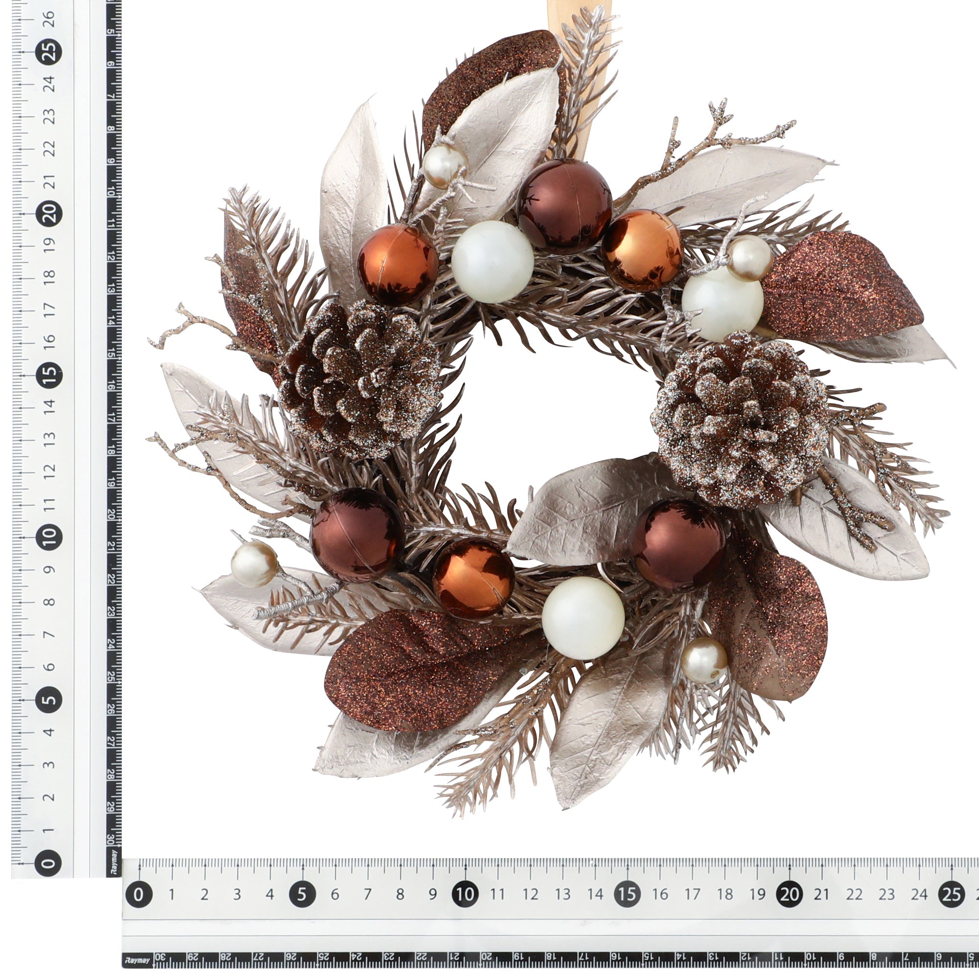 エレガントで高級感のあるリースです。 葉っぱにまぶしたグリッターがキラキラと輝き、クリスマスムードを盛り上げます。