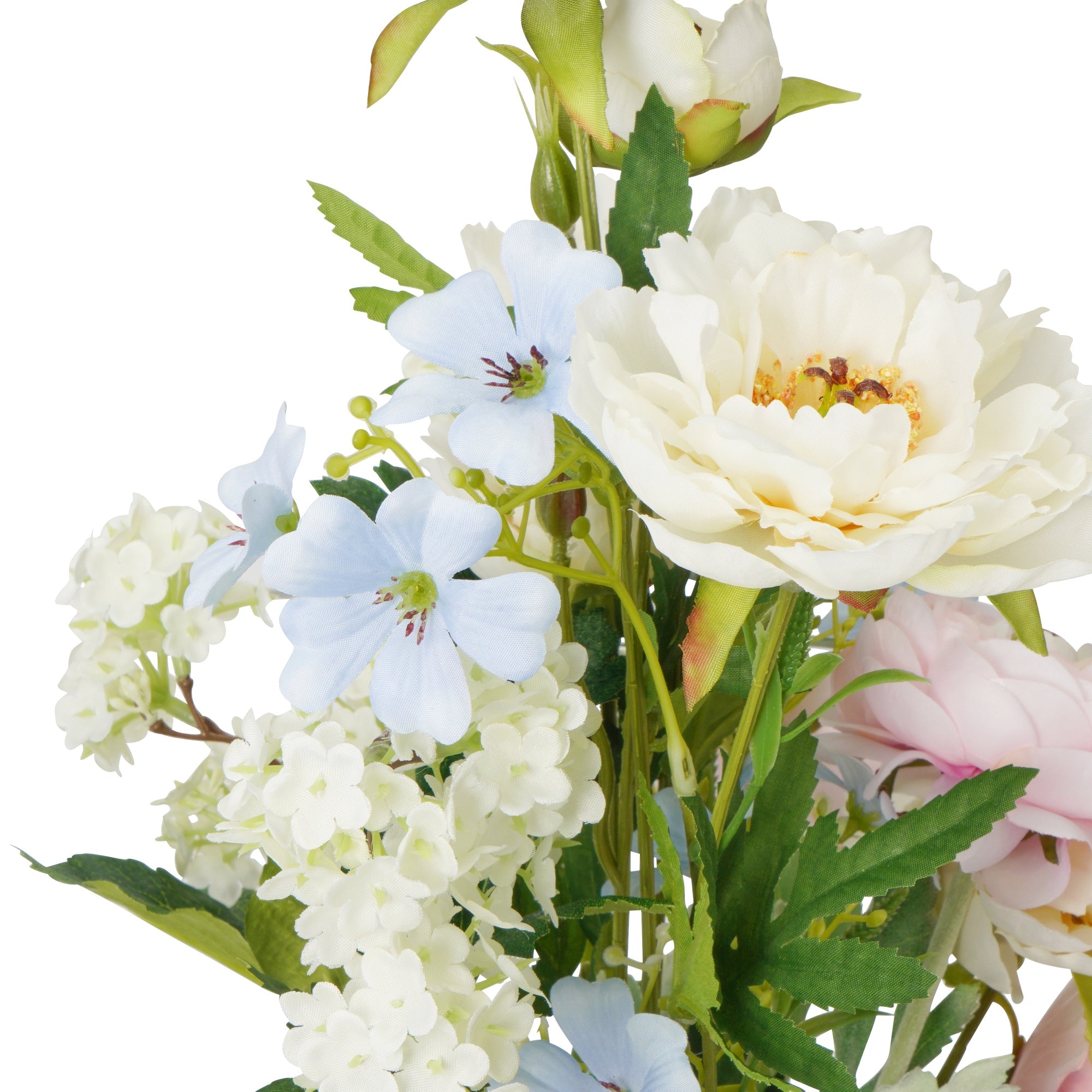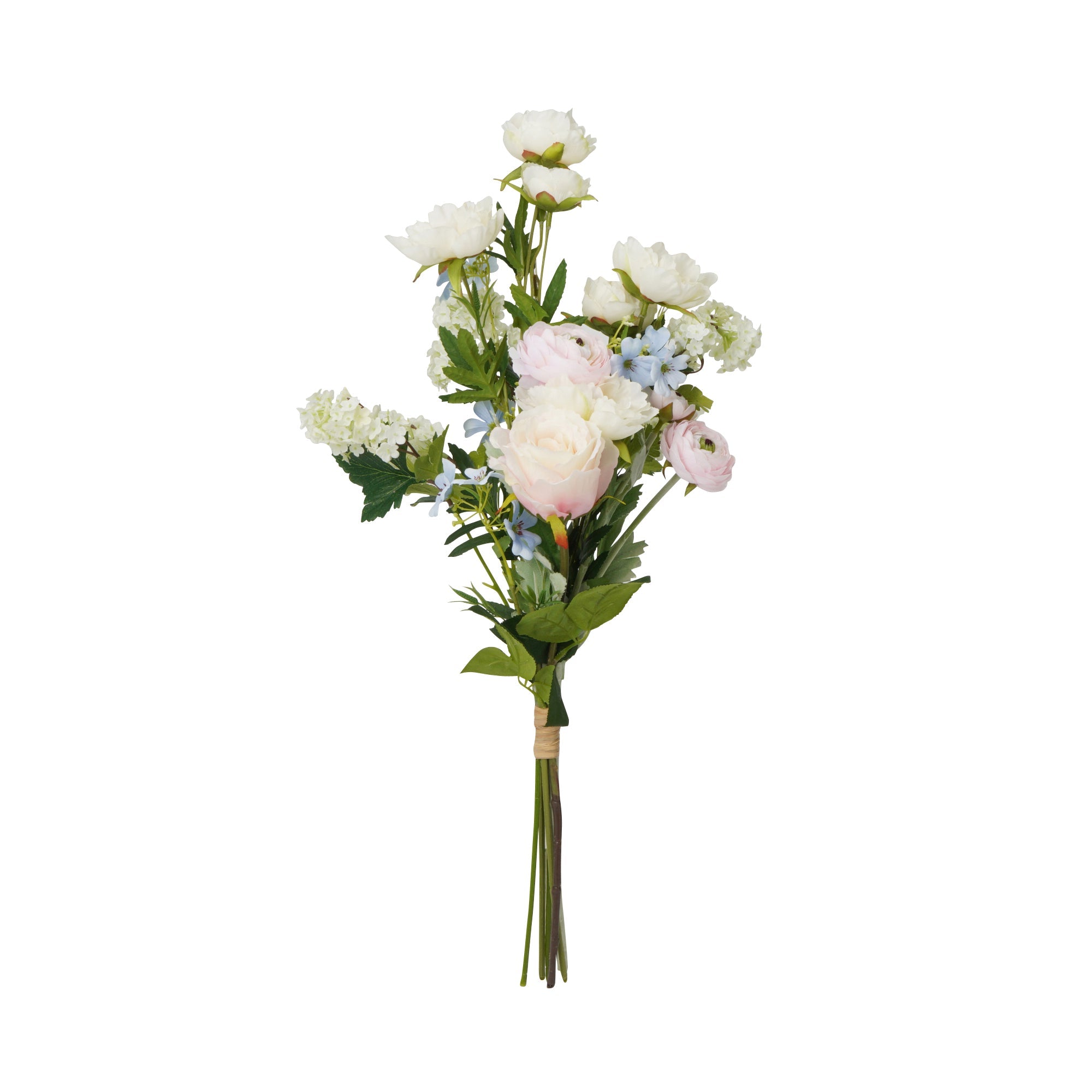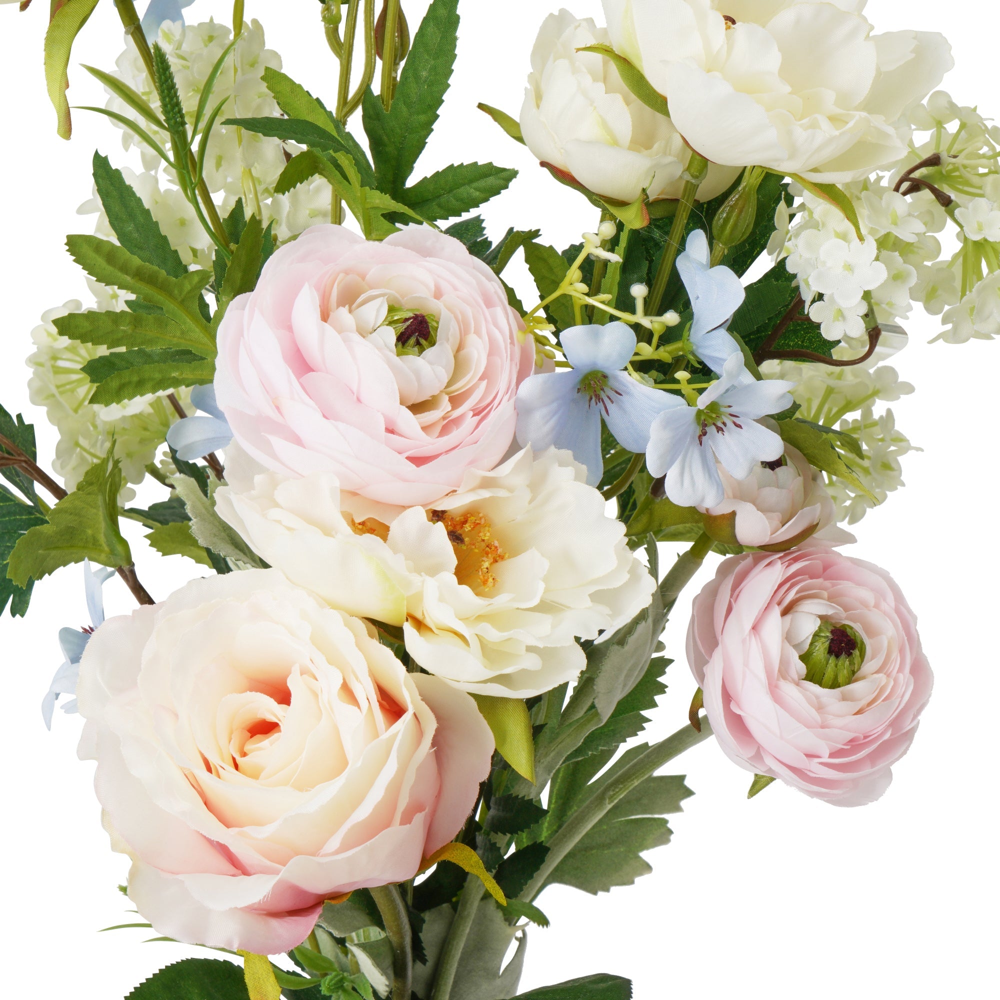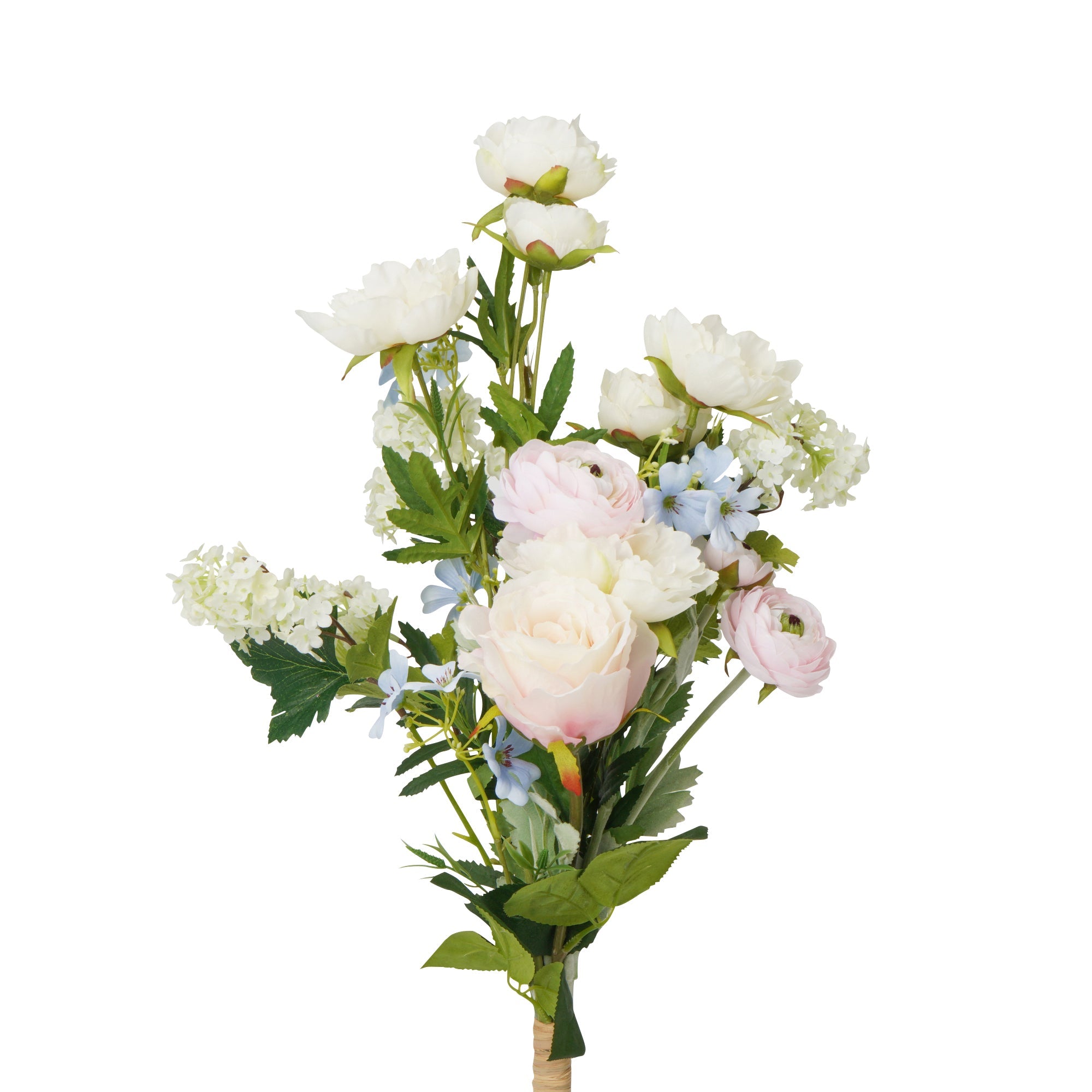 そのまま飾れてお手入れいらず、綺麗なお花をずっと楽しめるアートフラワーのブーケです。淡いカラーでナチュラルキュートな印象にまとめました。ホワイトやパステルカラーのフラワーベースとのコーディネートがおすすめです。