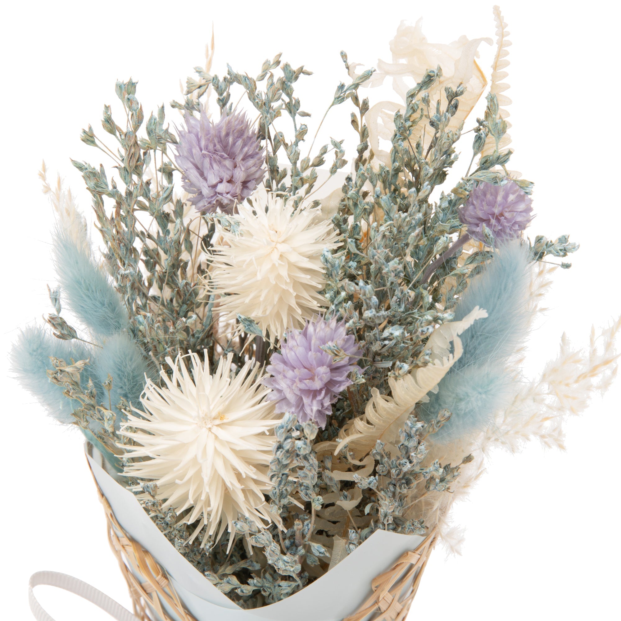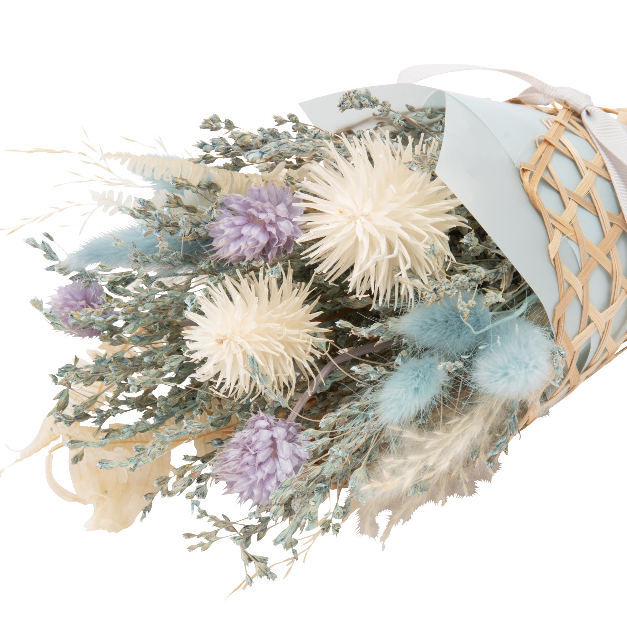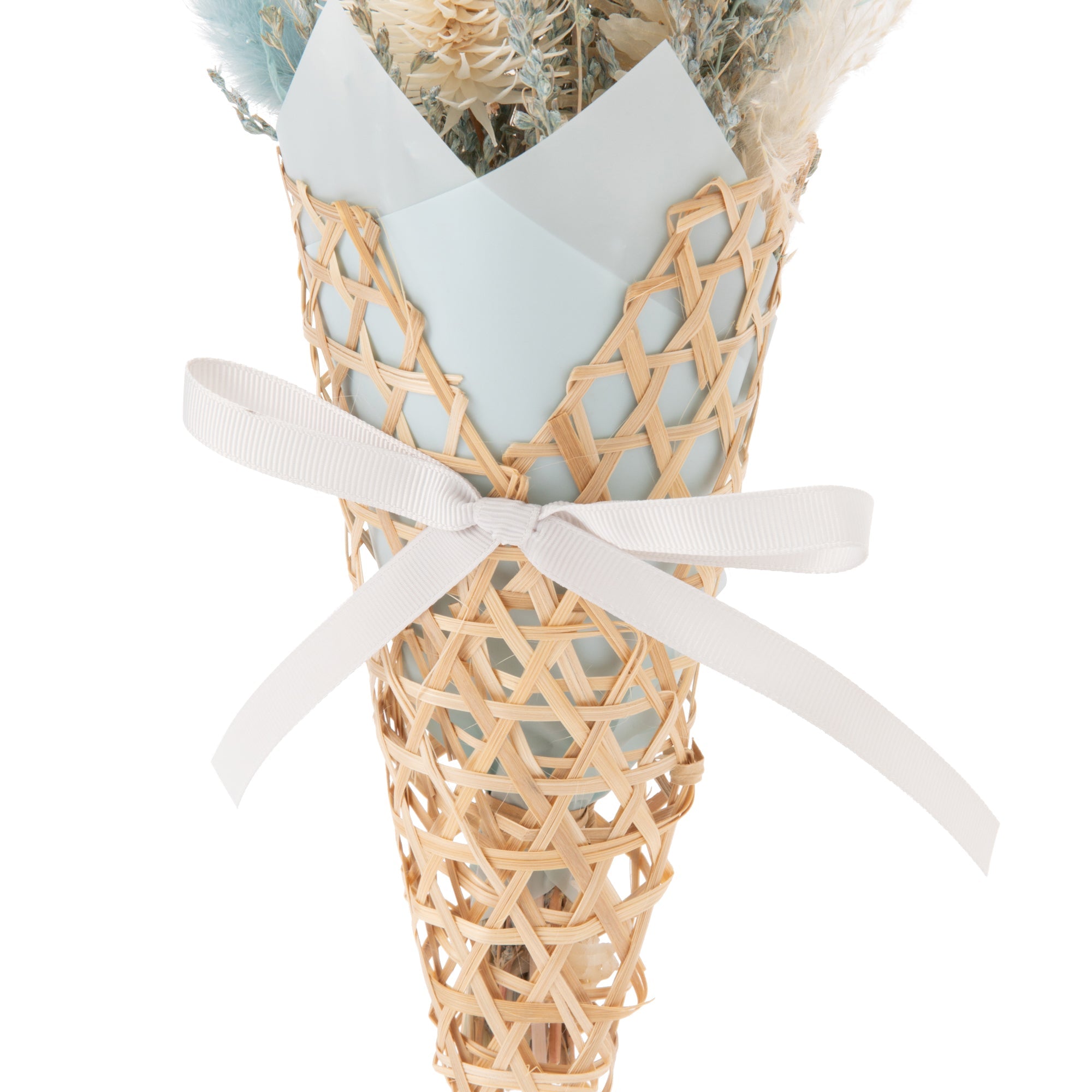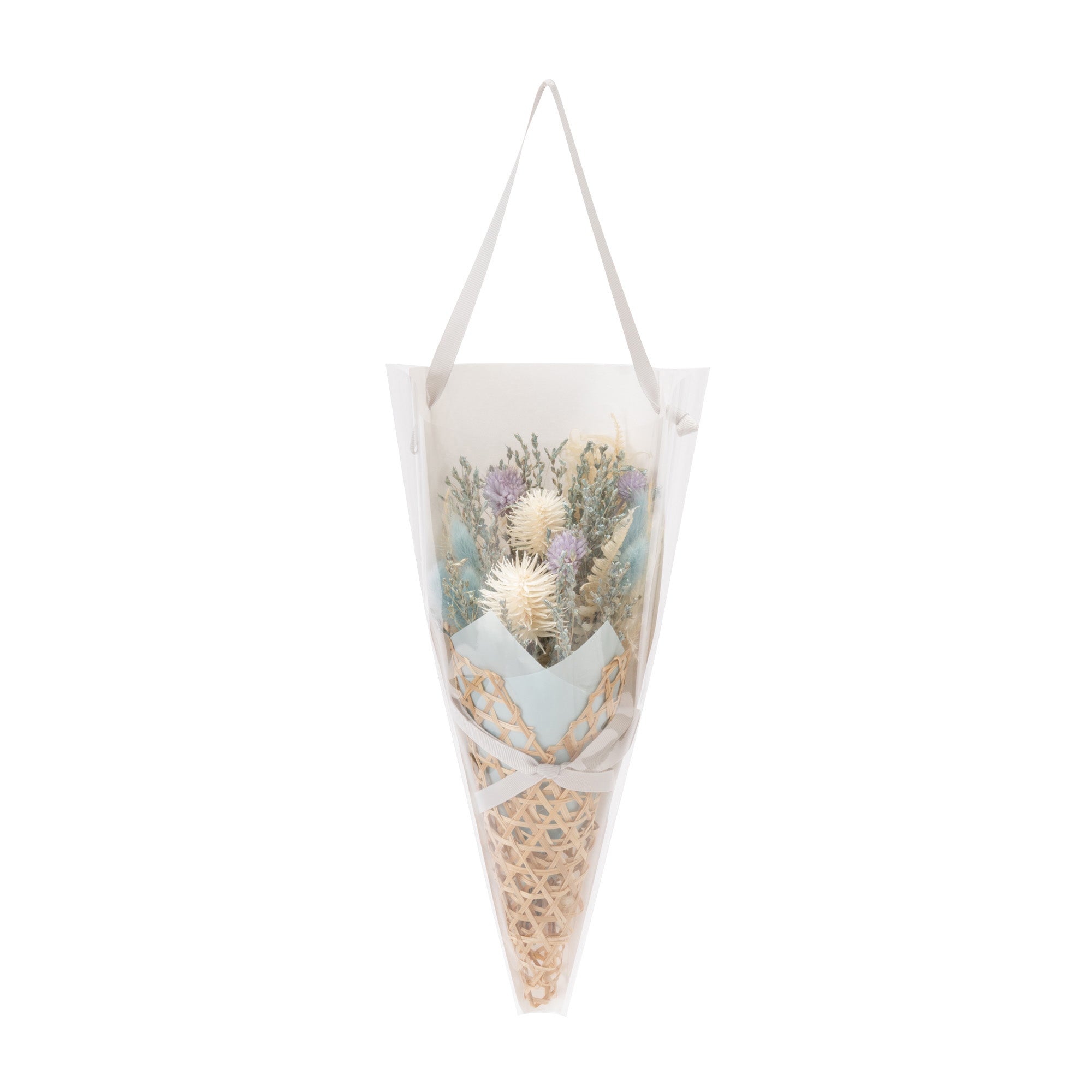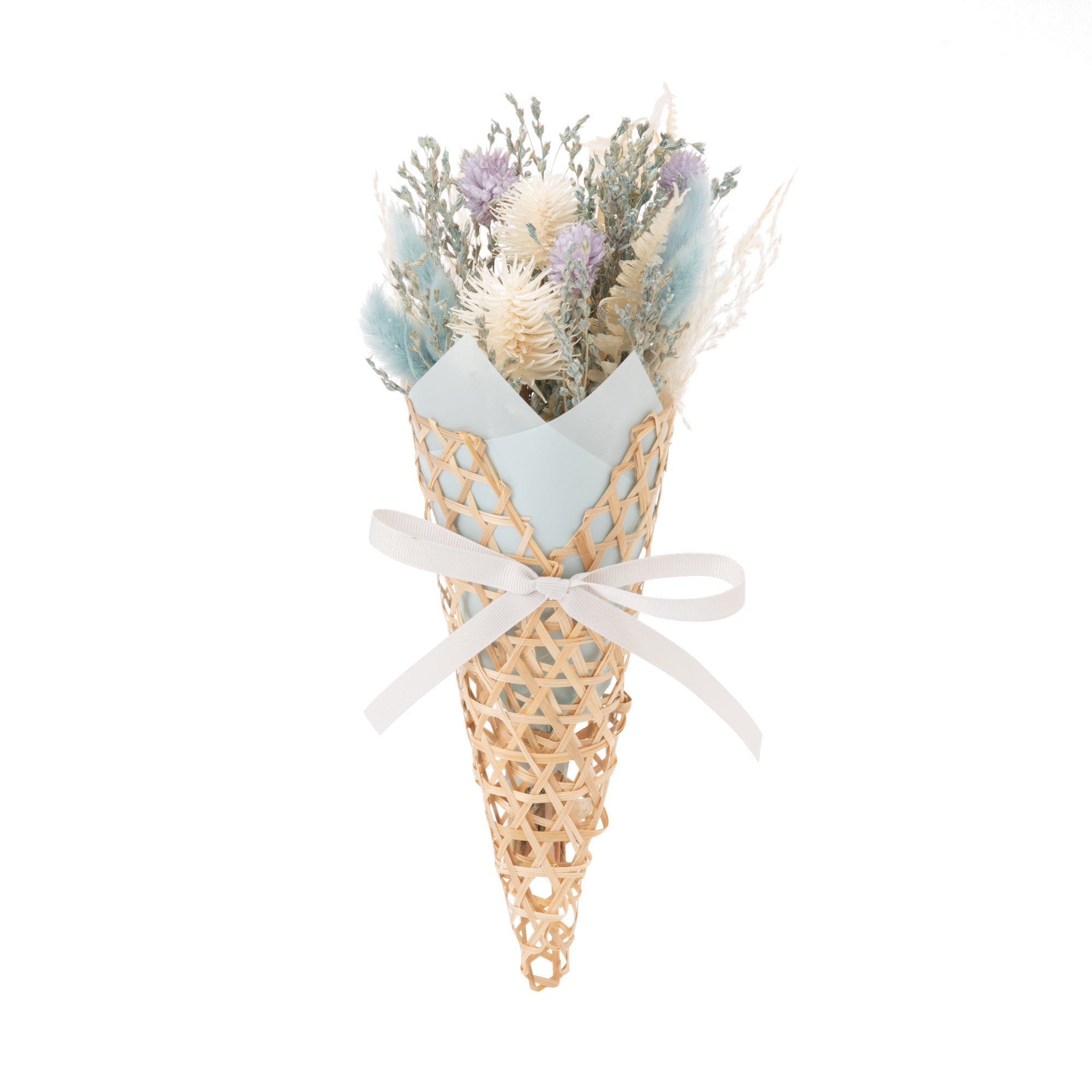 コーンに入ったタイプのドライフラワーのブーケです。フラワーベースに生けるのはもちろん、そのままちょっとしたスペースに置いたり、パッケージのまま吊るしたり、様々な飾り方を楽しめます。天然素材を使用しているので、ひとつひとつ表情が異なる世界で一つだけのアイテムです。
