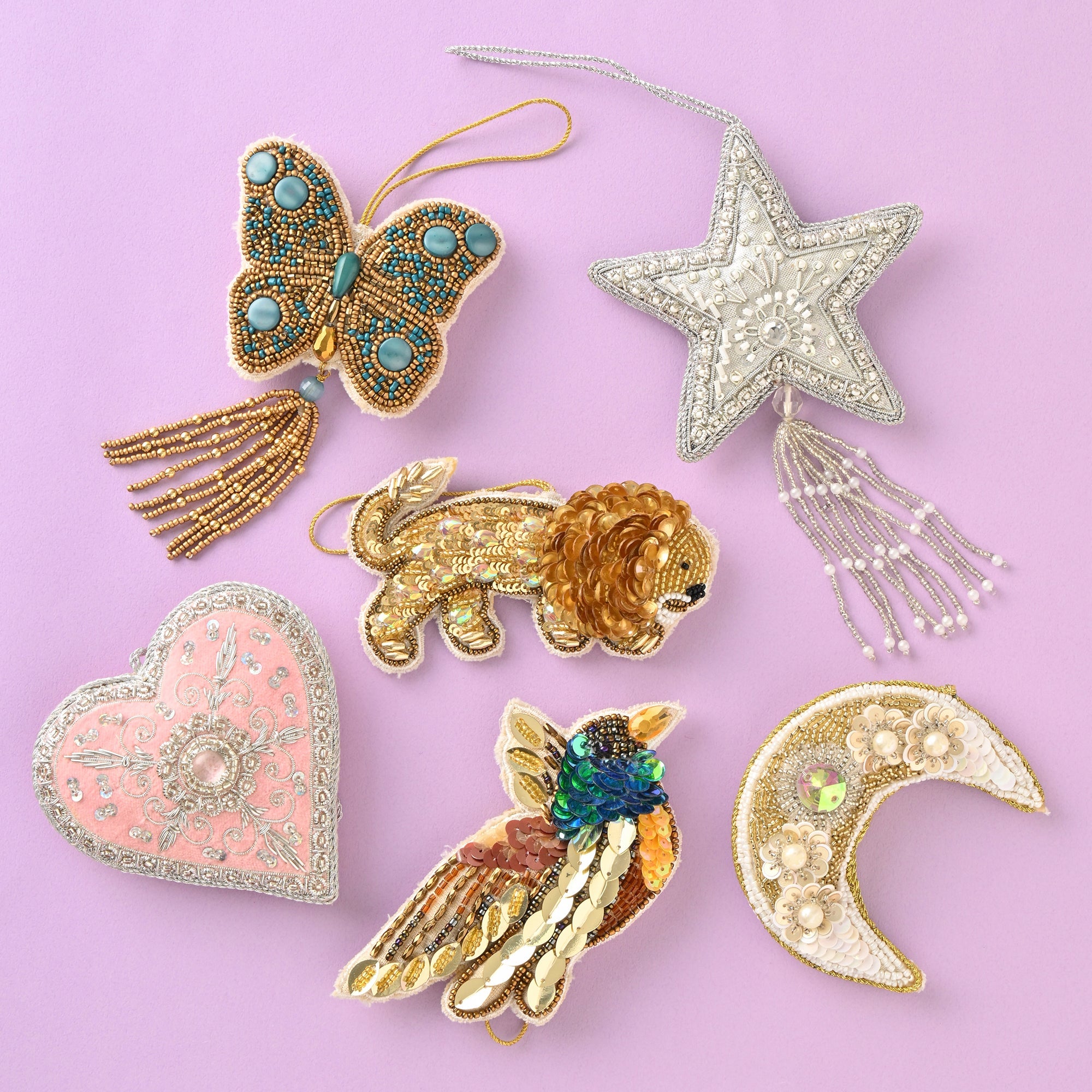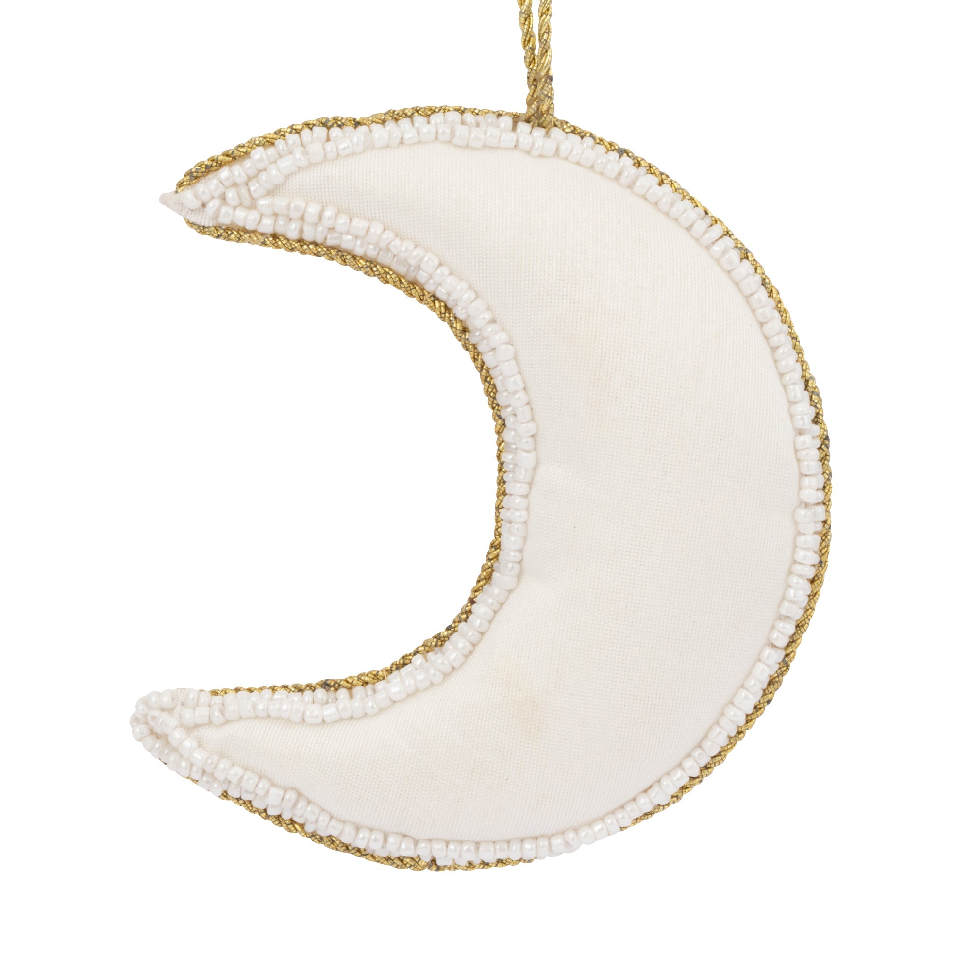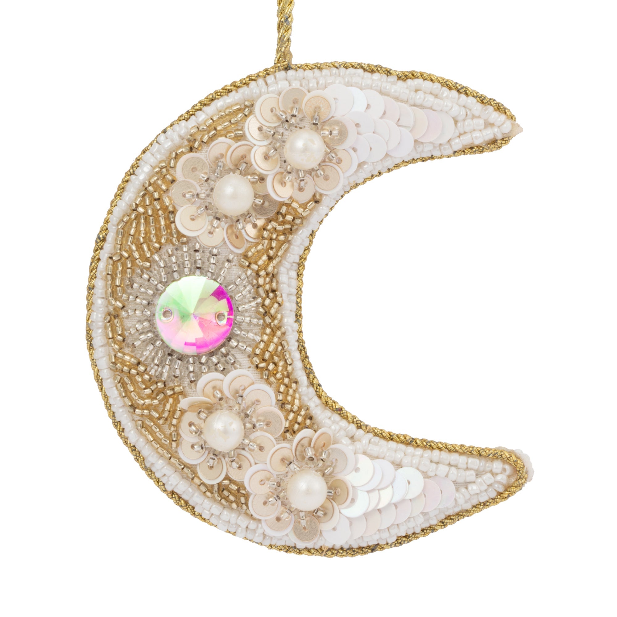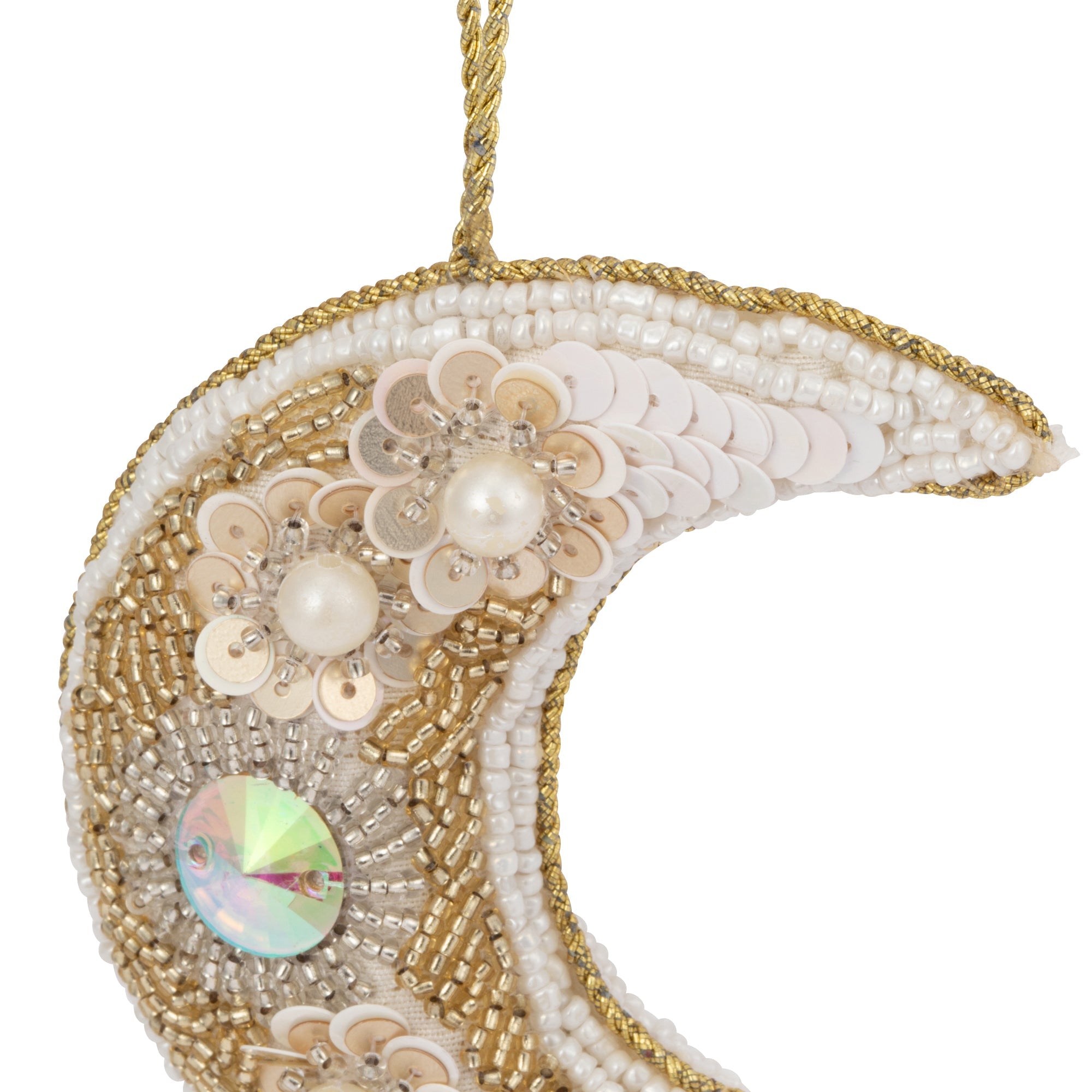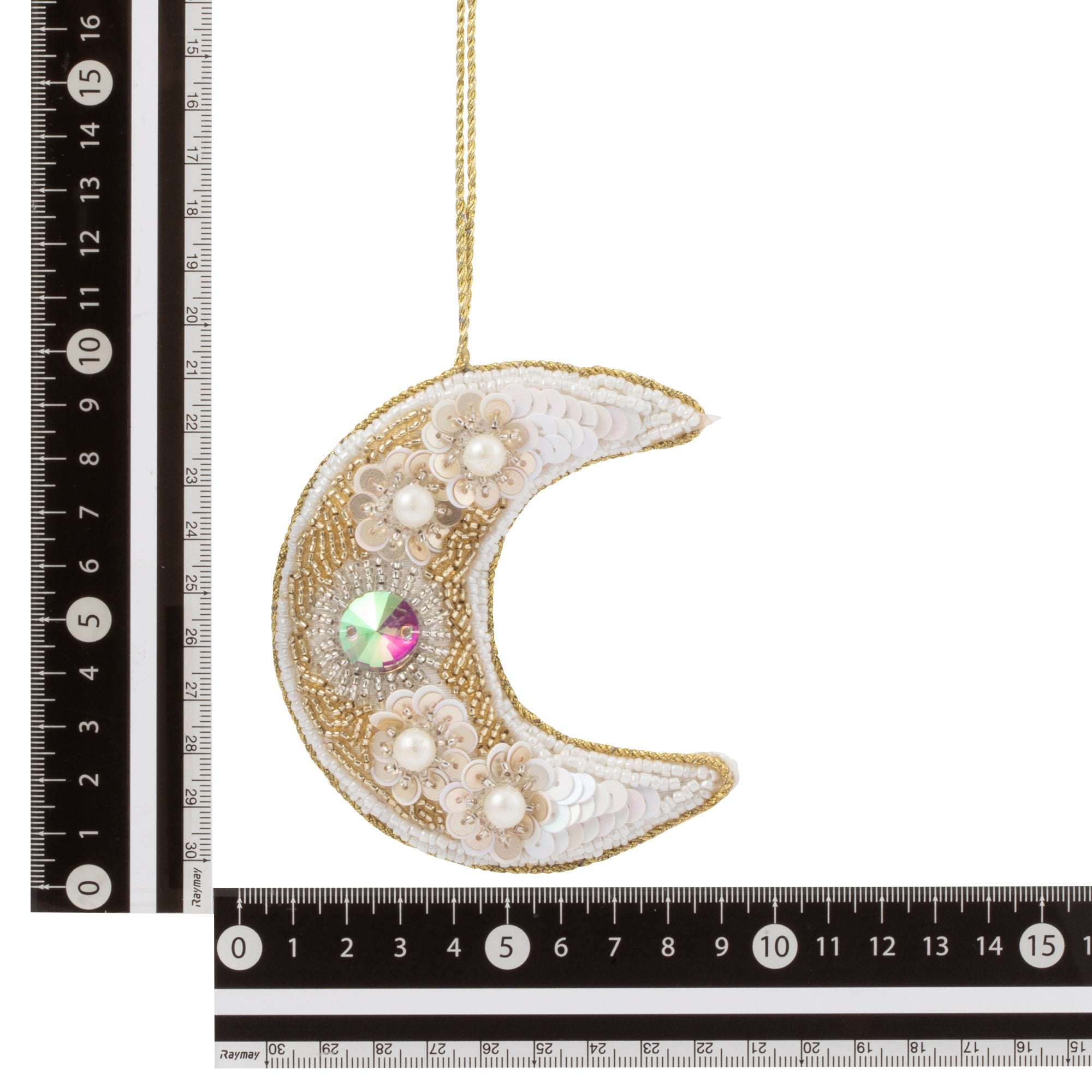 月の形をしたビーズオーナメントです。立体的にみえるようにビーズの大きさや色にこだわりました。