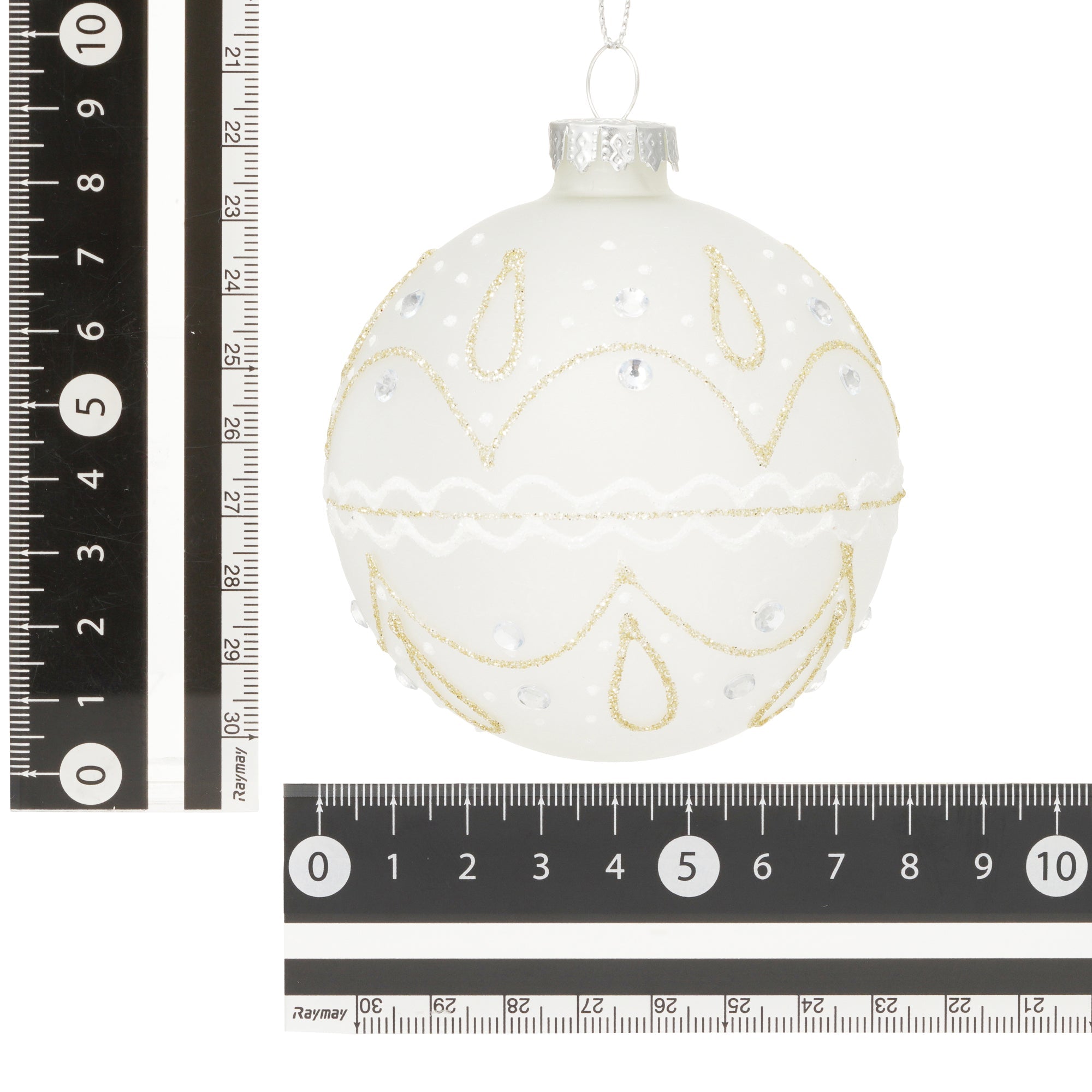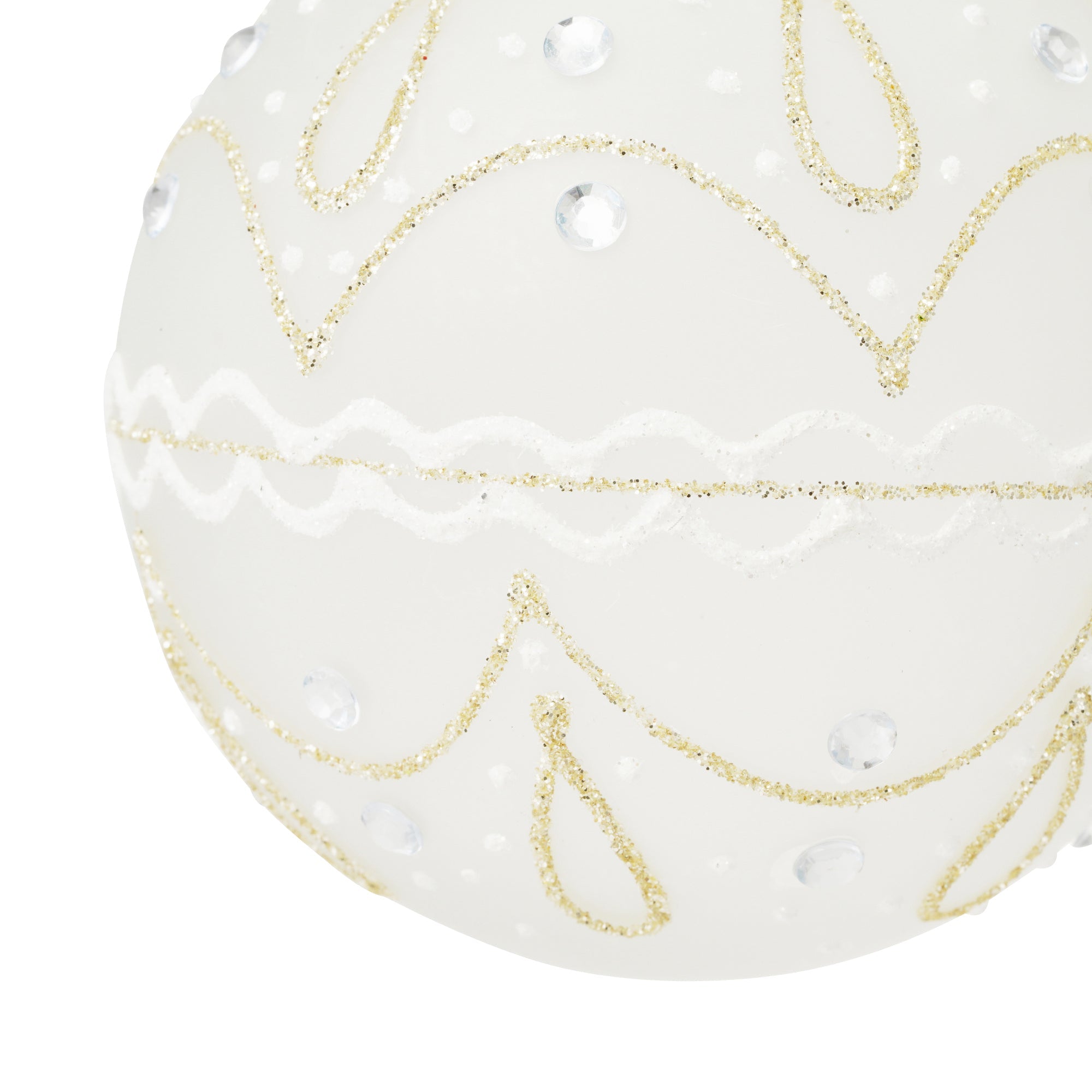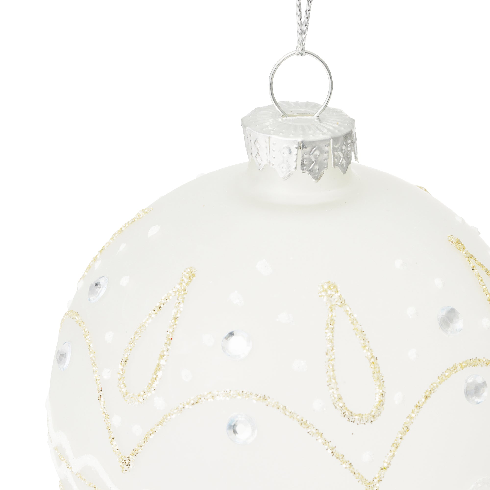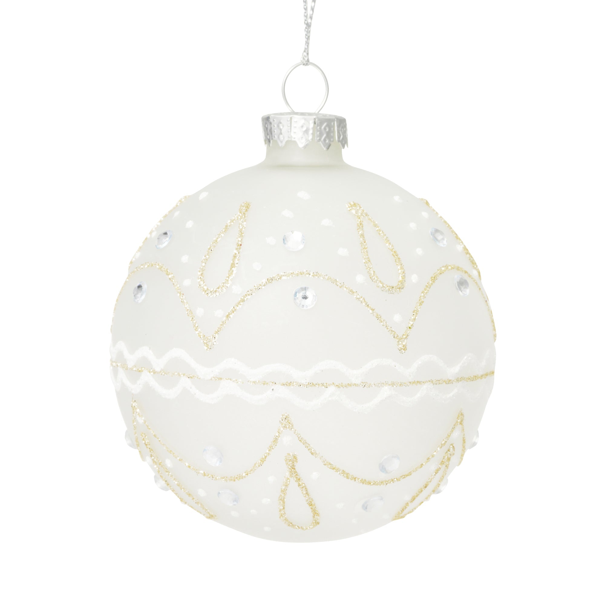 ガラスでできたキラキラと輝くオーナメントです。ホワイトベースのカラーが上品で、どんなツリーにも合わせやすいデザインです。