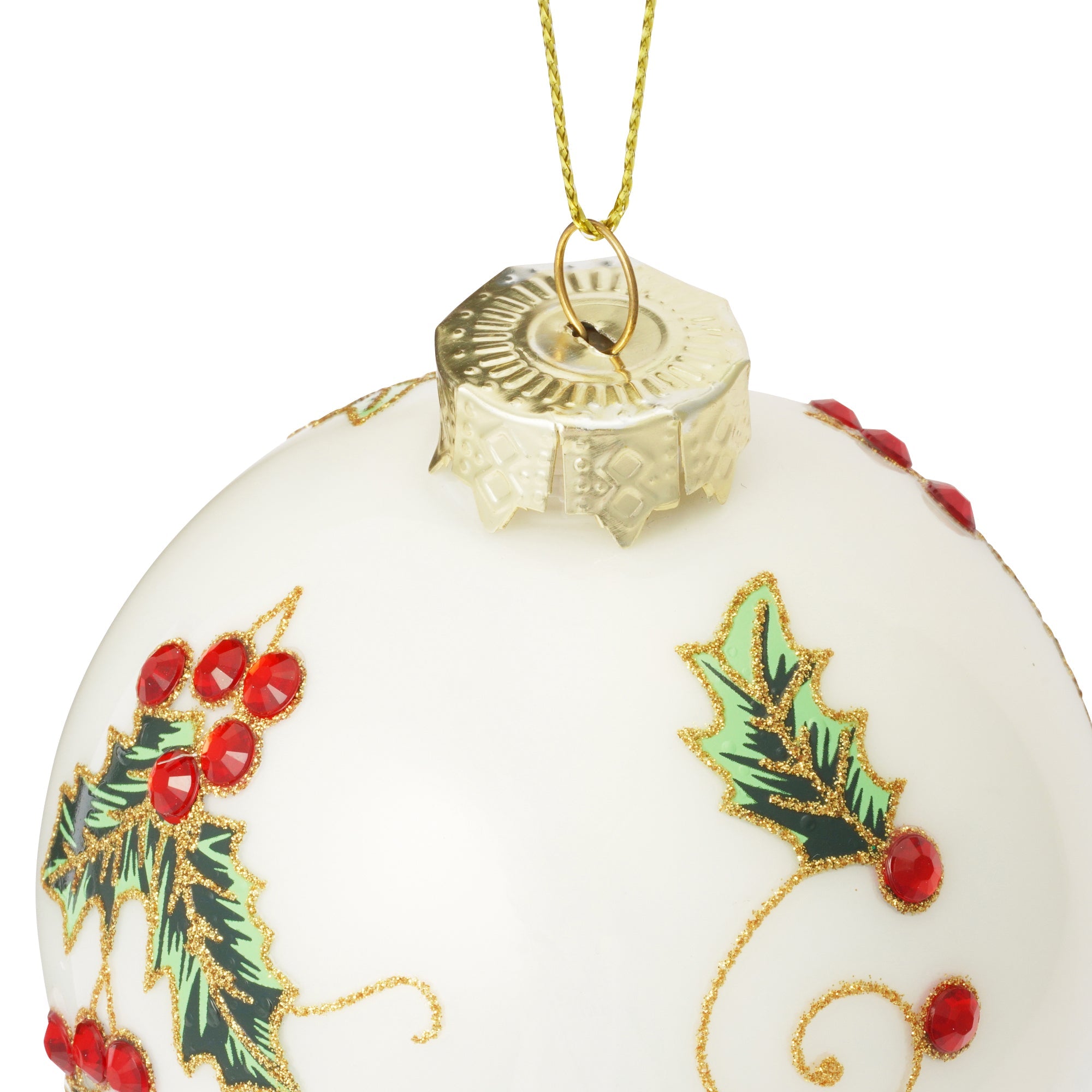 ホワイトにヒイラギのグリーンが映える大人っぽいガラスオーナメントです。