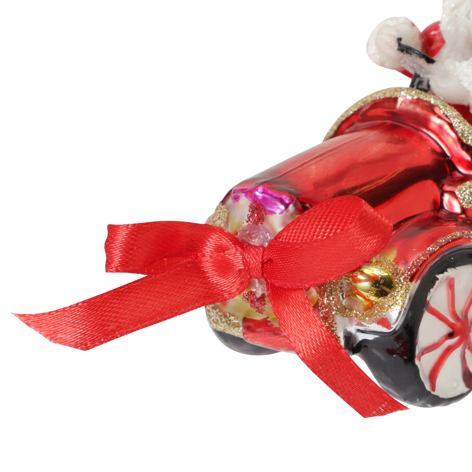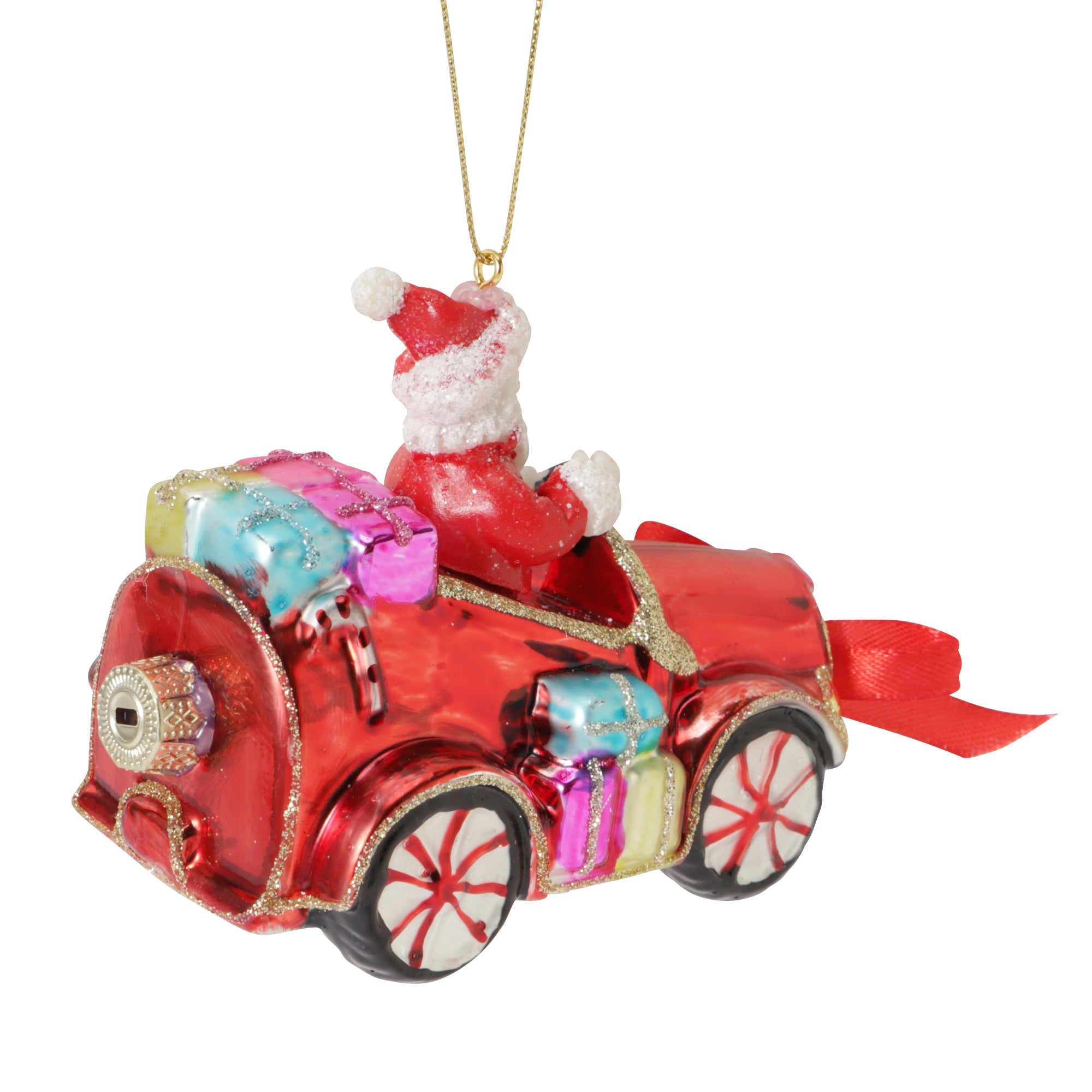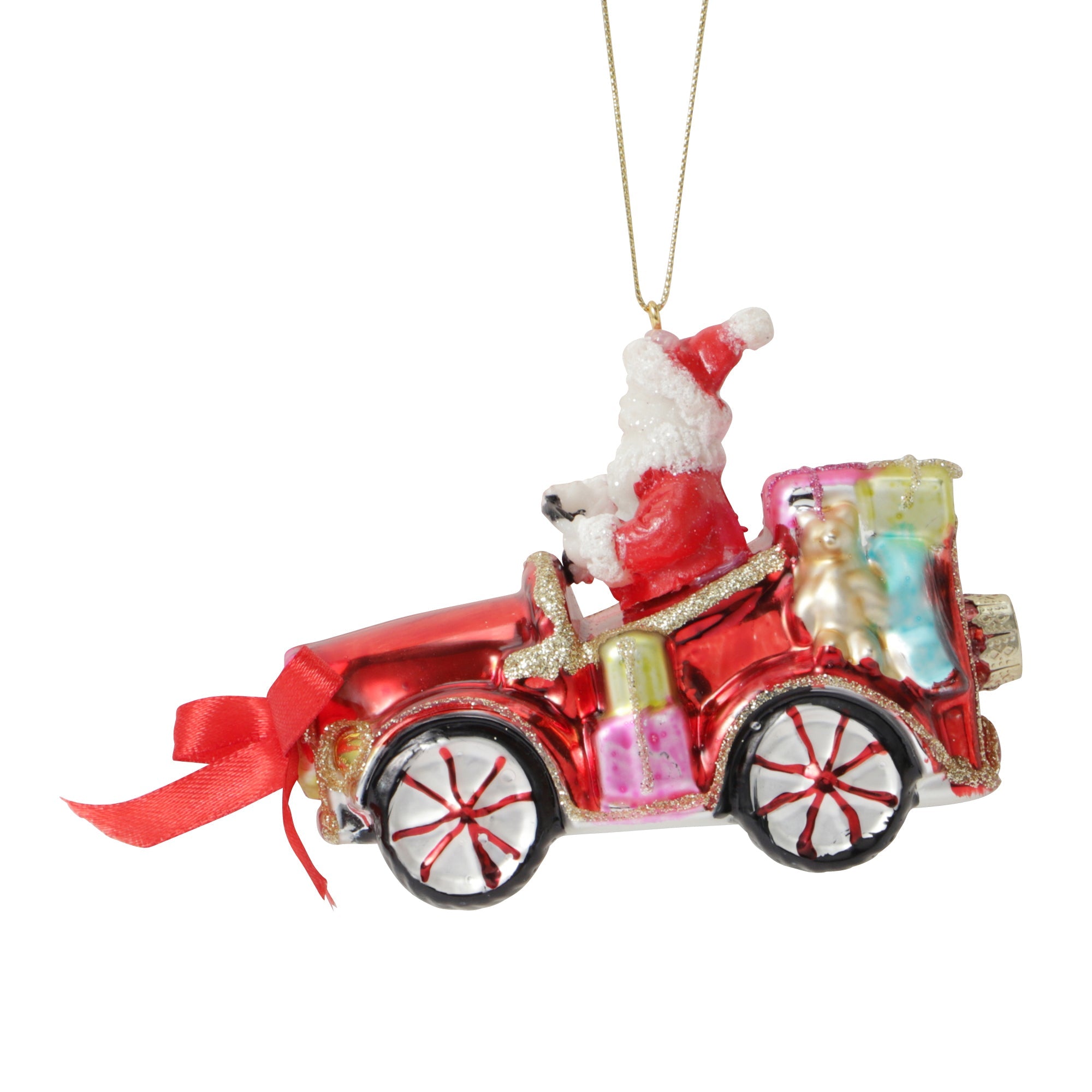 サンタがプレゼントを運んでいる可愛らしいモチーフのオーナメントです。