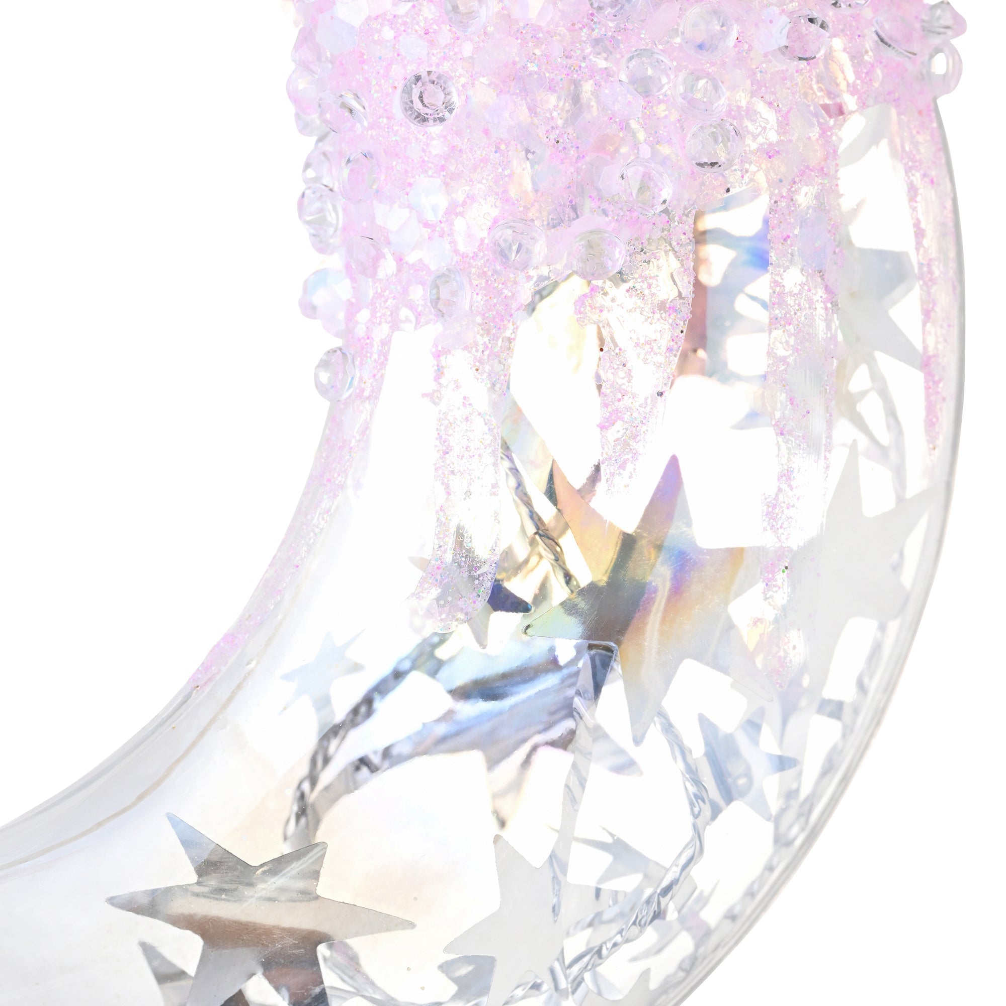 キラキラした月モチーフで、とても目をひくオーナメントです。星や月モチーフのオーナメントと組み合わせると幻想的なコーディネートに仕上がります。