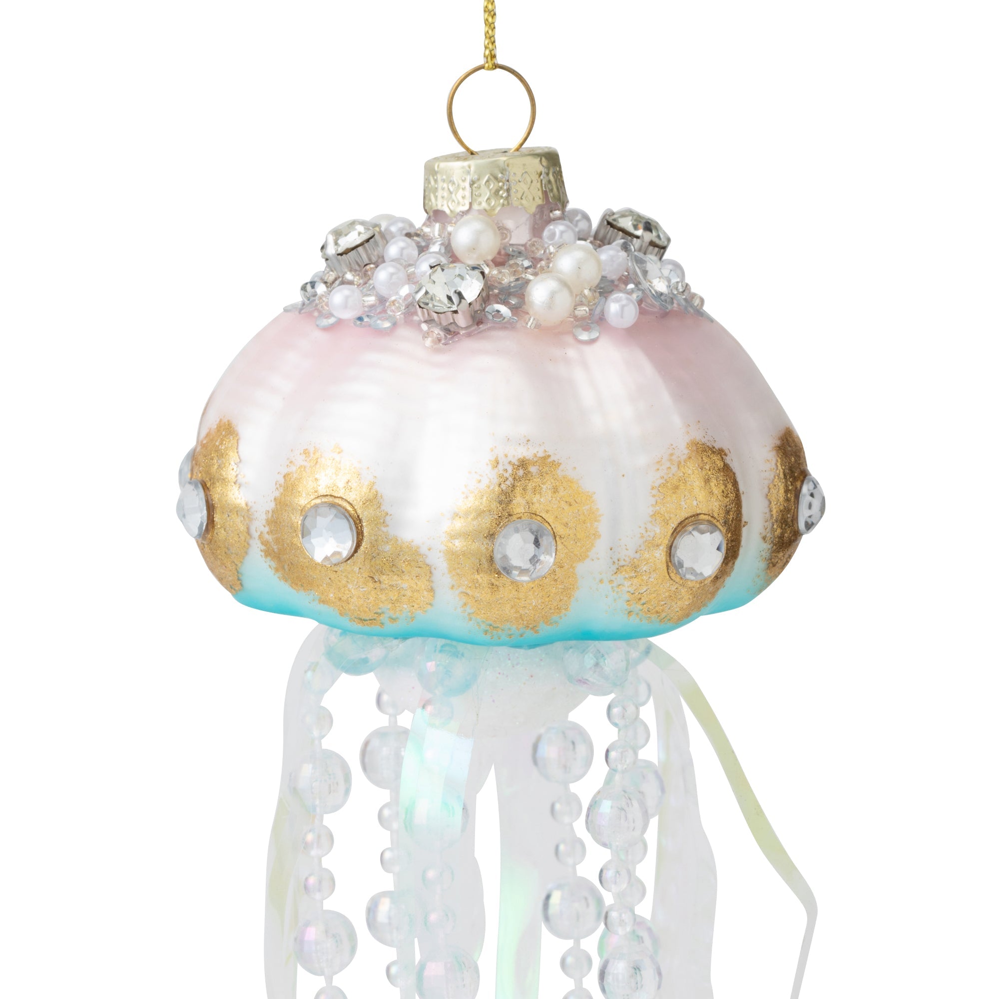 カラフルなビーズをふんだんに使用したクラゲモチーフのガラスオーナメントです。海の仲間モチーフのシリーズで組み合わせてコーディネートしても可愛いです。