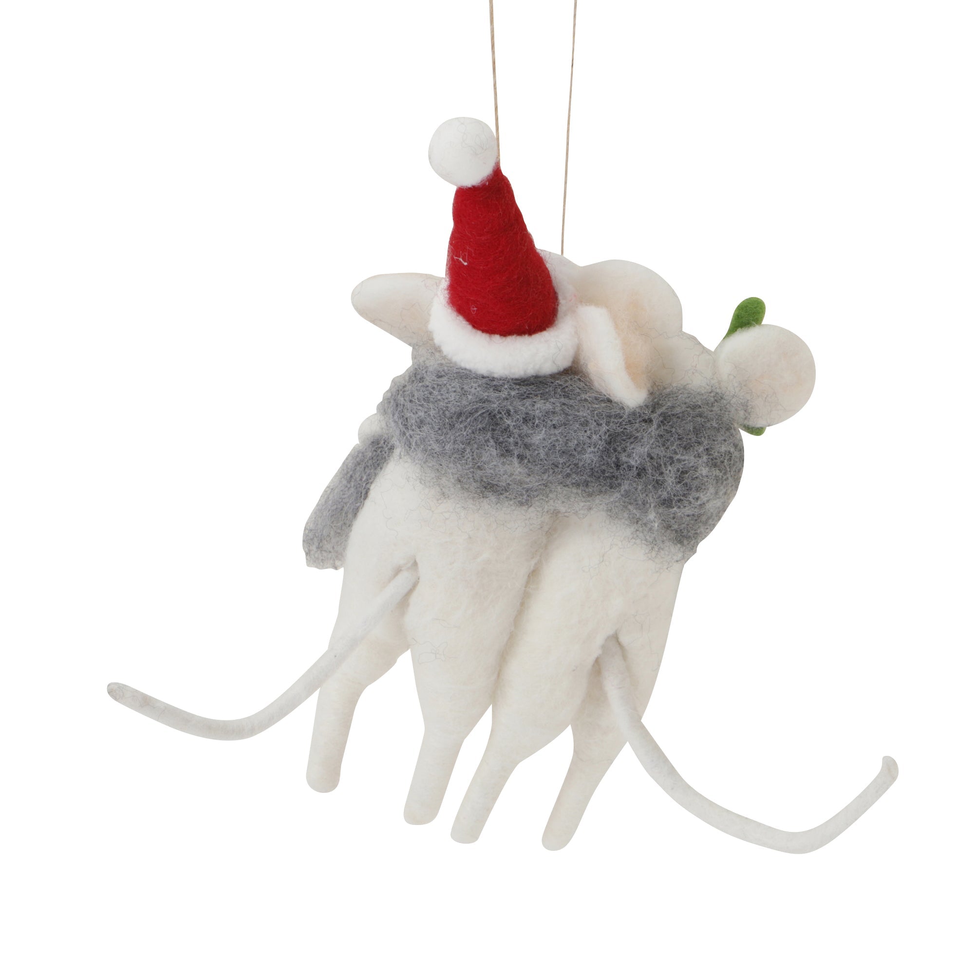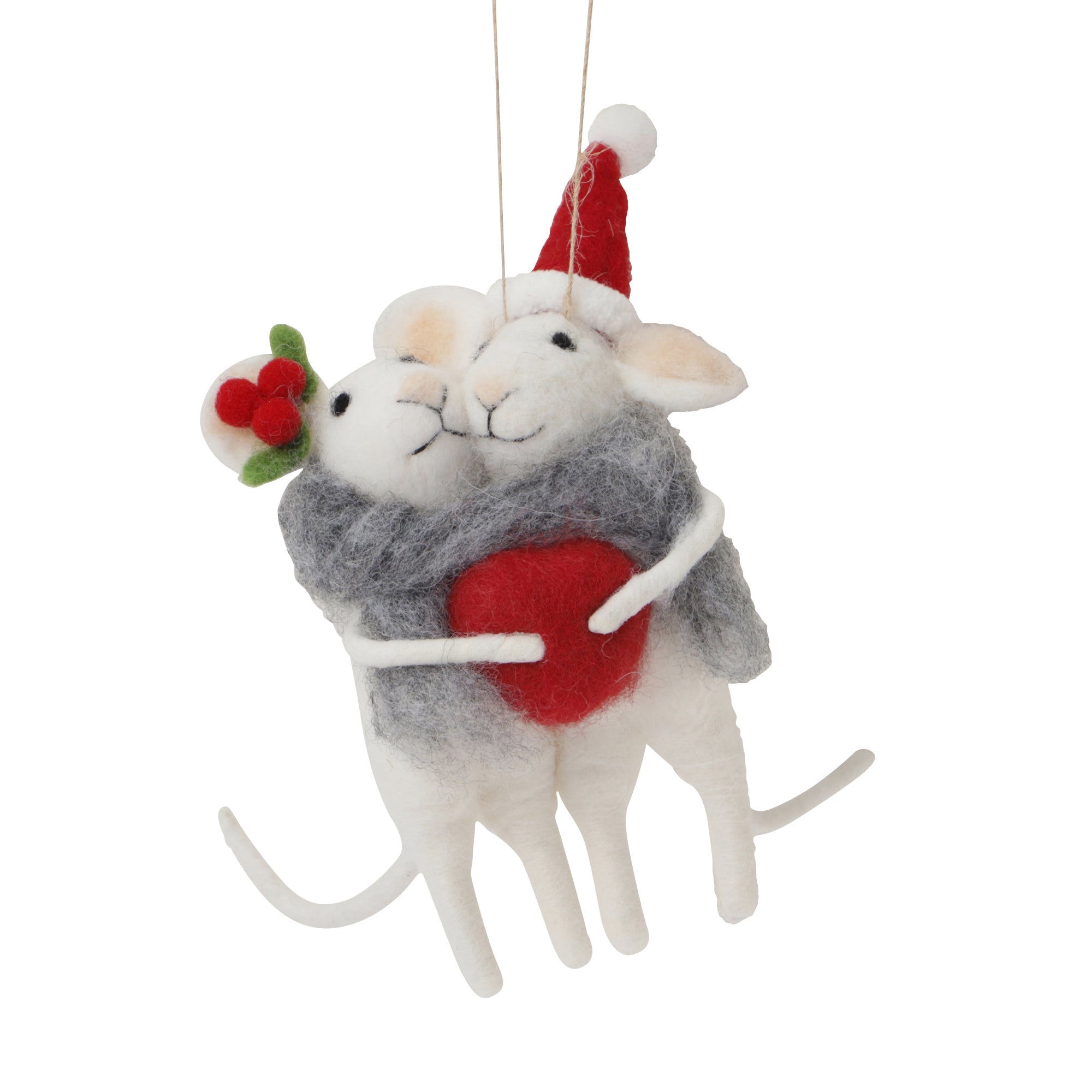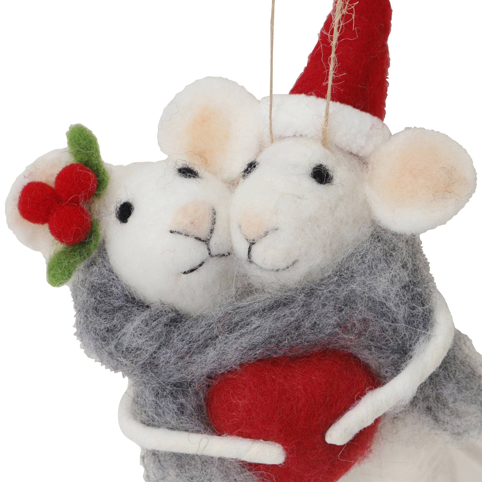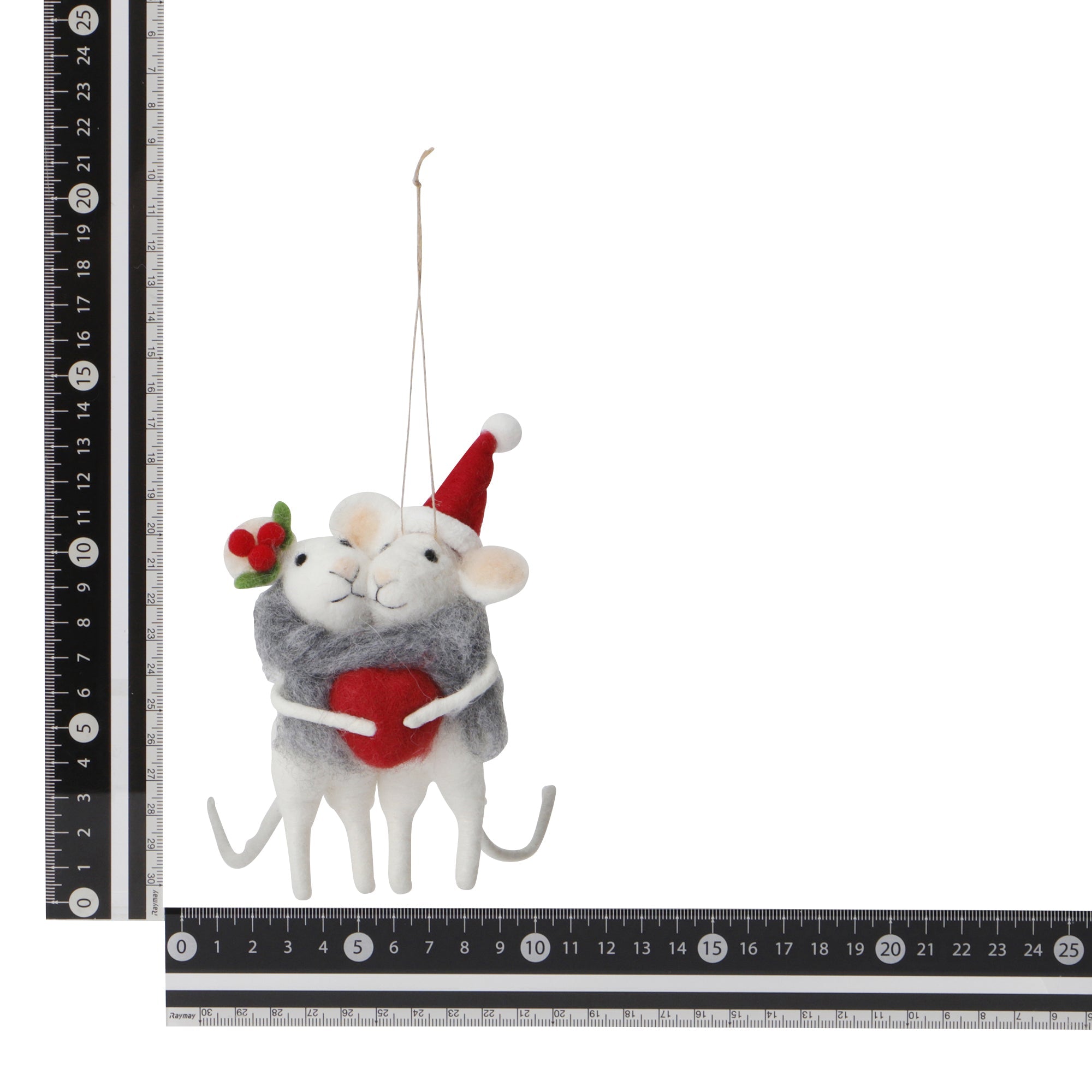 ねずみが二匹でマフラーを巻いている様子がかわいらしく表現されたオーナメントです。