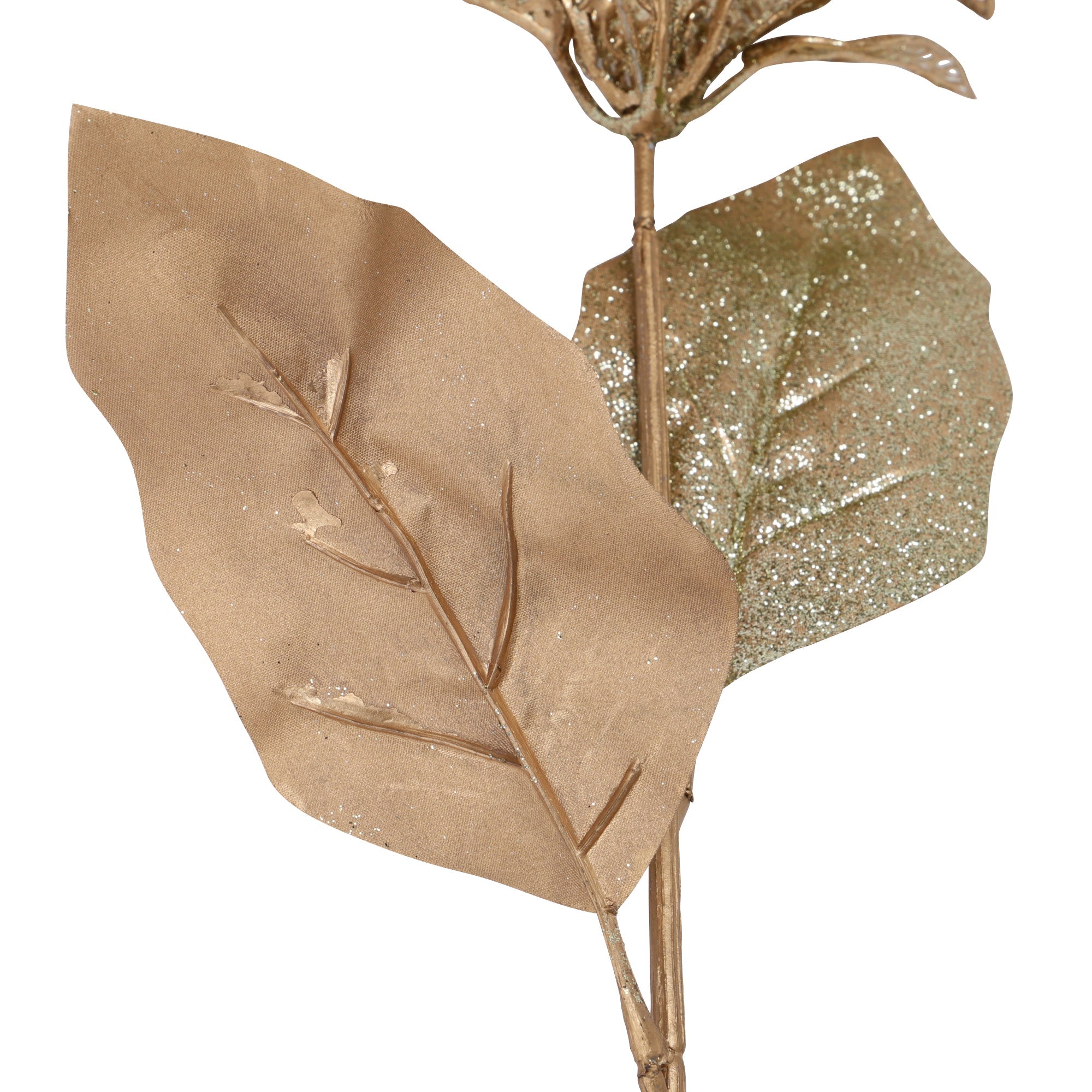 ゴールドにコーティングされたゴージャスなポインセチアのアートプランツです。お手持ちのお花とコーディネートするだけで一気にホリデームードを演出できます。一輪でも十分な存在感のあるアイテムです。