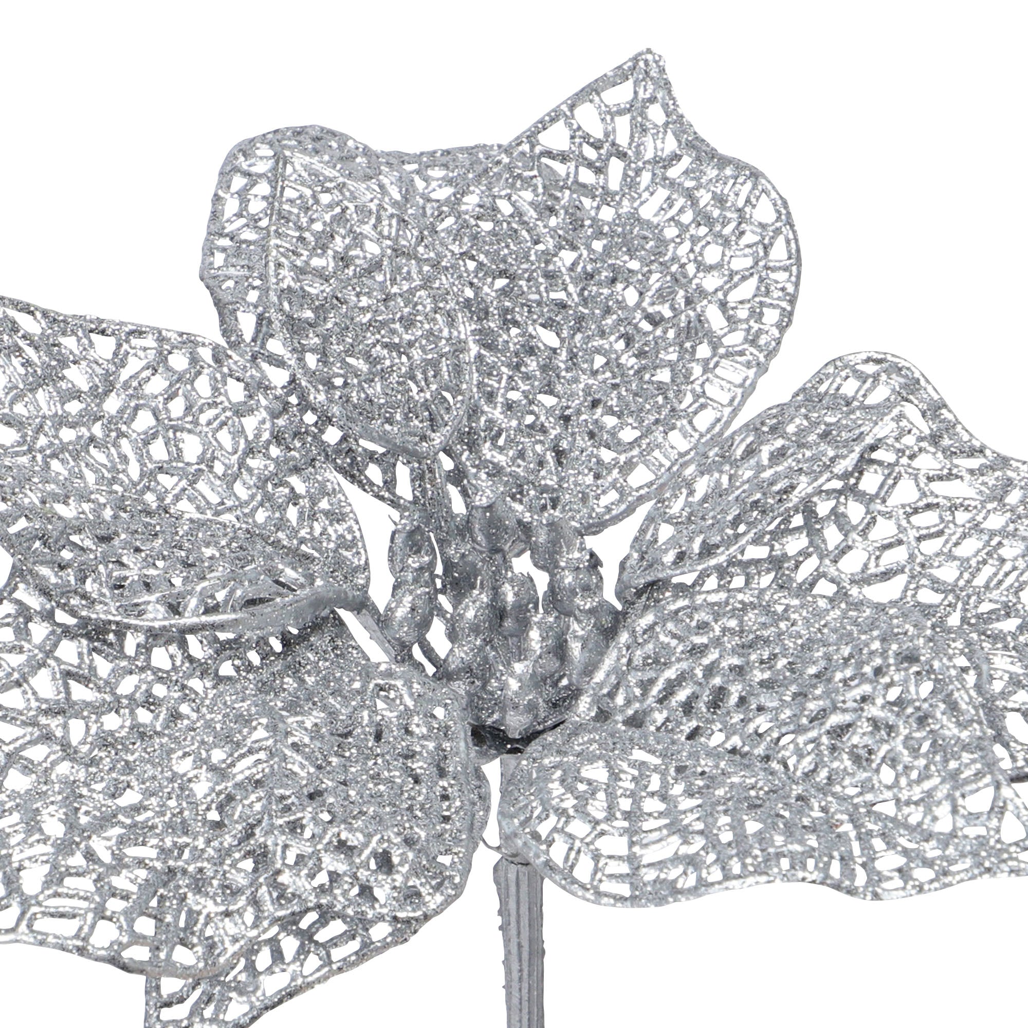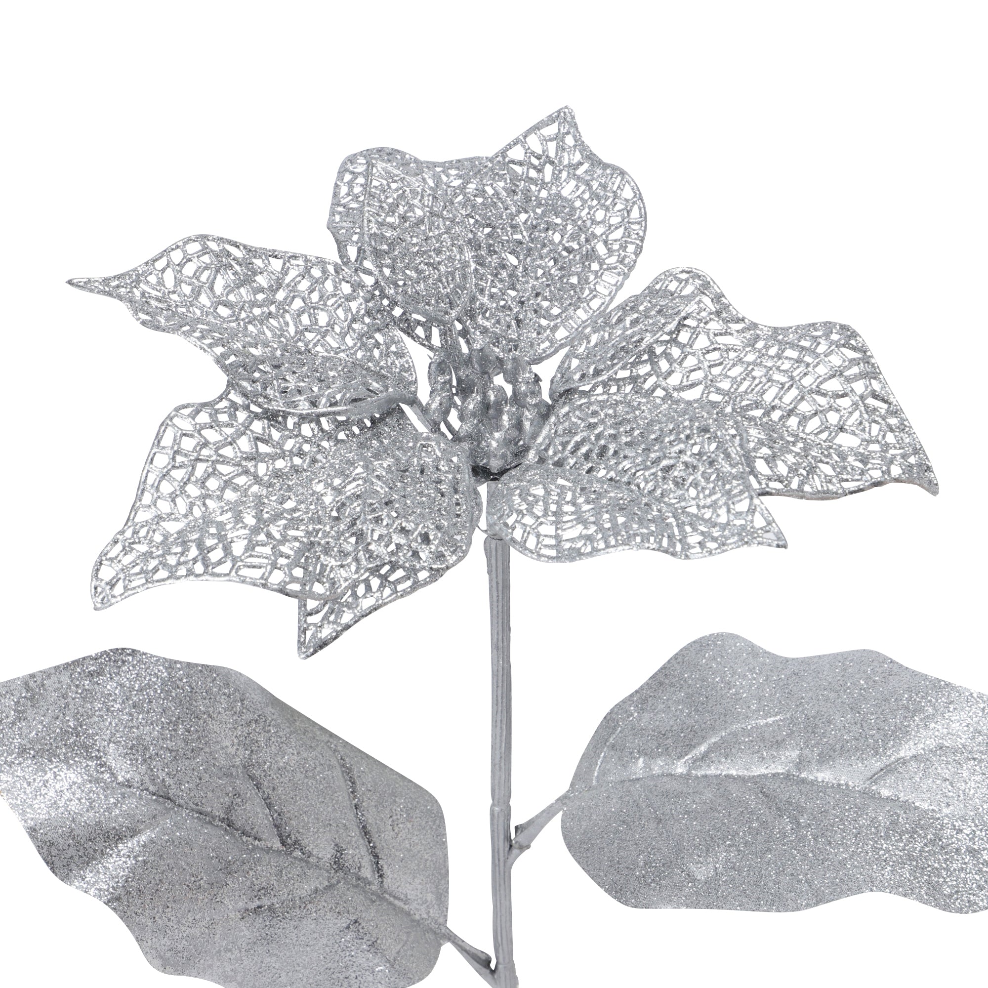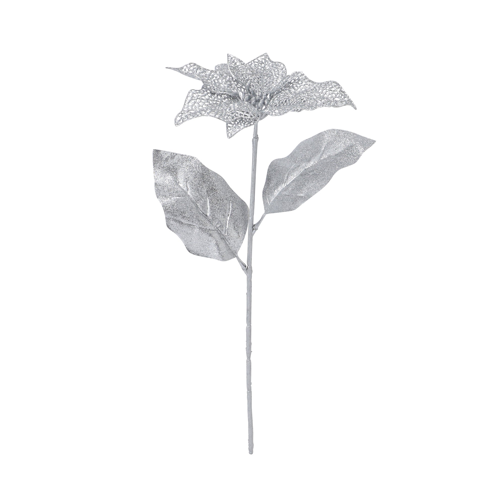 シルバーにコーティングされたゴージャスなポインセチアのアートプランツです。お手持ちのお花とコーディネートするだけで一気にホリデームードを演出できます。一輪でも十分な存在感のあるアイテムです。