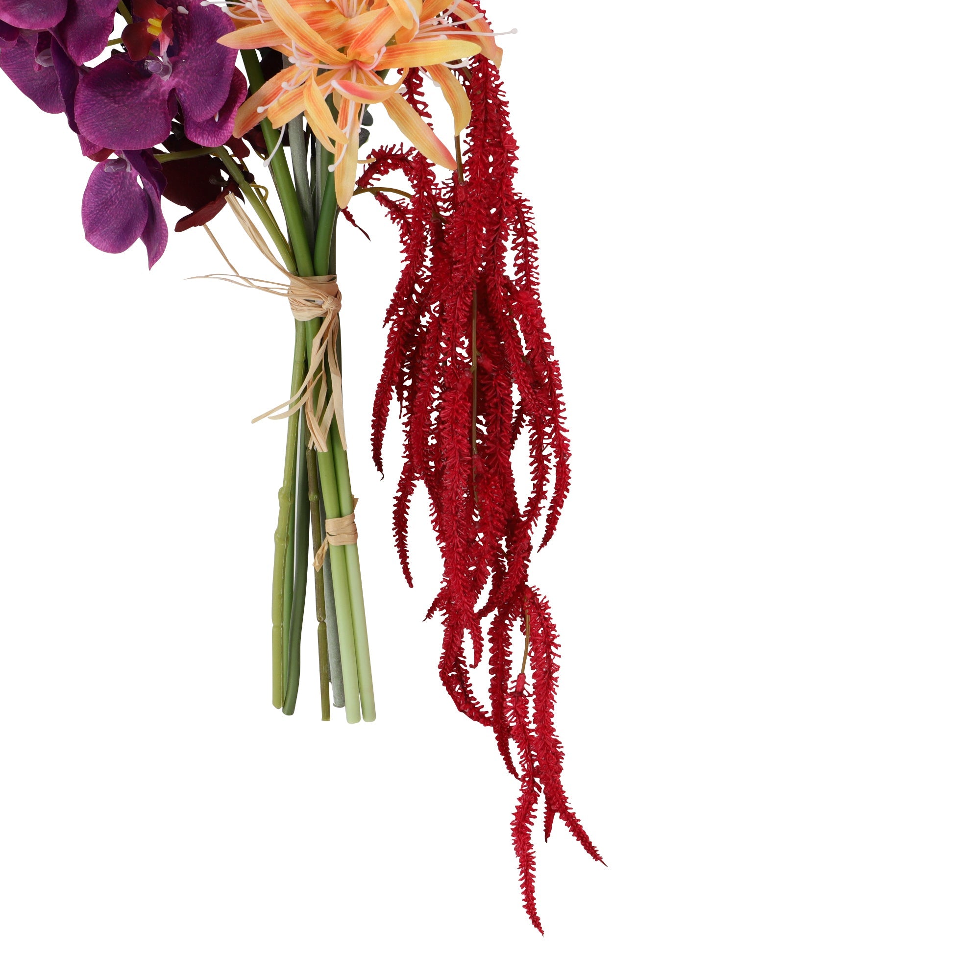 ガーベラとと垂れ下がったアマランサスが印象的なアートフラワーのブーケです。そのまま飾れて綺麗なお花をお手入れいらずでずっと楽しむことができます。トレンド感がある動きのあるブーケで、アートのように楽しんでいただけます。