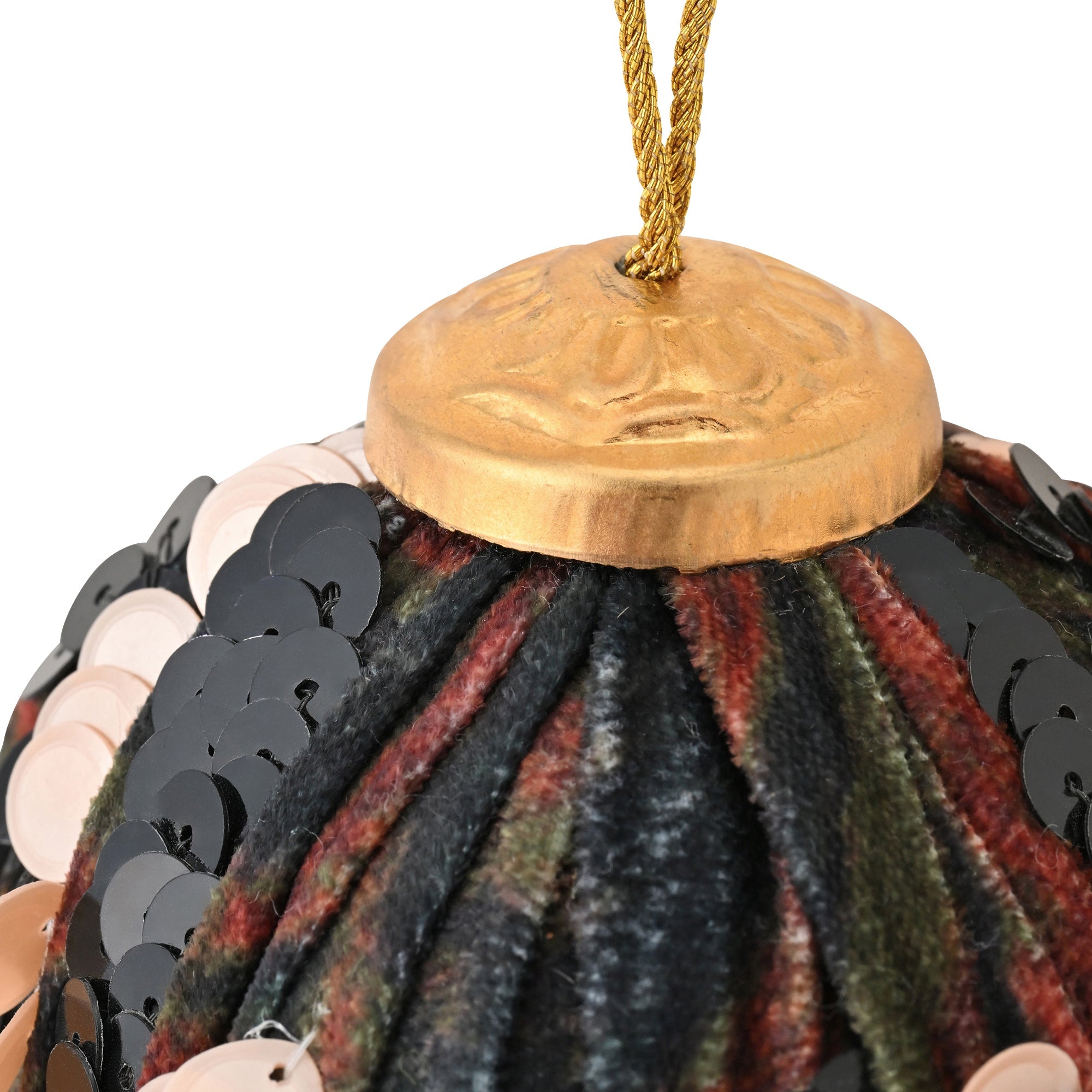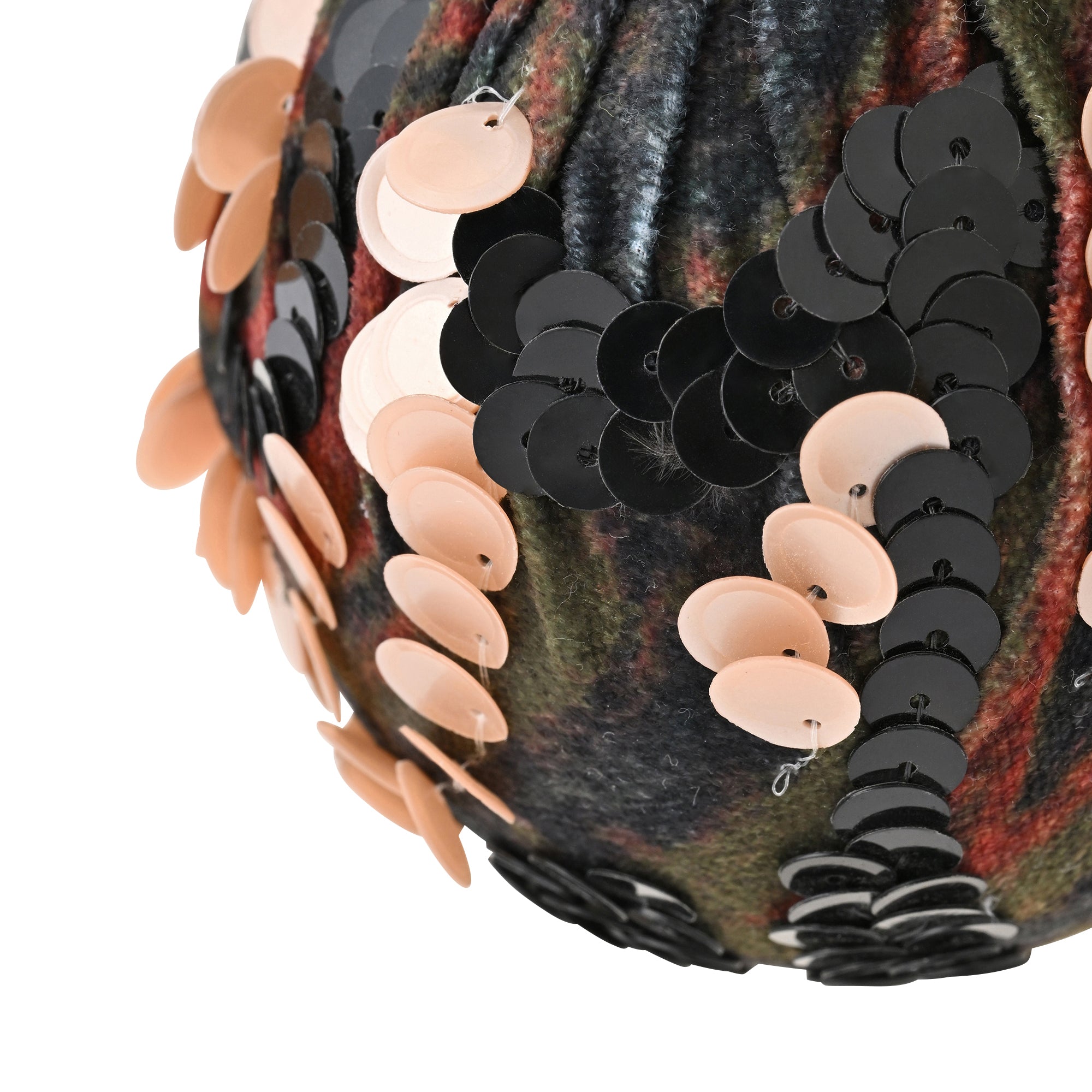 スパンコールが印象的な他にはないファブリックオーナメントです。