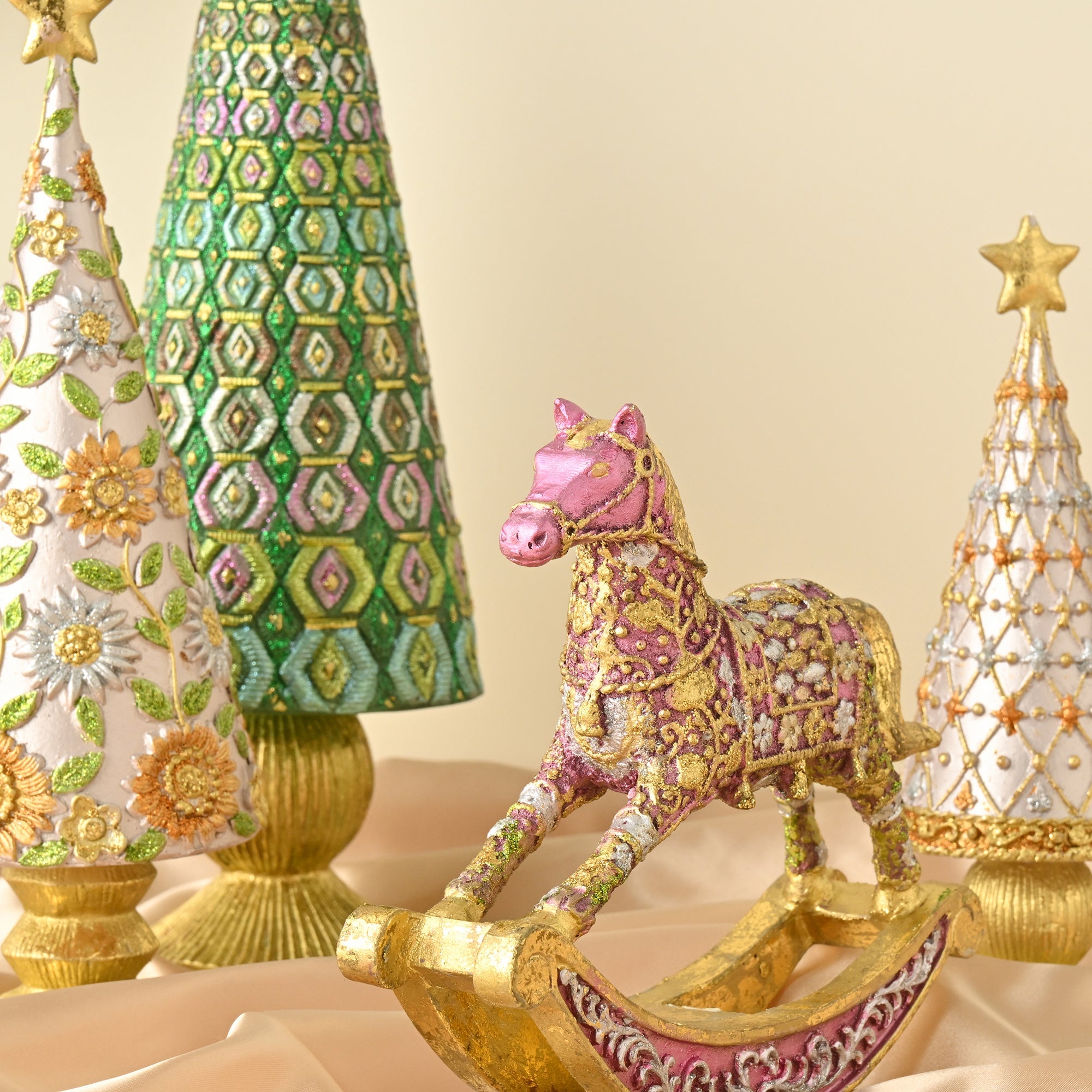 優しい色味と丁寧なペイントが可愛いレジン製のオブジェです。ゆらゆら揺れるロッキングホースに、繊細なペイントで彩りを加えました。