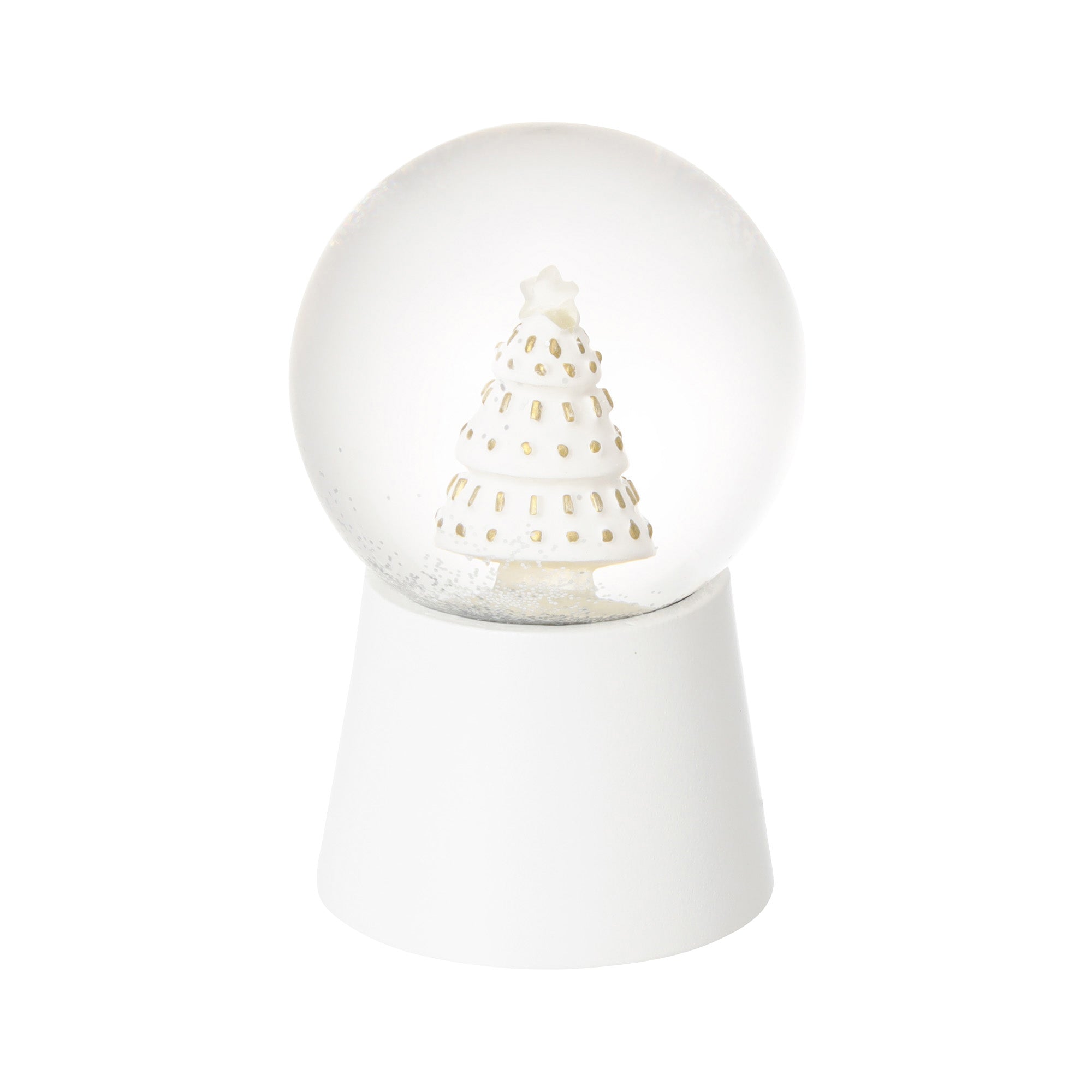 クリスマスらしいオブジェが入った光るスノードームです。底のスイッチをONにすると光ります。