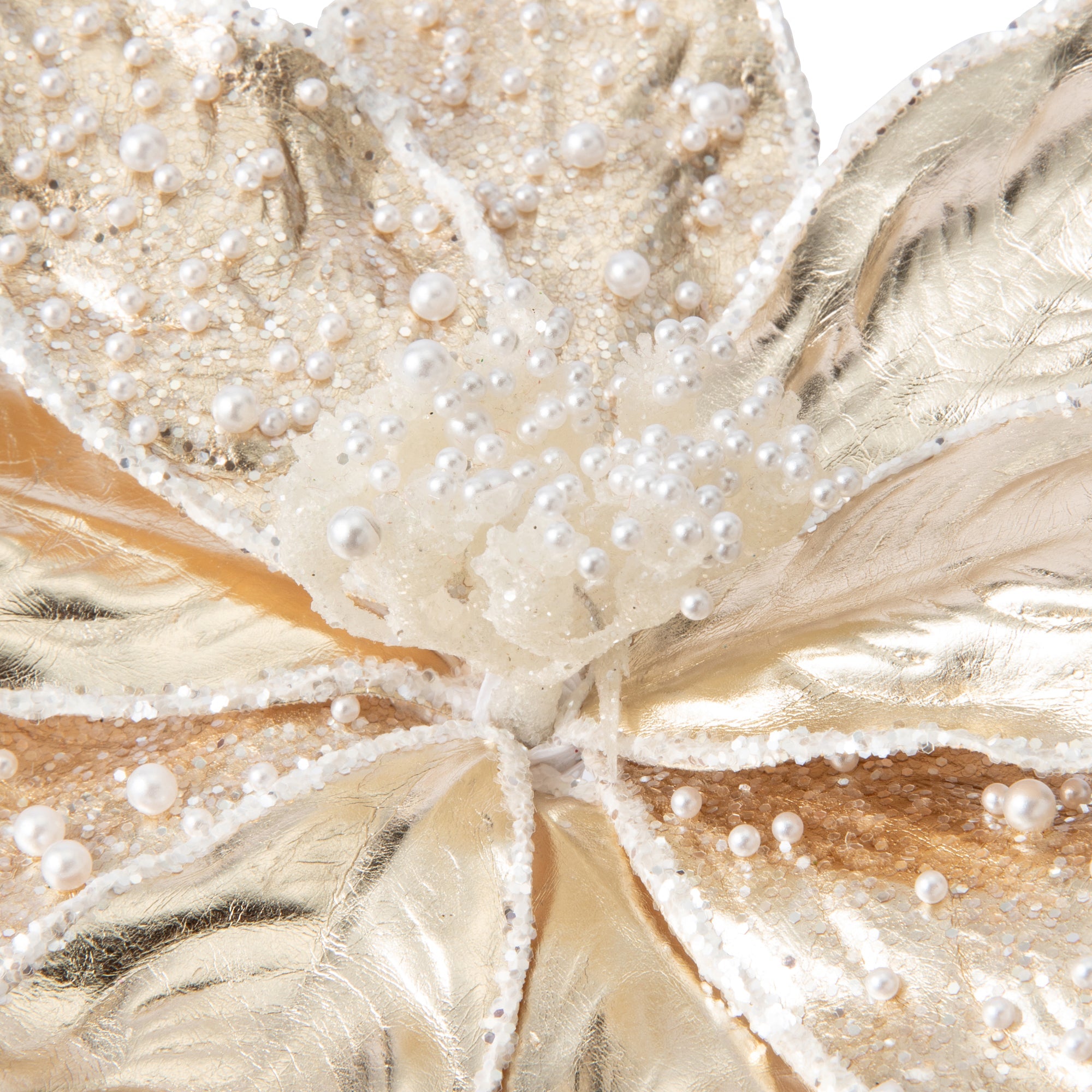 パールがついた華やかなポインセチアのアートプランツです。シリーズで組み合わせていただくと一気にホリデームードを演出できます。ツリーに飾っていただくのもオススメです。