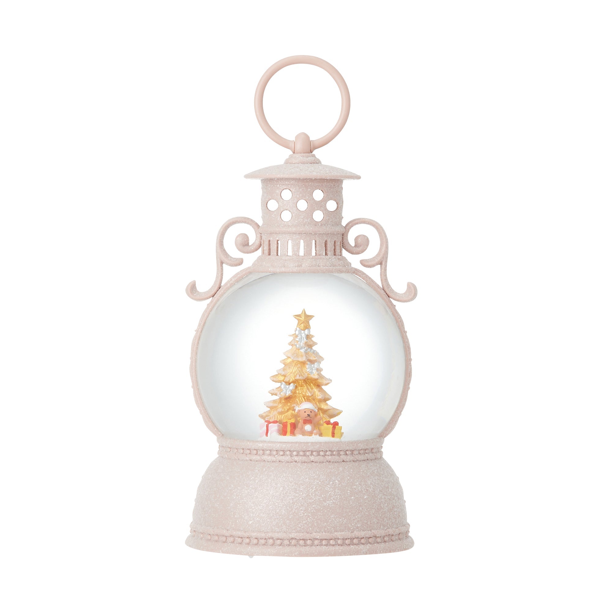 自動回転式のラウンドランタン型スノードームです。ゴールドの輝くリボンツリーとベアーが入ったオリジナルの可愛らしいデザインです。スイッチを入れるとライトが点いて、自動的にラメが舞い上がります。ラメがライトに照らされキラキラ輝く光景はクリスマスシーズンにぴったり。スノードームを置いた場所にも光が映って幻想的な雰囲気をお楽しみいただけます。