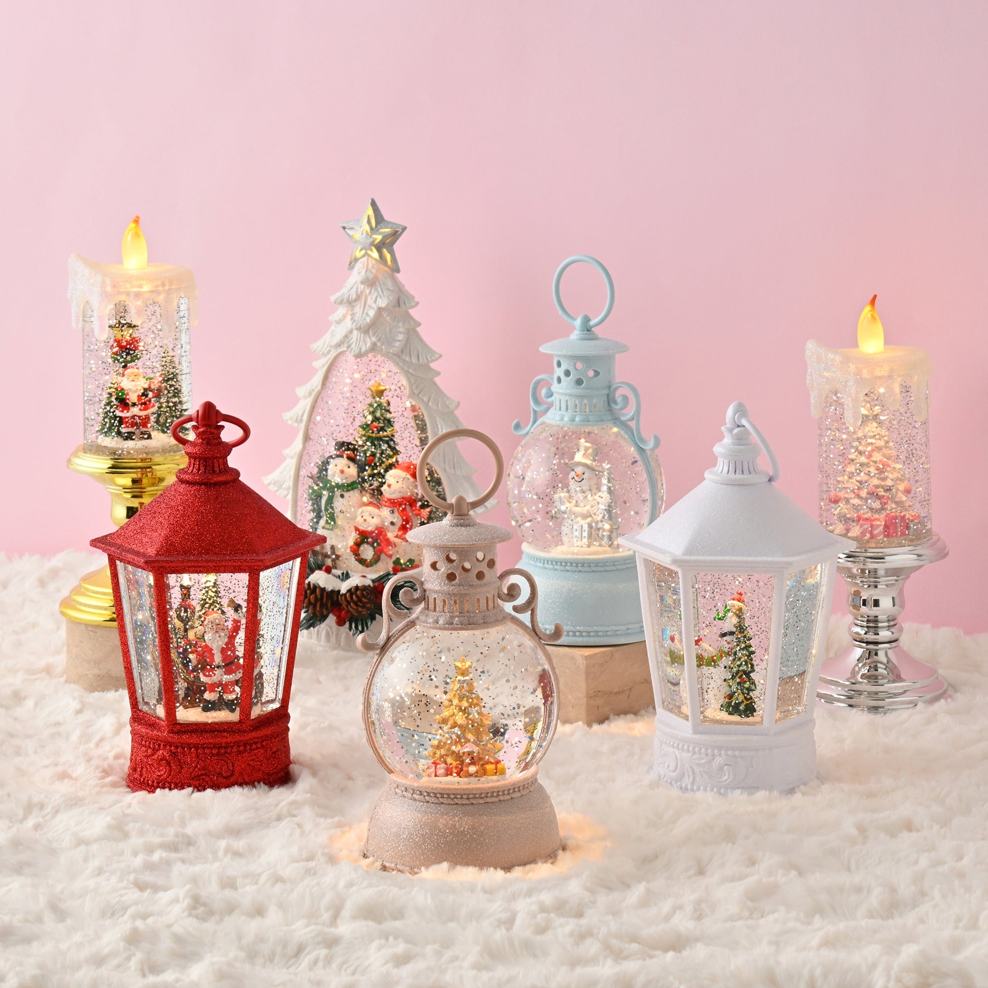 自動回転式のツリー型スノードームです。ラメがライトに照らされキラキラ輝く光景はクリスマスシーズンにぴったりです。存在感があるので、ひとつ飾るだけでクリスマスらしさを楽しめます。