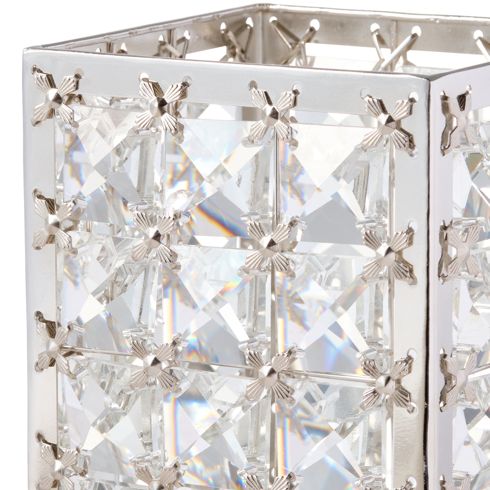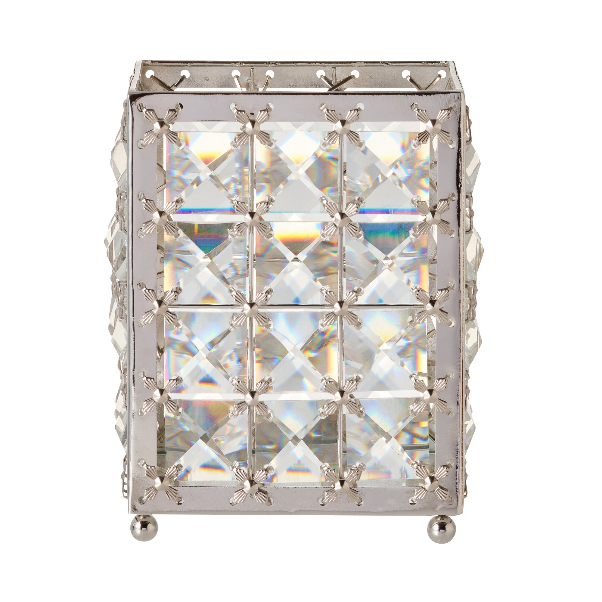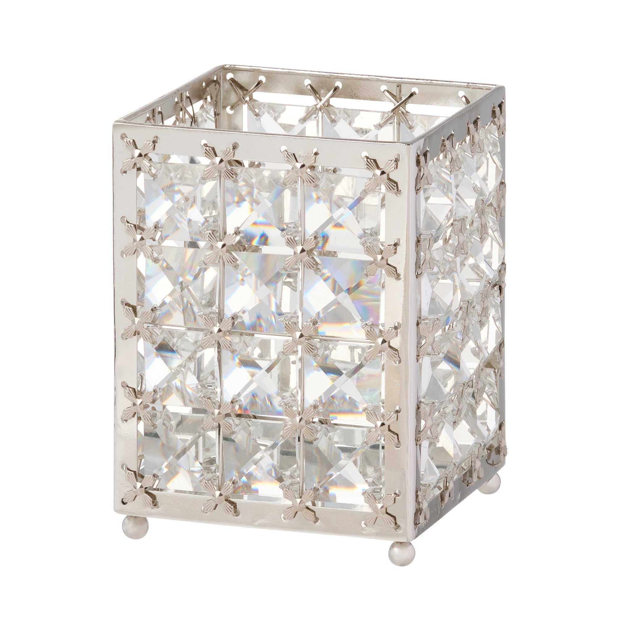 透明なガラスのパーツが華やかなマルチスタンドです。メイクブラシを入れたり、リモコンなどを収納するのもおすすめです。華やかなデザインがインテリアのアクセントになります。