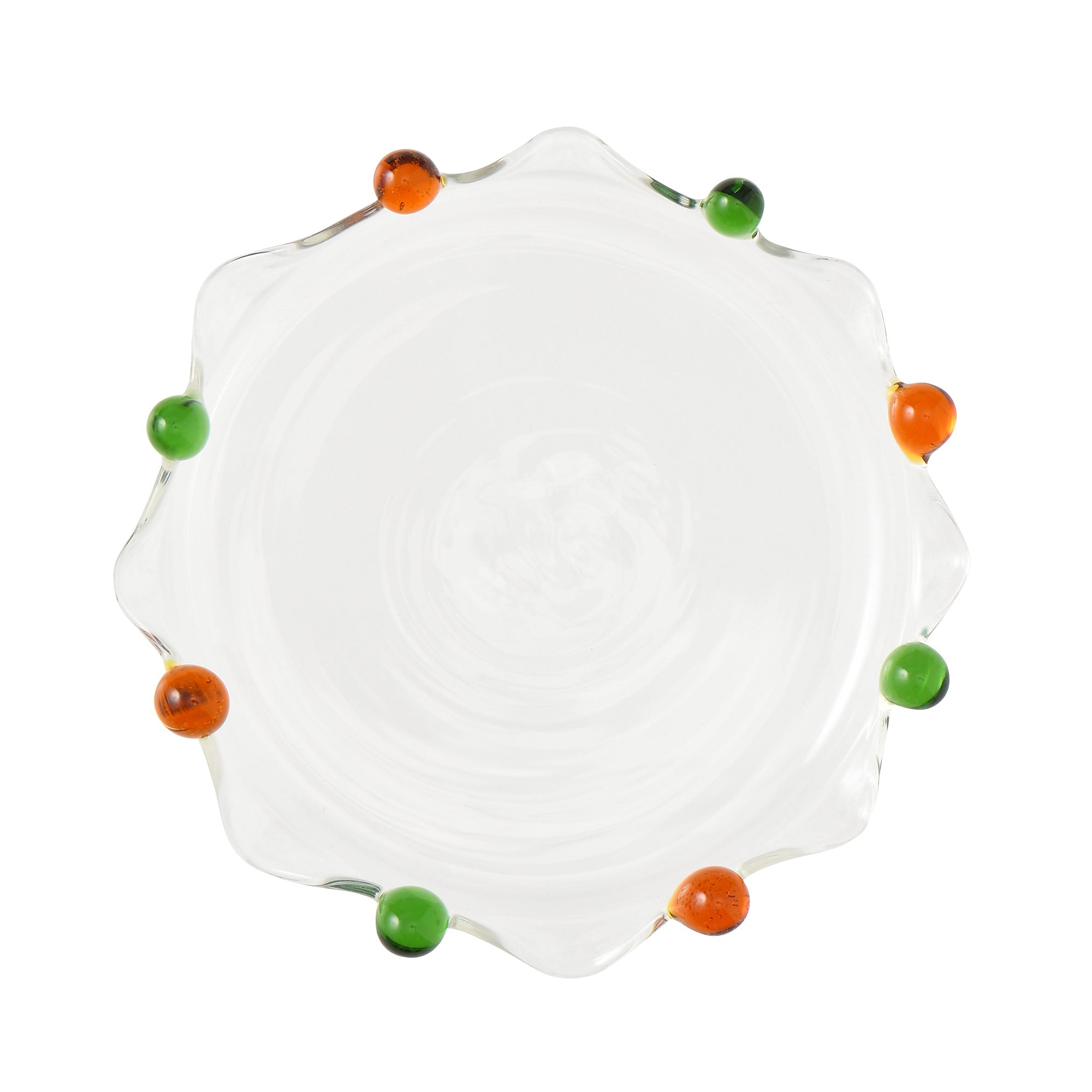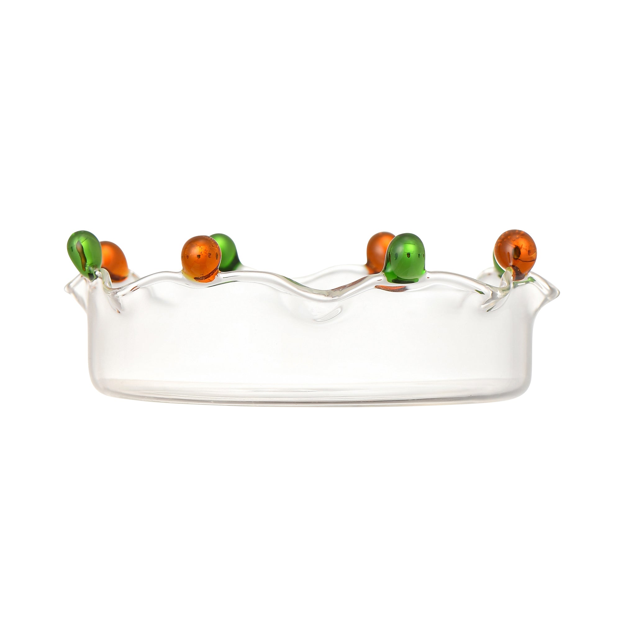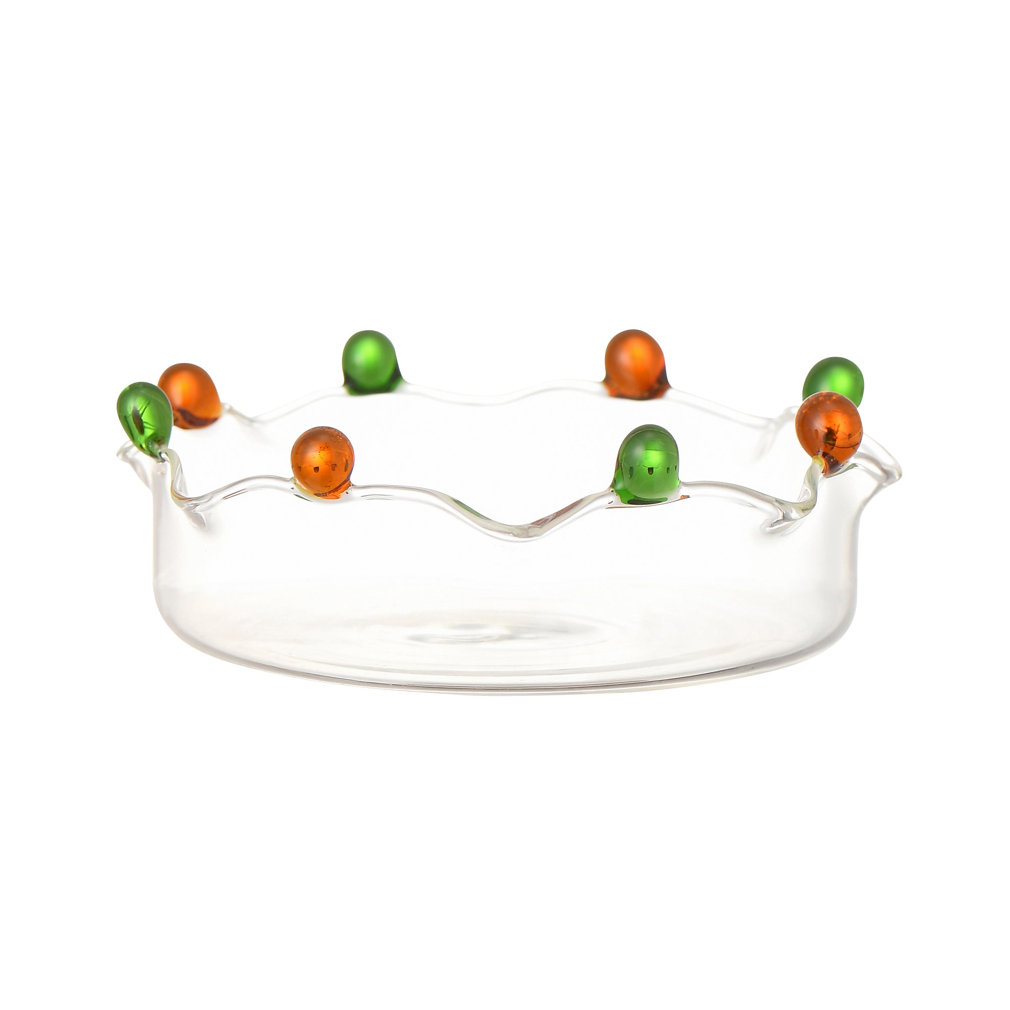 縁についたカラフルなドット型のガラス玉がアクセントになったアクセサリートレイです。まるでとても小さなパフェグラスのような形状で、トレンド感のあるポップなインテリアに挑戦してみたい人にぴったりなデザインです。形状違いのピンクと並べるて飾るのもおすすめです。