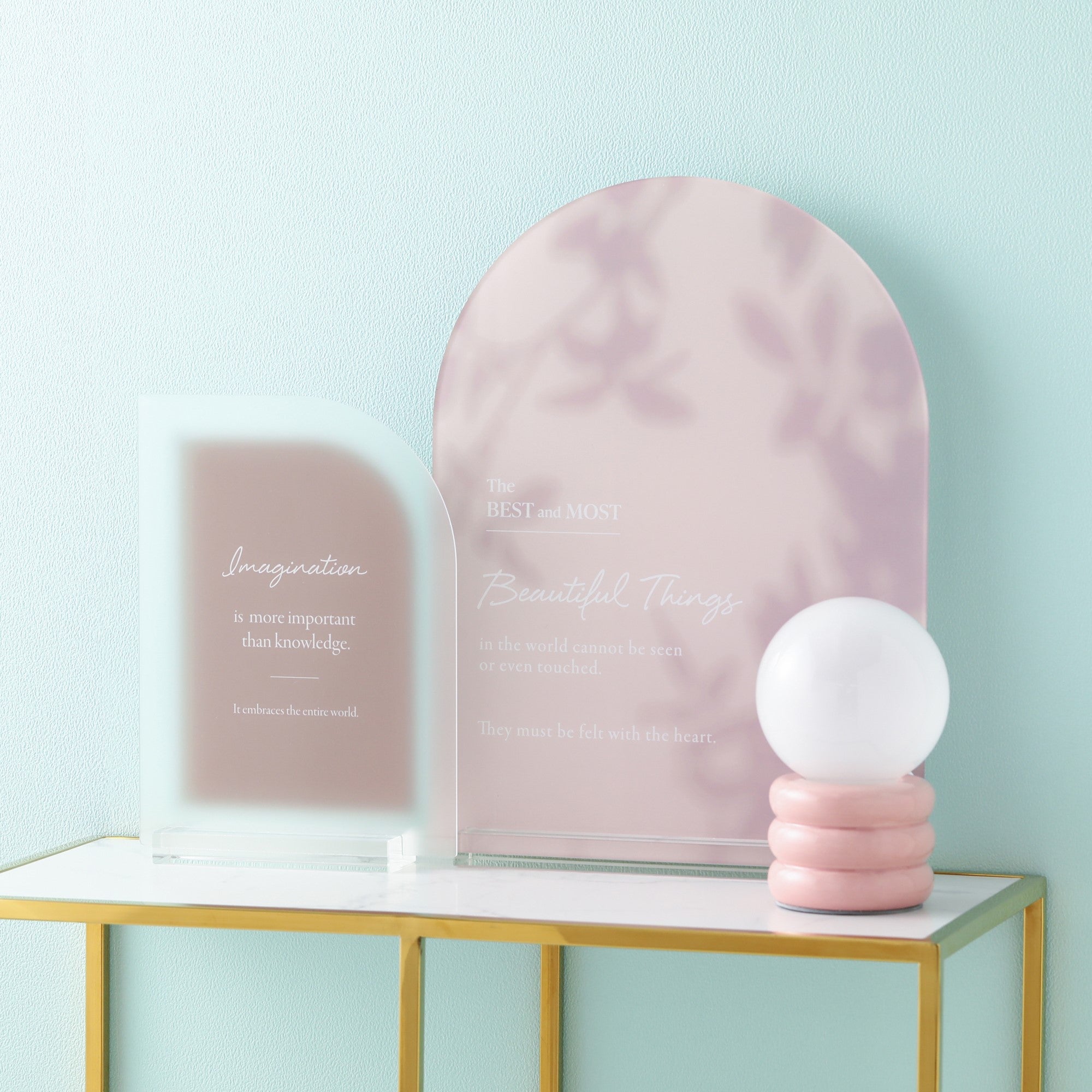 トレンド感あふれるアクリルアートボードです。 付属のスタンドに差し込んでディスプレイするデザイン。壁に立て掛けて飾ることもできます。 2サイズご用意しましたので、異なるサイズを一緒にコーディネートするのもおすすめです。