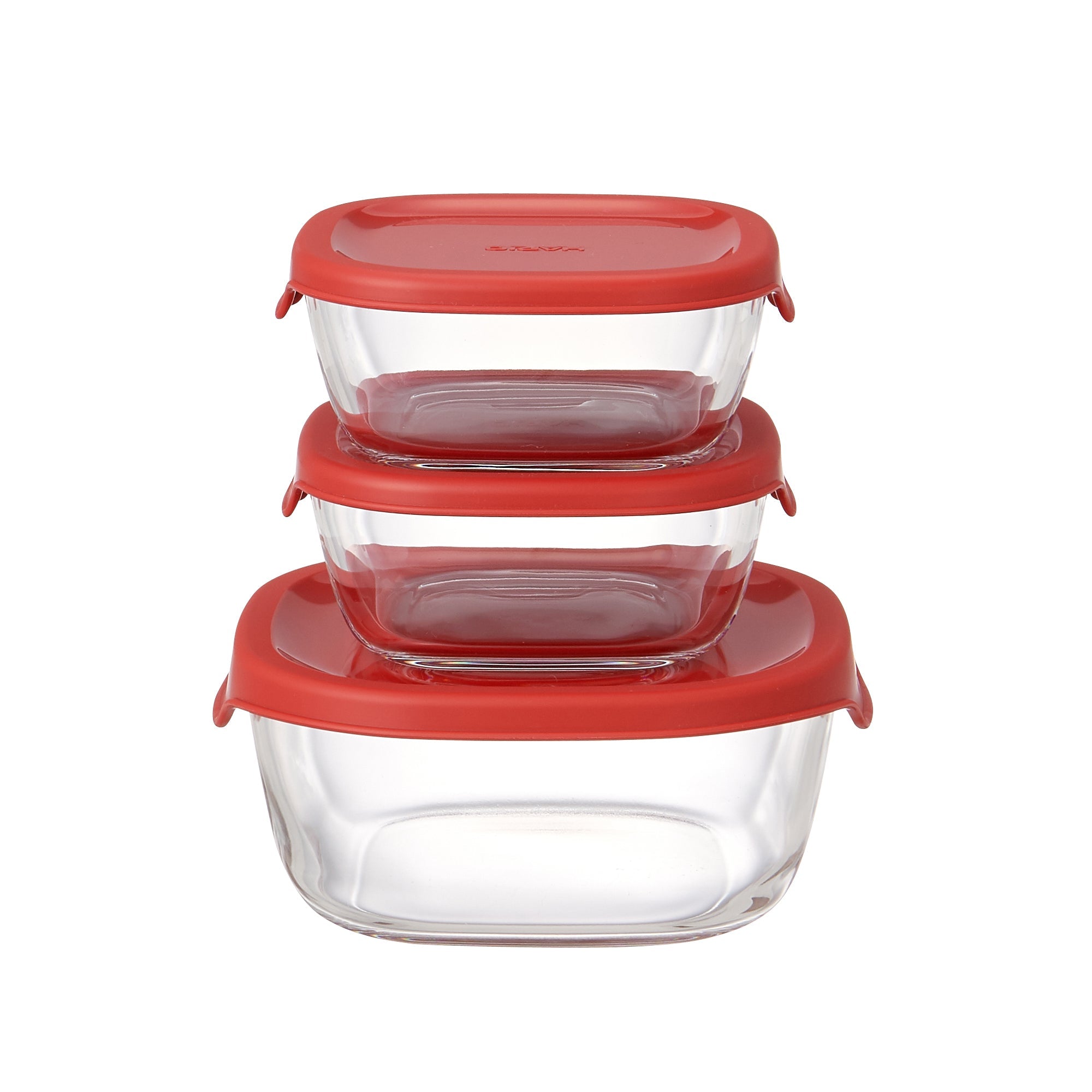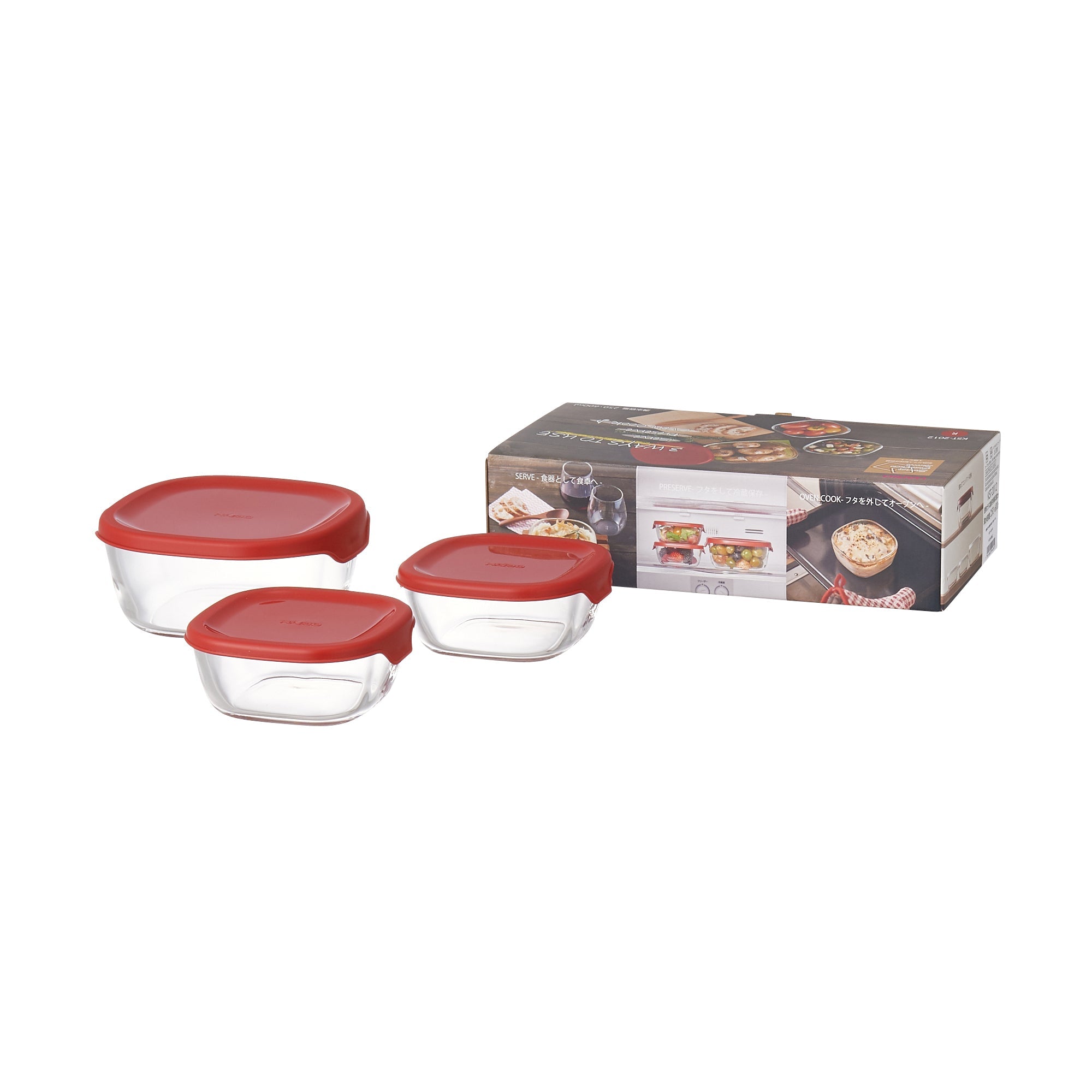 耐熱ガラス製保存容器セット レッド(S 2個、M 1個)