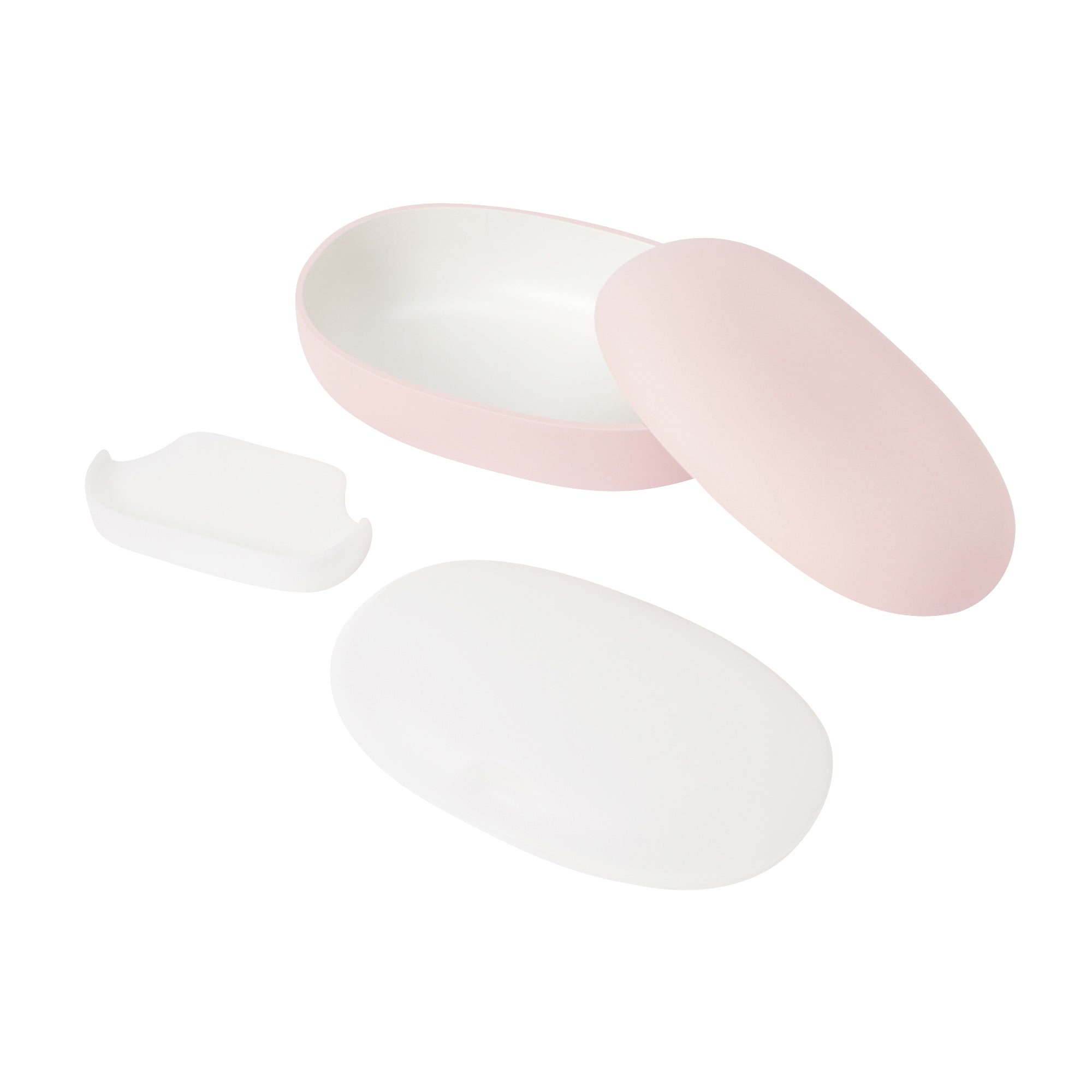 丸みのあるかわいいデザインと少しざらついた乾漆塗装の質感に上質さを感じられるランチボックスです。ドーム型の蓋は容器より多く盛られたご飯やおかずを潰すことなく蓋ができます。また丸いフォルムで角がないため汚れがたまりにくく洗いやすいので清潔に保てます。