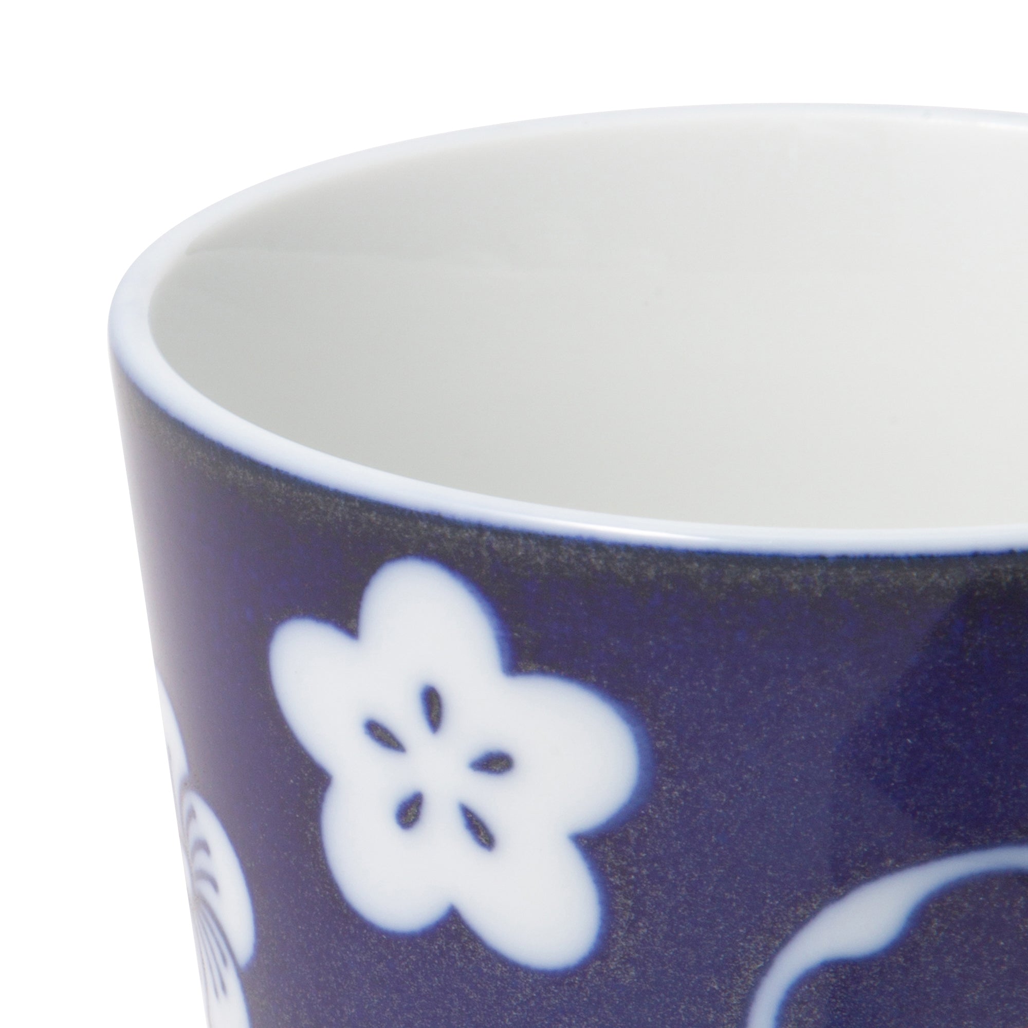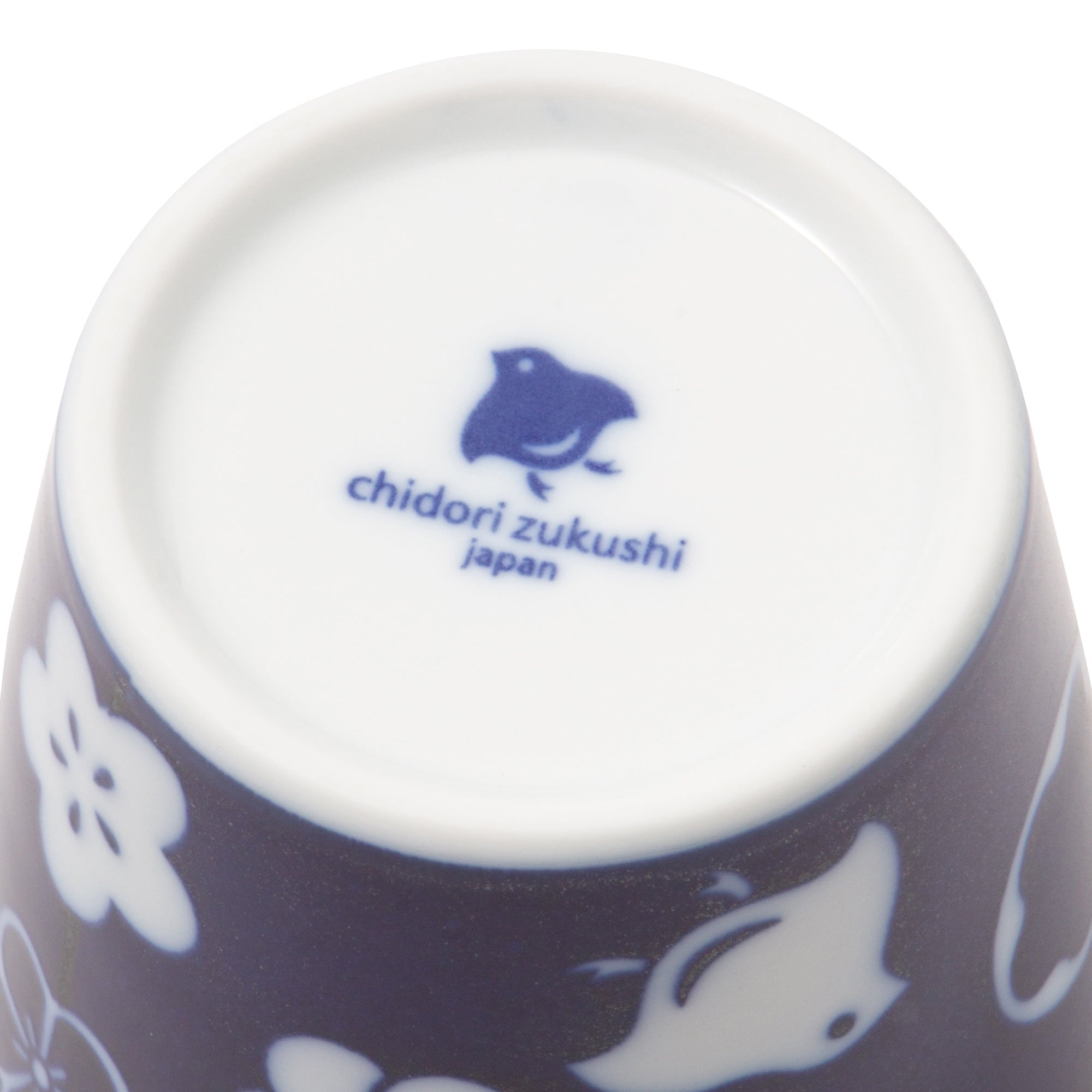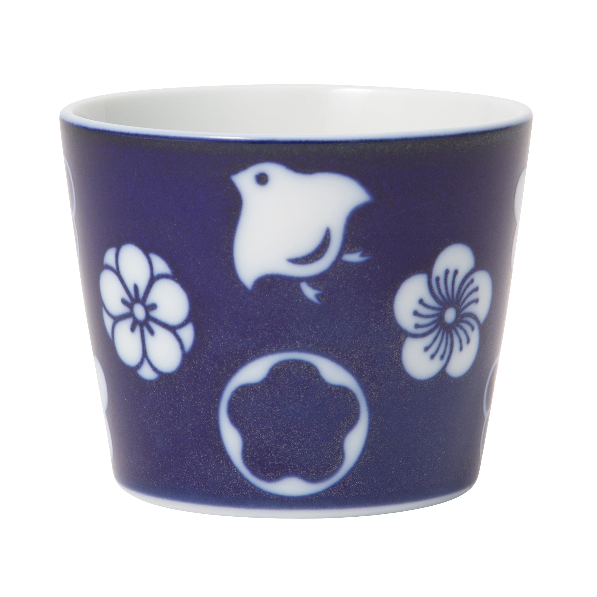日本の伝統柄を用いた定番な形状の蕎麦猪口です。梅と千鳥の縁起の良い組み合わせの柄と白地に濃い藍色が映えた美しい仕上がりになっています。蕎麦猪口としてはもちろん、小料理やソースなどの取り分けや、アイスや寒天のデザートカップとしてもお使いいただける、使い勝手の良い食器です。
