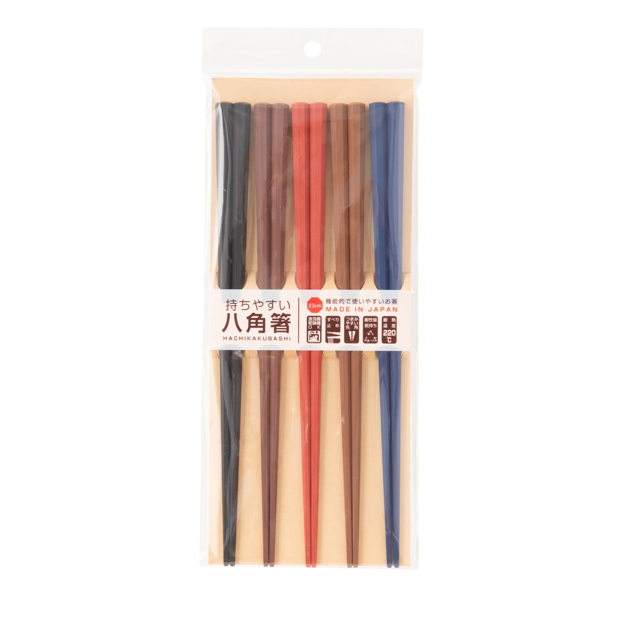 持ちやすい八角形の丈夫な箸のセットです。箸先にはすべりにくい加工が施されています。食器洗浄機対応で耐熱温度220℃と丈夫なので業務用としてもお使いいただけます。
