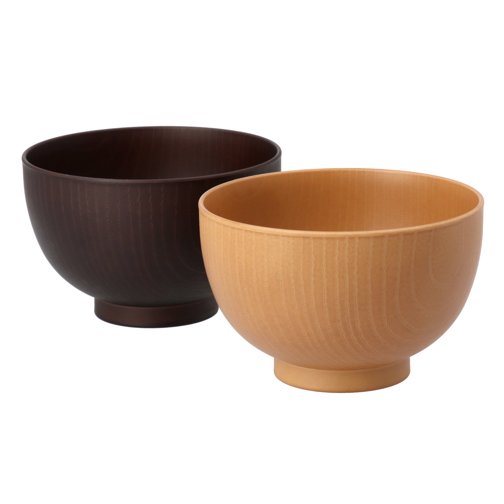木の模様が美しいちょうどいいサイズの樹脂製のお椀です。日本製の上、軽くて割れにくいので安心してお使いいただけます。電子レンジも食器洗浄機も使えて、普段使いにぴったりです。