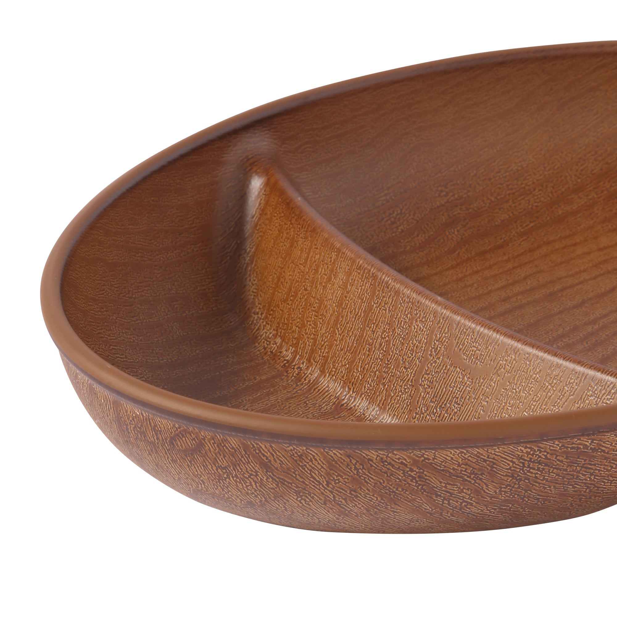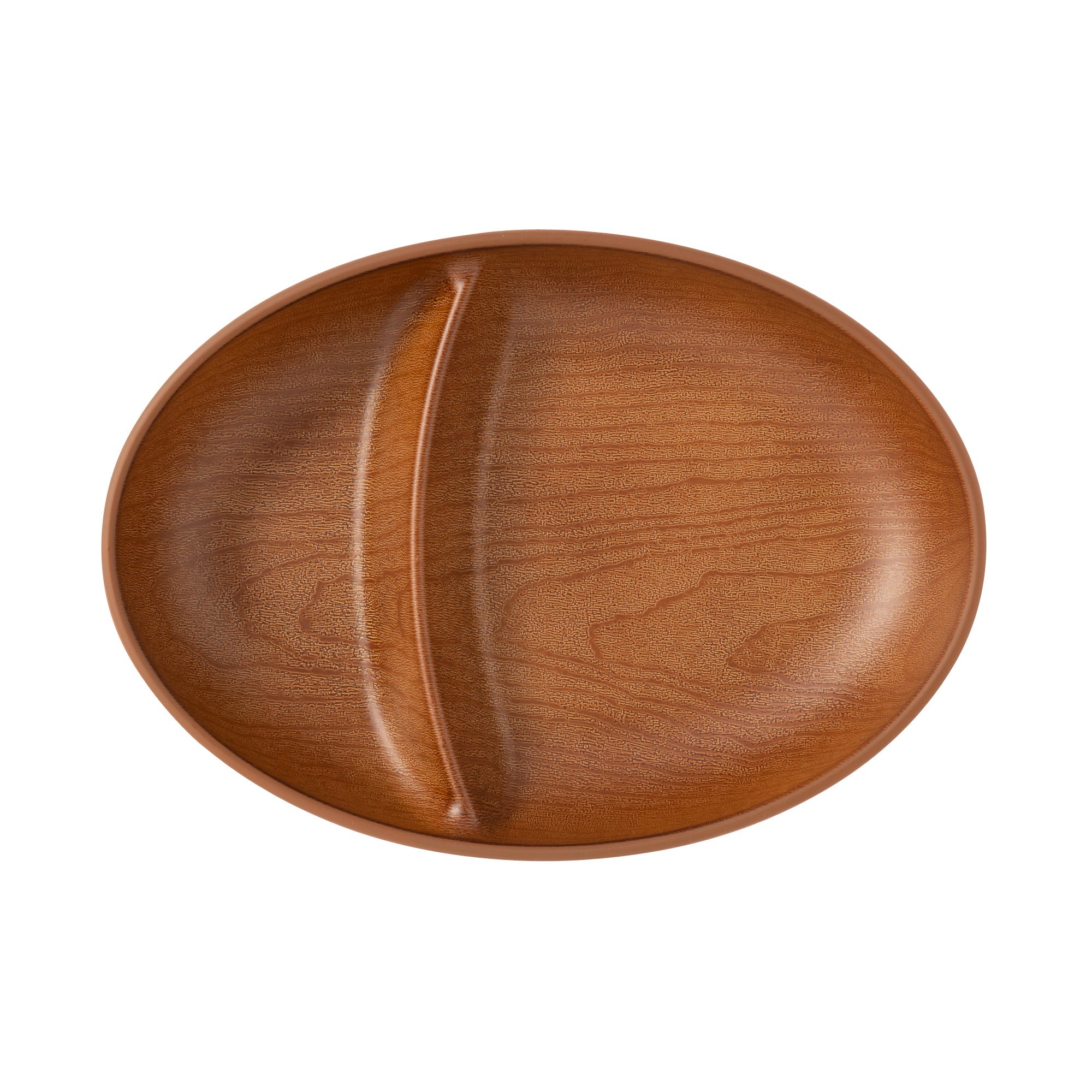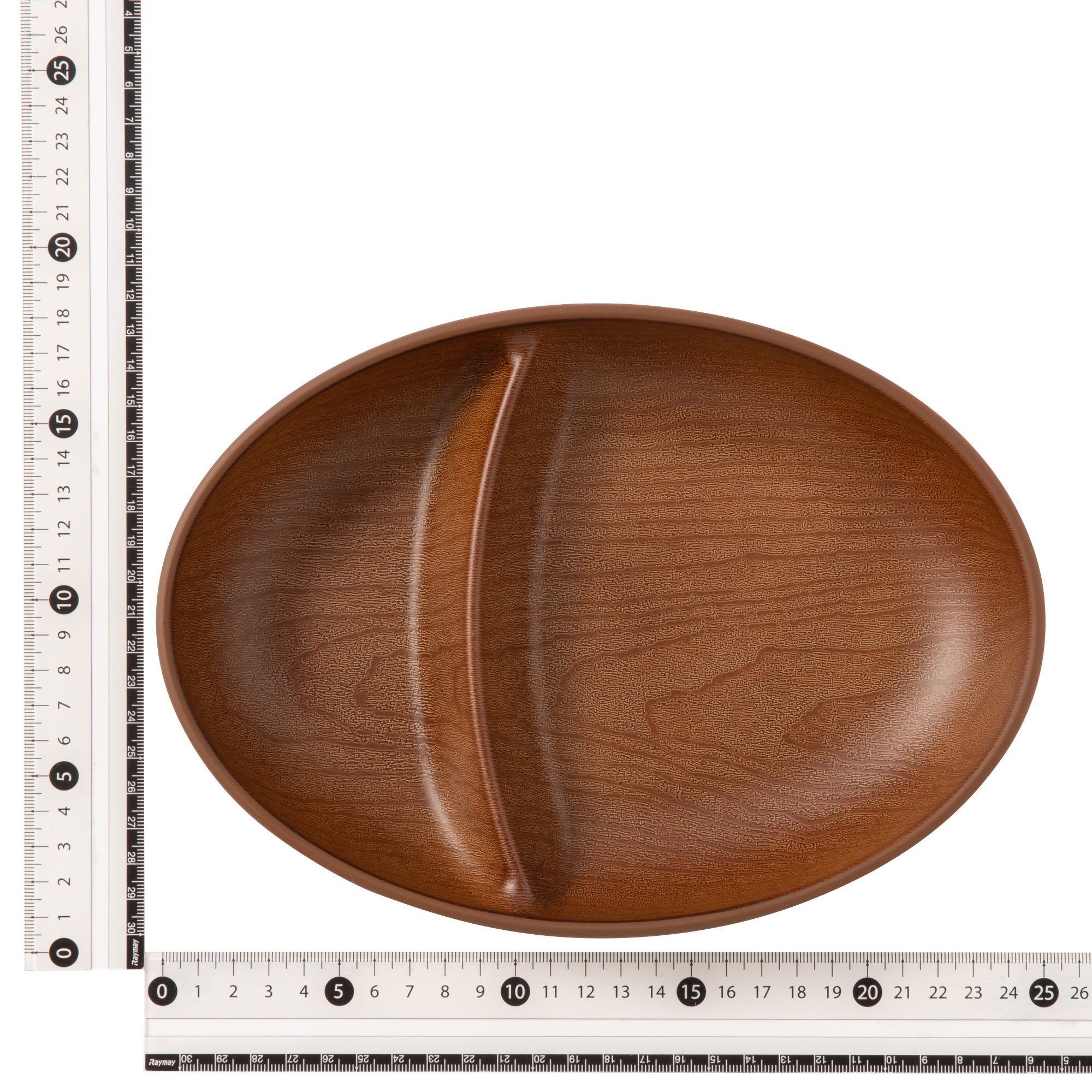 リアルな木の模様が美しいお手軽便利な樹脂製のカレープレートです。日本製の上、軽くて割れにくいので安心してお使いいただけます。電子レンジも食器洗浄機も使えて、普段使いにぴったりです。スタッキングもできて収納スペースの節約ができるのも魅力。アウトドアで使うときの持ち運びにも便利です。食器の表面の木目模様は全て職人さんの手仕事です。技術の高い職人さんによりリアルな木目模様を施してもらいました。
