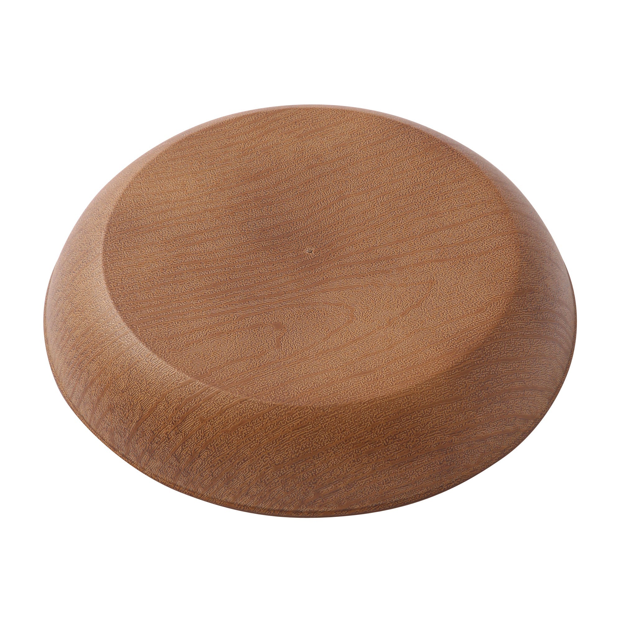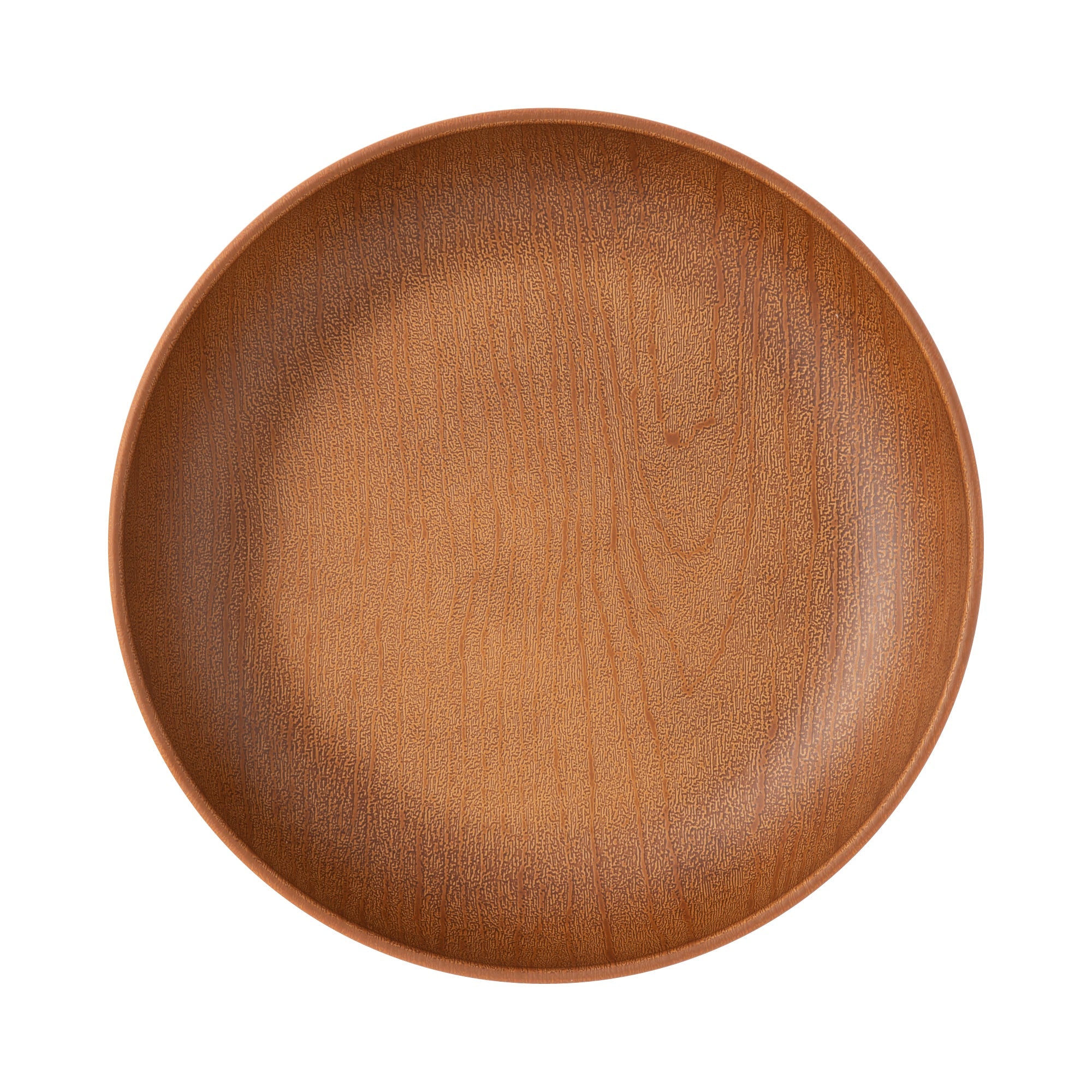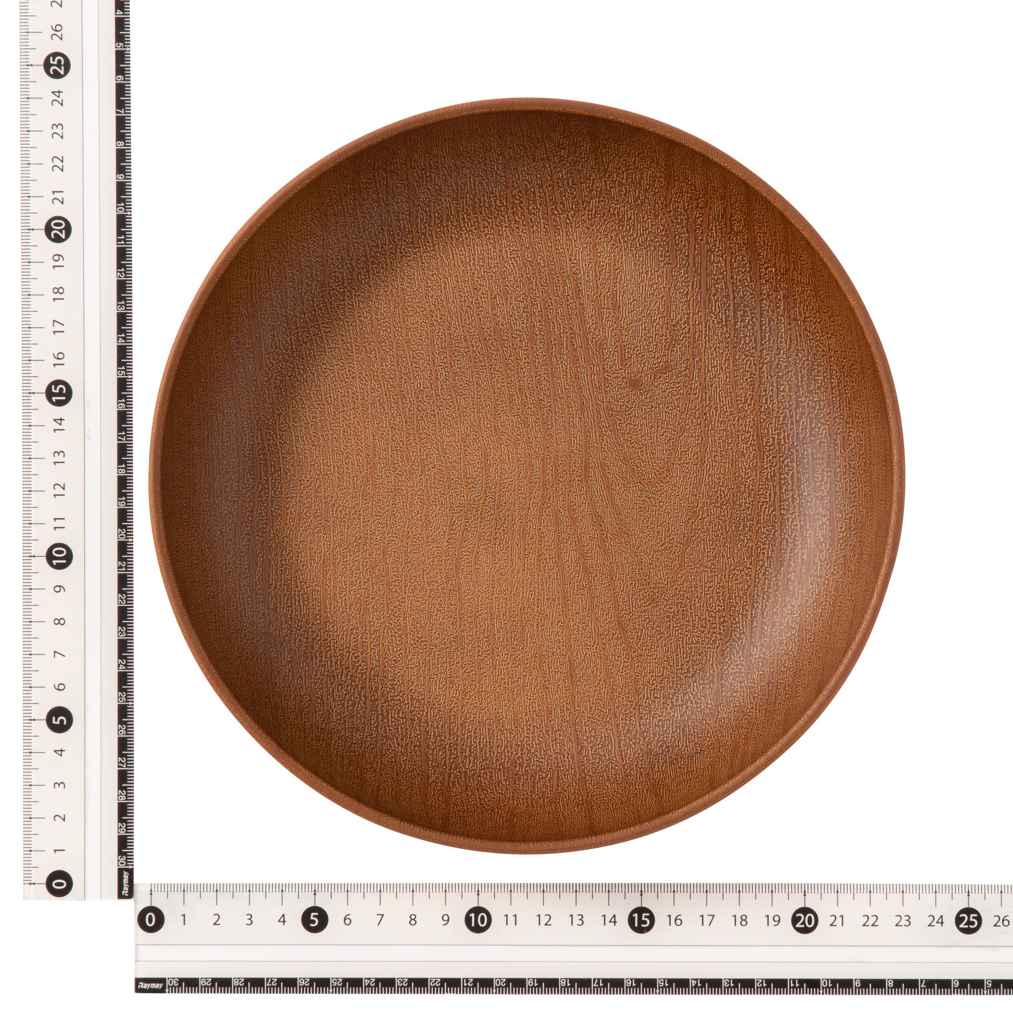 リアルな木の模様が美しいお手軽便利な樹脂製のディーププレートです。日本製の上、軽くて割れにくいので安心してお使いいただけます。シンプルな円形で使い勝手よく、電子レンジも食器洗浄機も使えて、普段使いにぴったりです。スタッキングもできて収納スペースの節約ができるのも魅力。アウトドアで使うときの持ち運びにも便利です。食器の表面の木目模様は全て職人さんの手仕事です。技術の高い職人さんによりリアルな木目模様を施してもらいました。