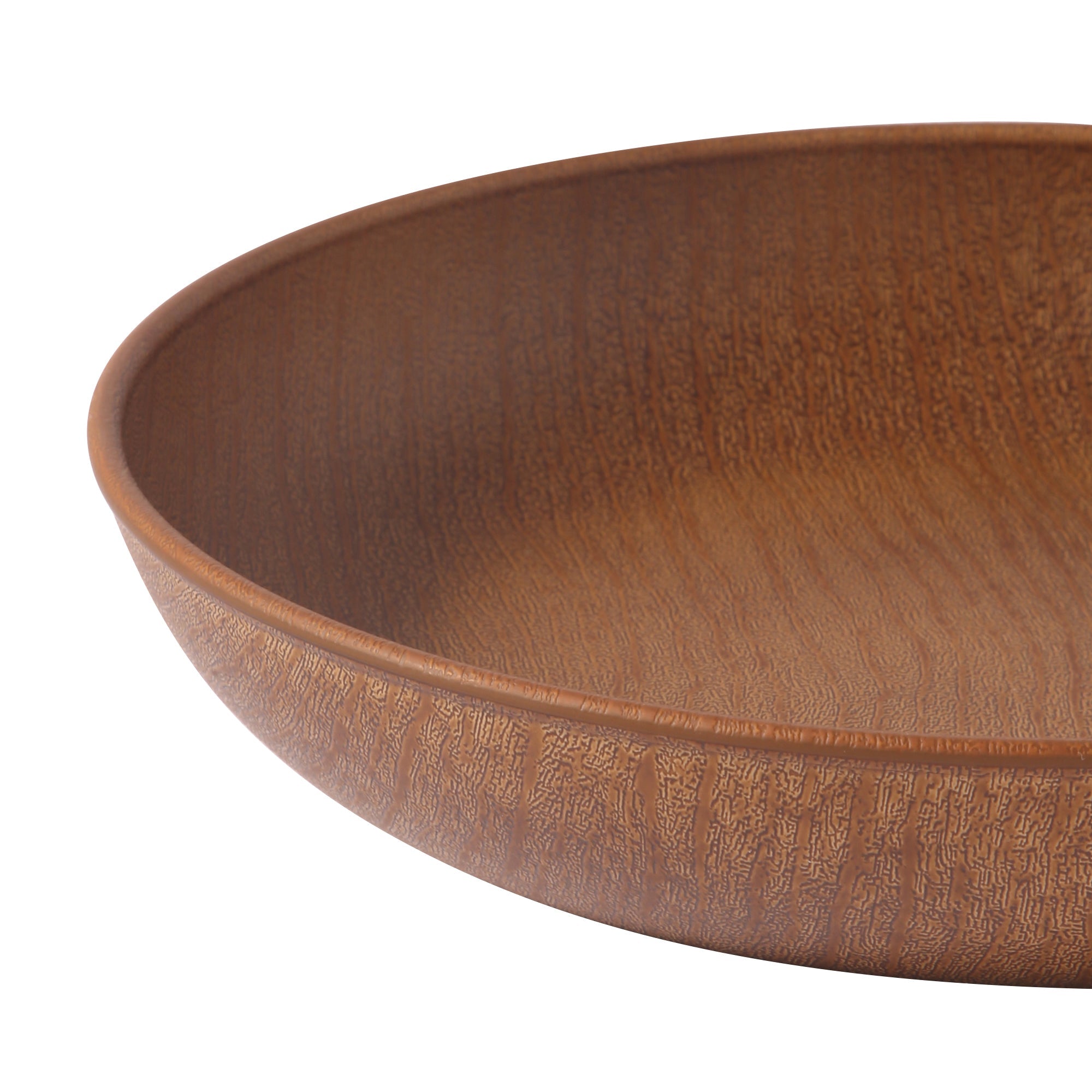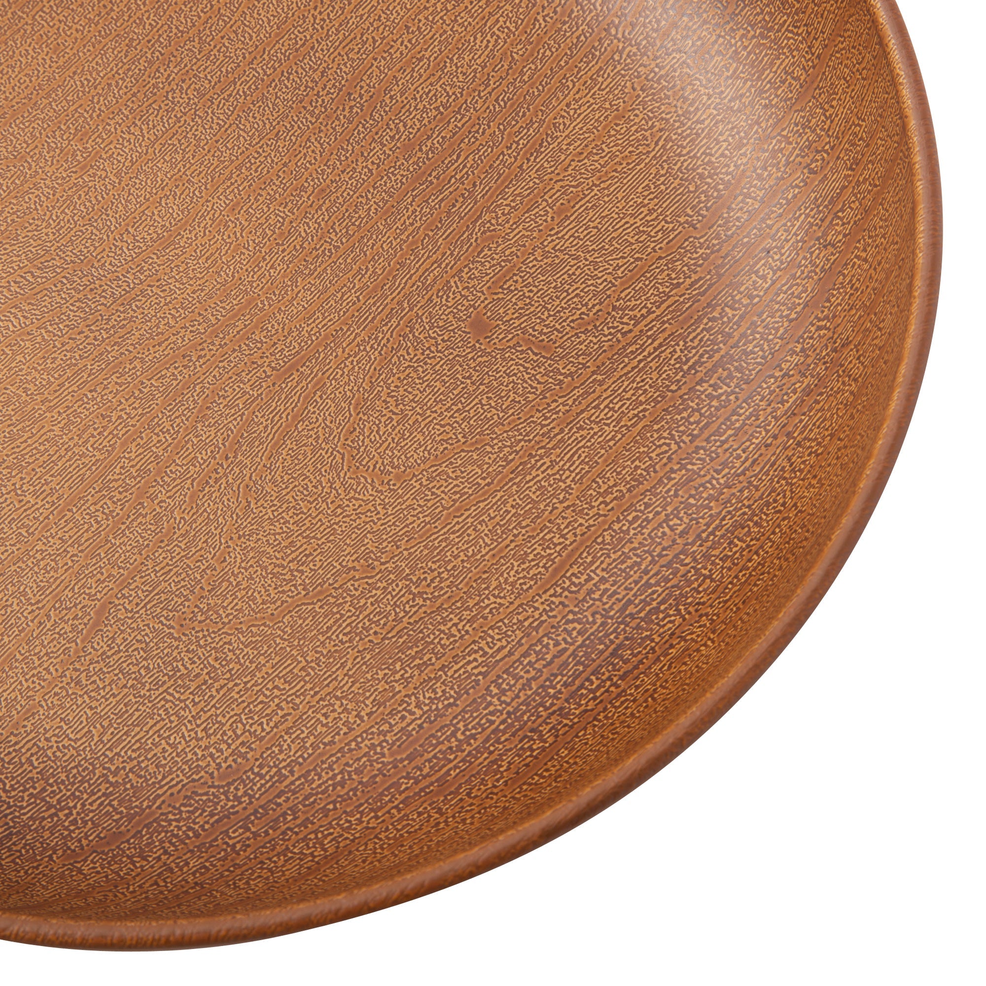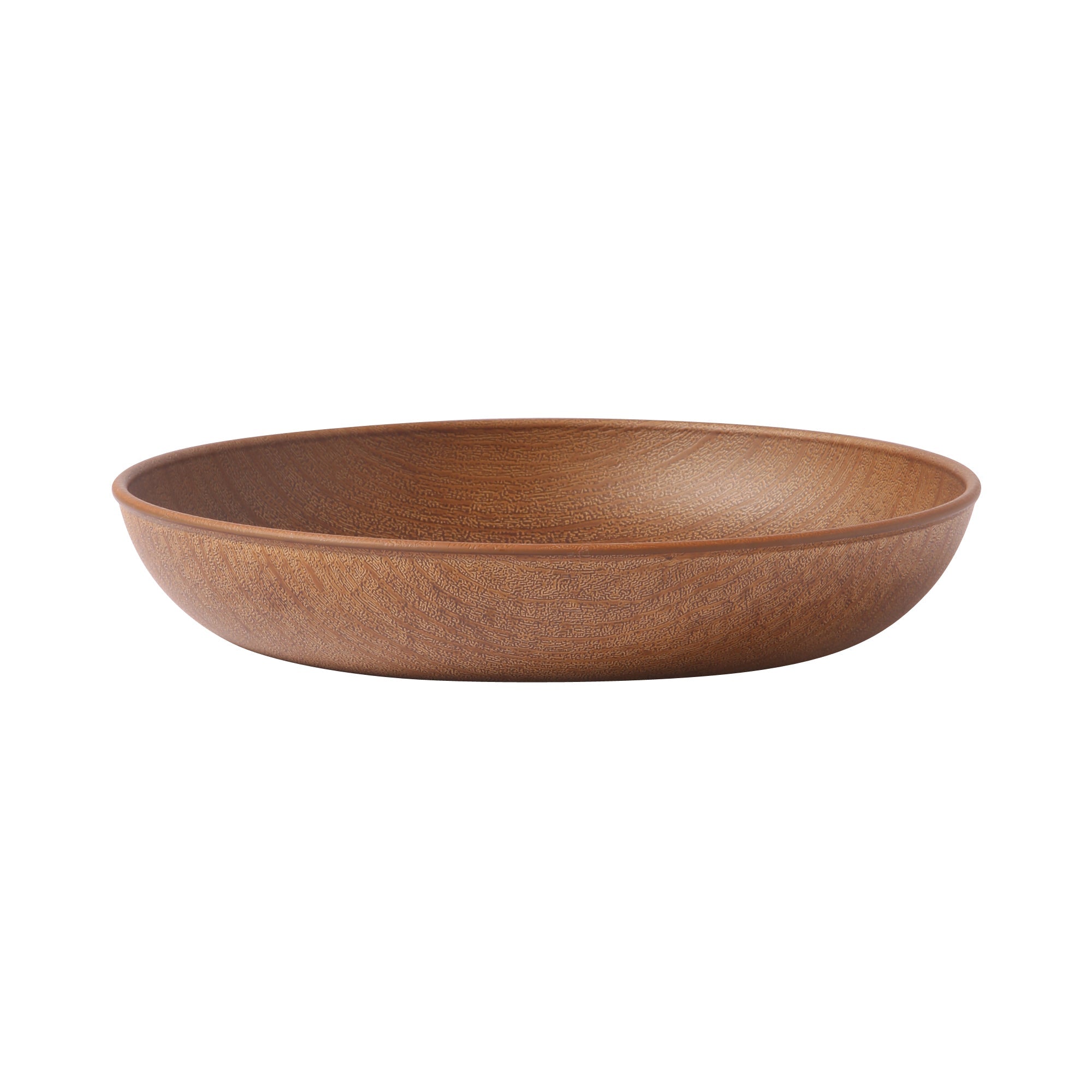 リアルな木の模様が美しいお手軽便利な樹脂製のディーププレートです。日本製の上、軽くて割れにくいので安心してお使いいただけます。シンプルな円形で使い勝手よく、電子レンジも食器洗浄機も使えて、普段使いにぴったりです。スタッキングもできて収納スペースの節約ができるのも魅力。アウトドアで使うときの持ち運びにも便利です。食器の表面の木目模様は全て職人さんの手仕事です。技術の高い職人さんによりリアルな木目模様を施してもらいました。