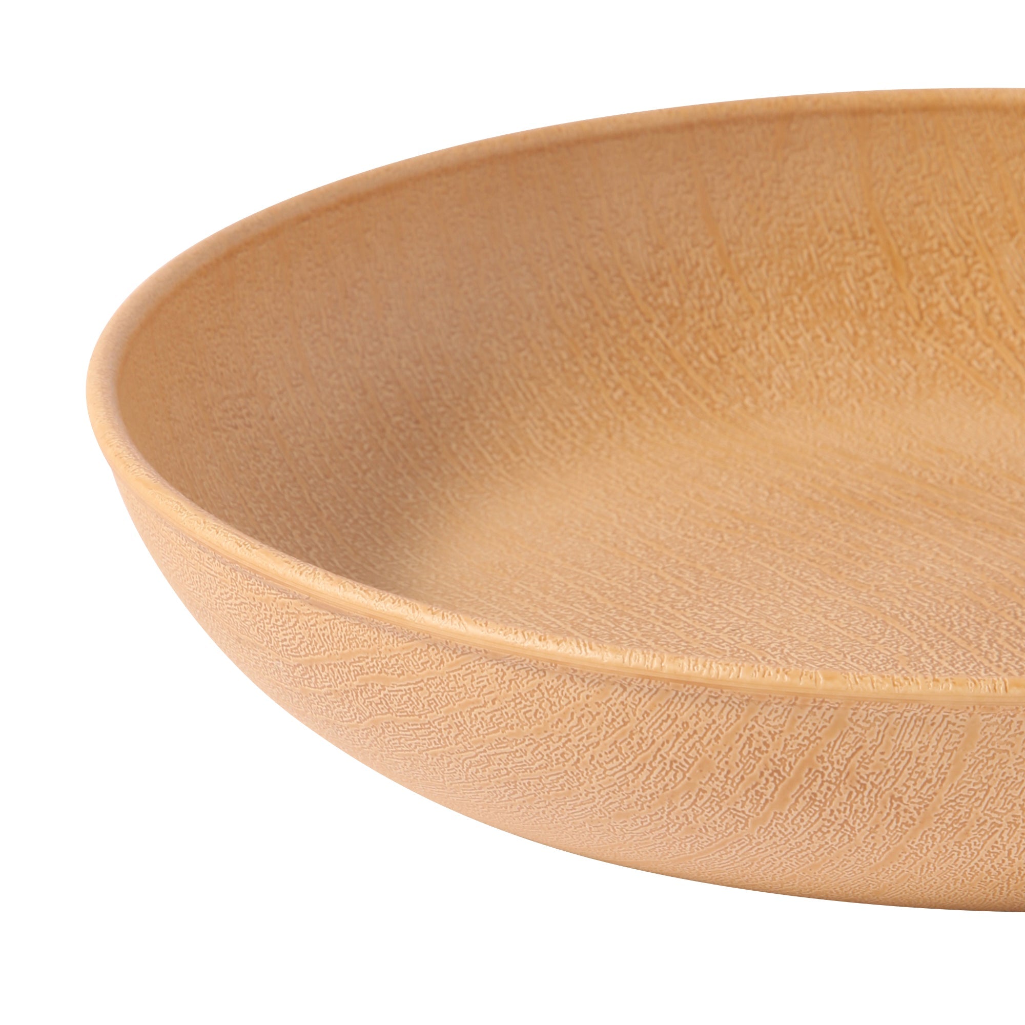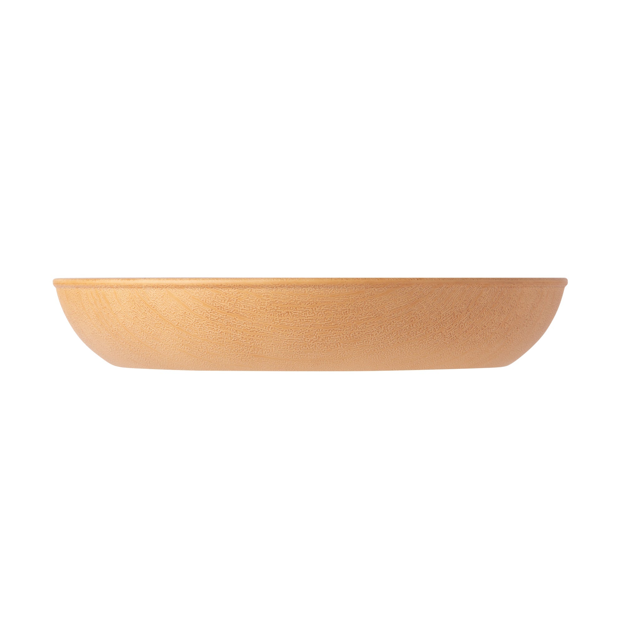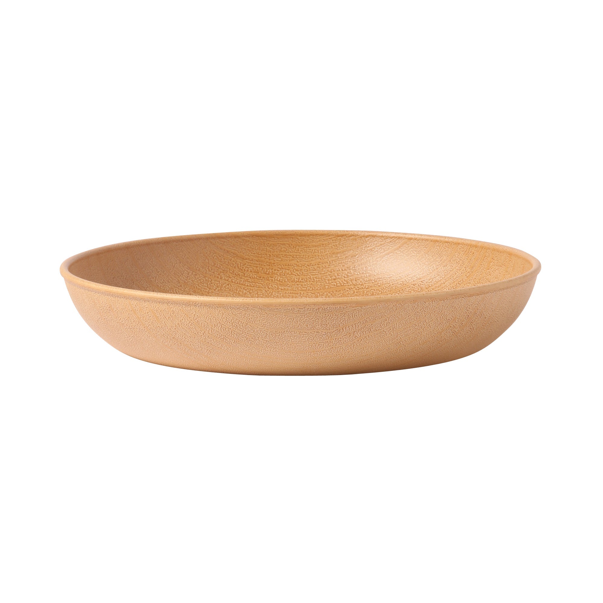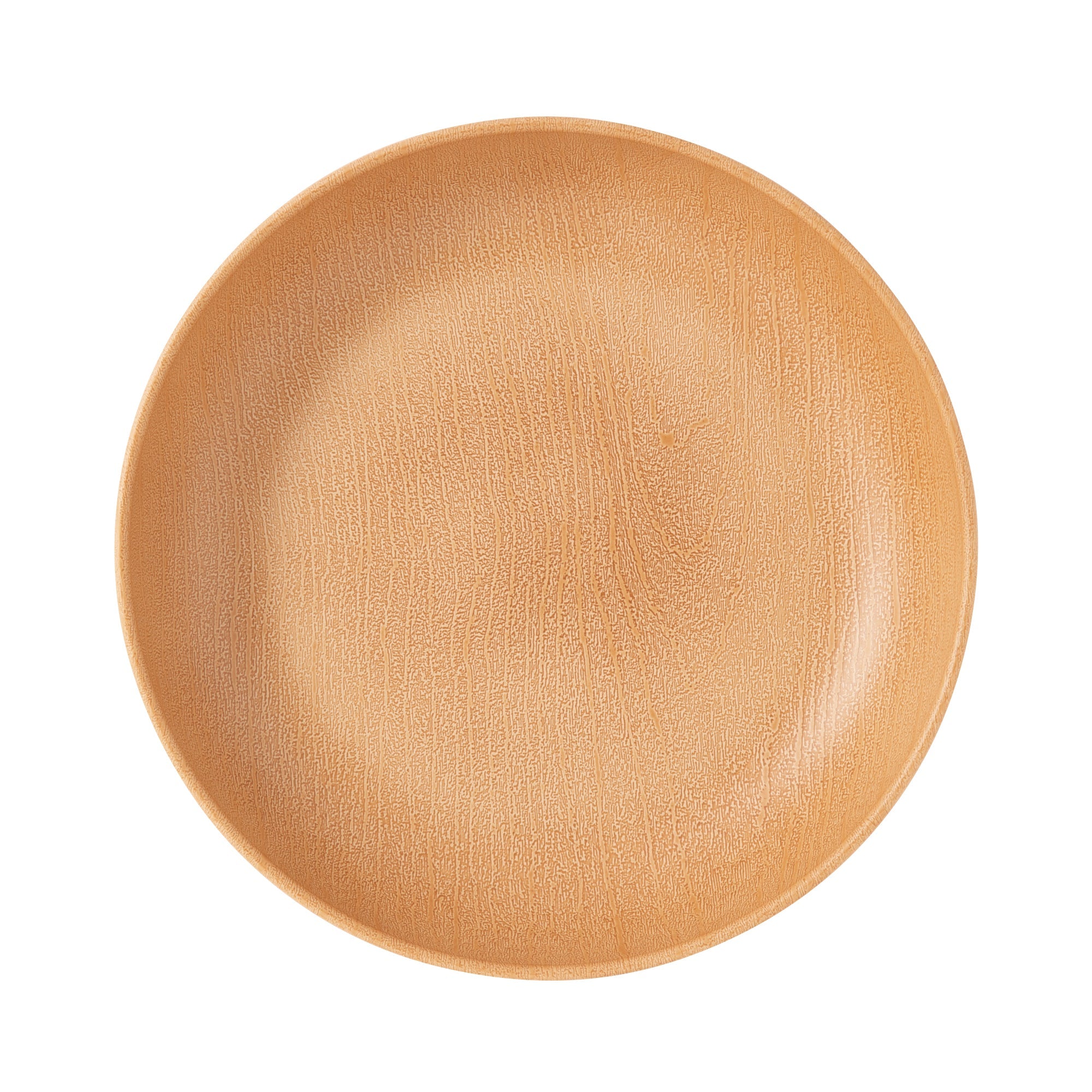 リアルな木の模様が美しいお手軽便利な樹脂製のディーププレートです。日本製の上、軽くて割れにくいので安心してお使いいただけます。シンプルな円形で使い勝手よく、電子レンジも食器洗浄機も使えて、普段使いにぴったりです。スタッキングもできて収納スペースの節約ができるのも魅力。アウトドアで使うときの持ち運びにも便利です。食器の表面の木目模様は全て職人さんの手仕事です。技術の高い職人さんによりリアルな木目模様を施してもらいました。