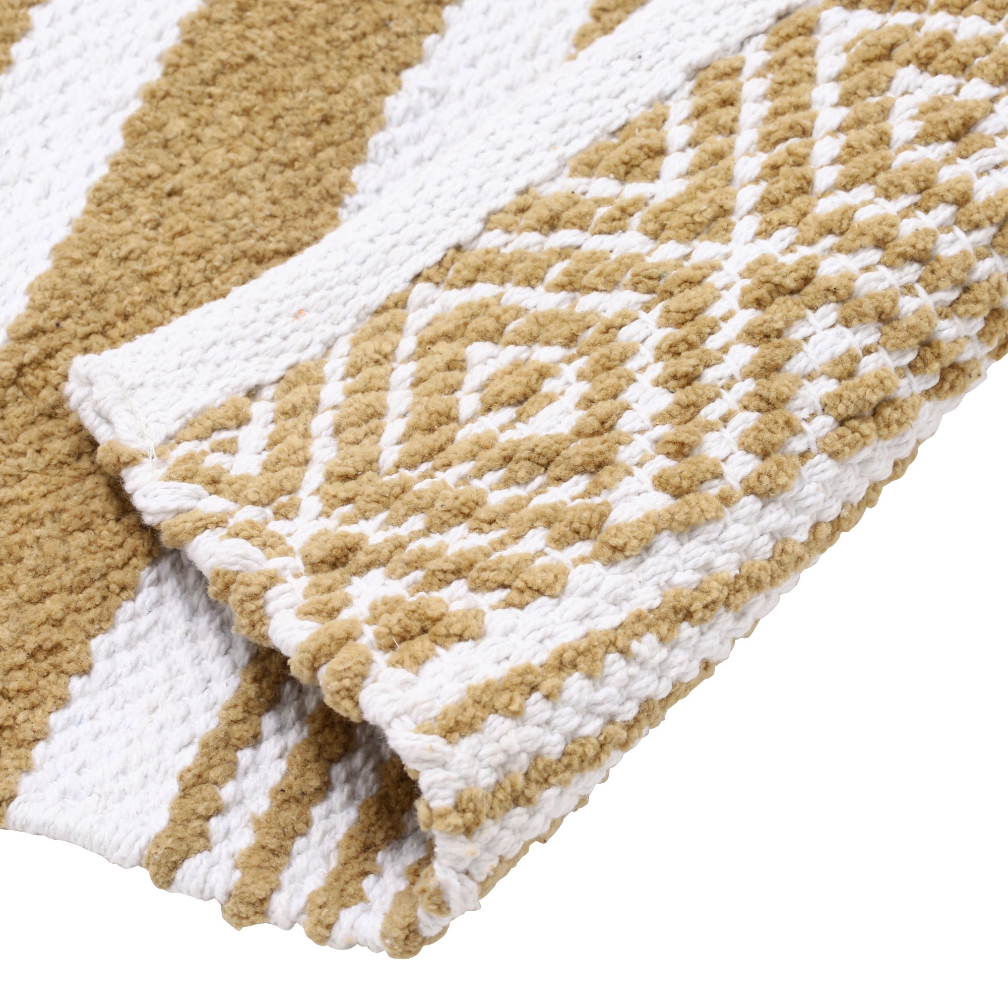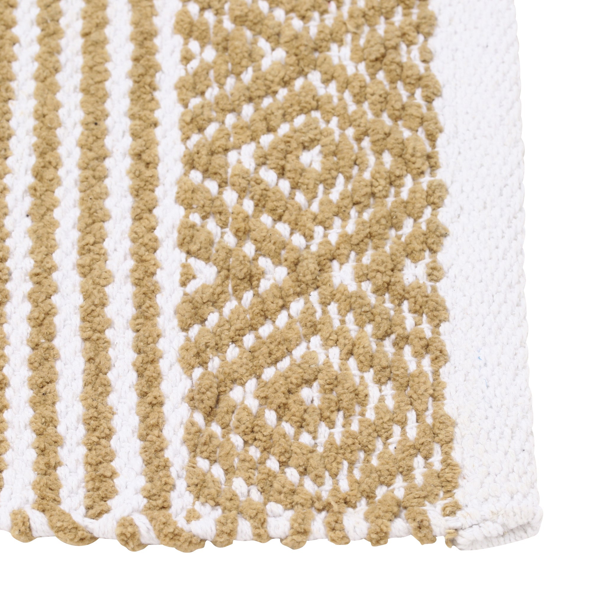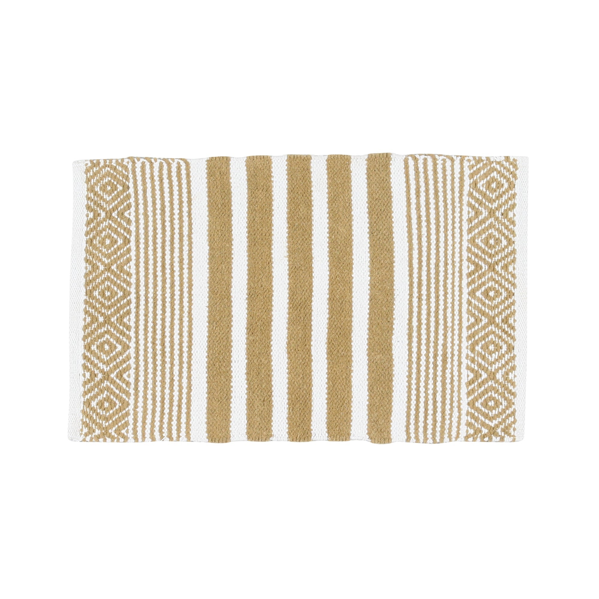 タイル柄とボーダー柄を組み合わせたエスニックテイストのマットです。単色の落ち着いたデザインなのでどんなインテリアにも相性が良く、お洒落なアクセントにもなります。キッチンマットとしてだけでなく、玄関マットやドレッサーマットなど幅広く使えるサイズです。