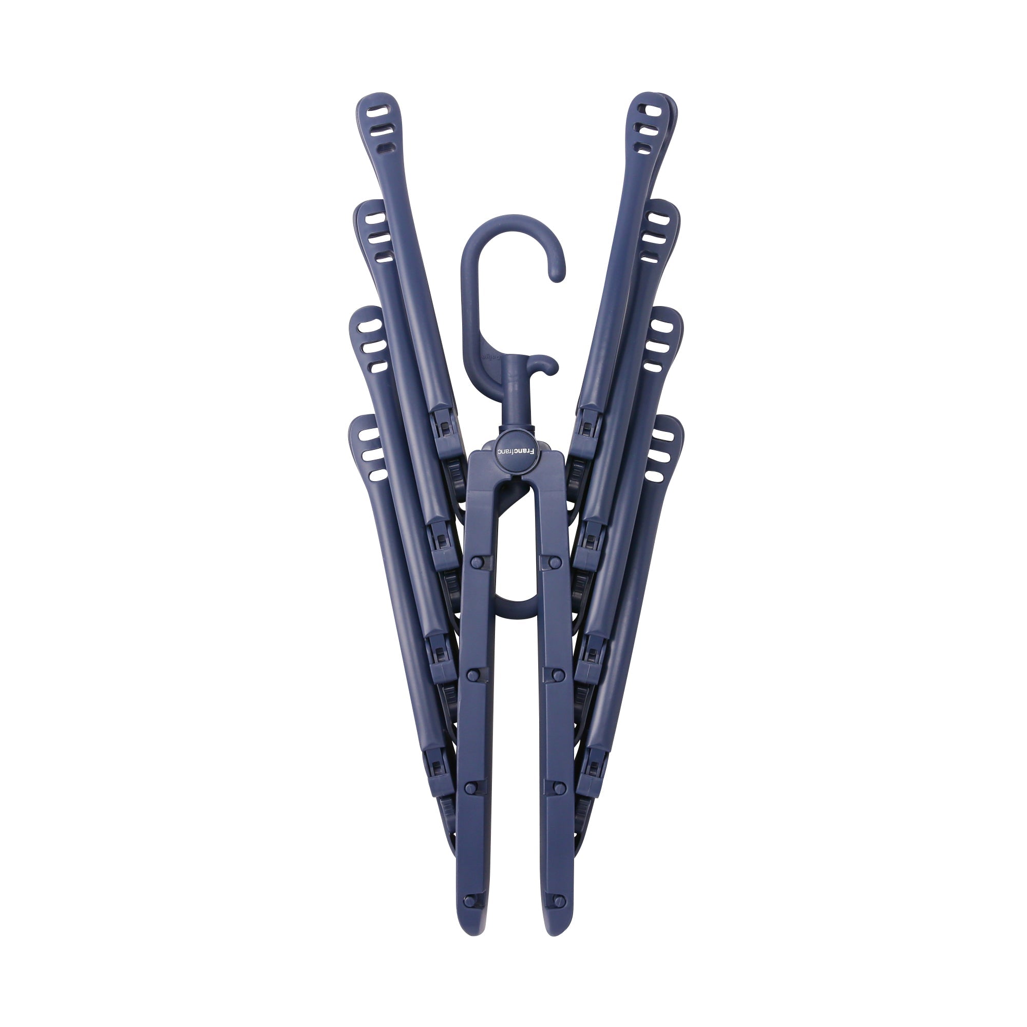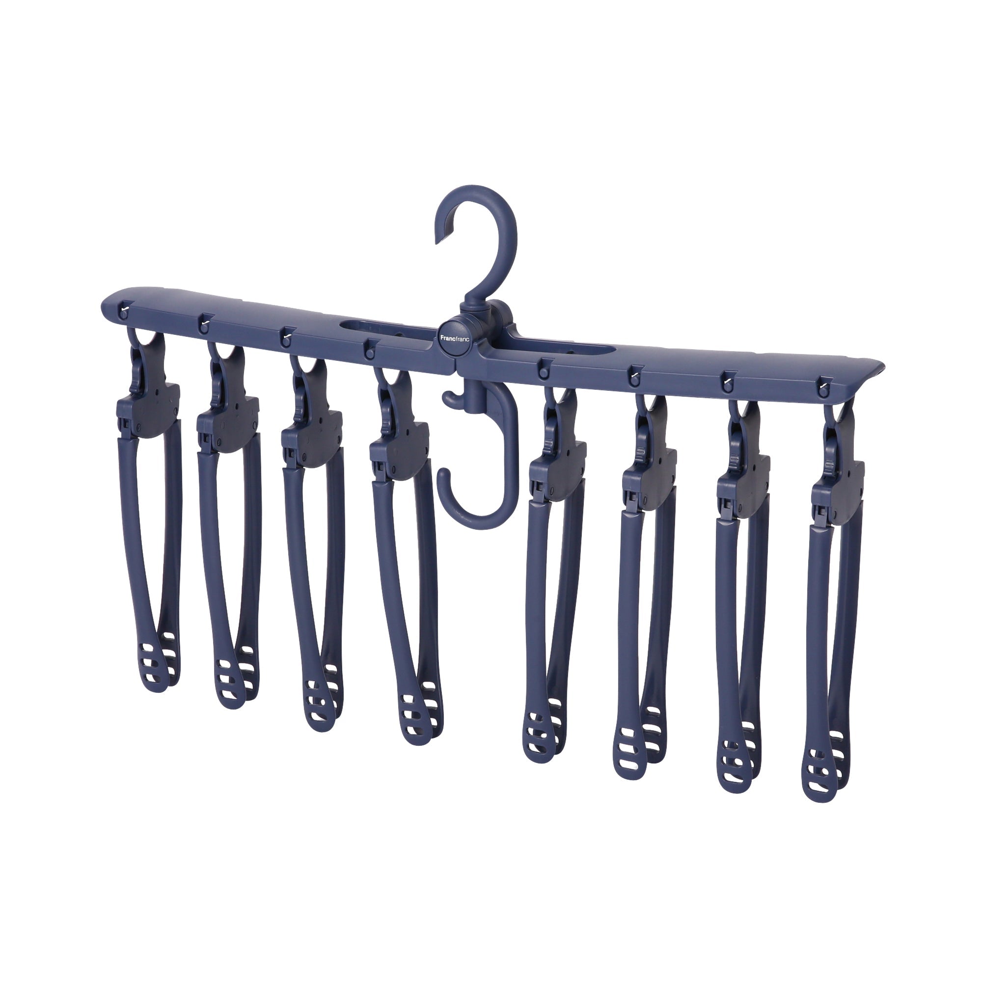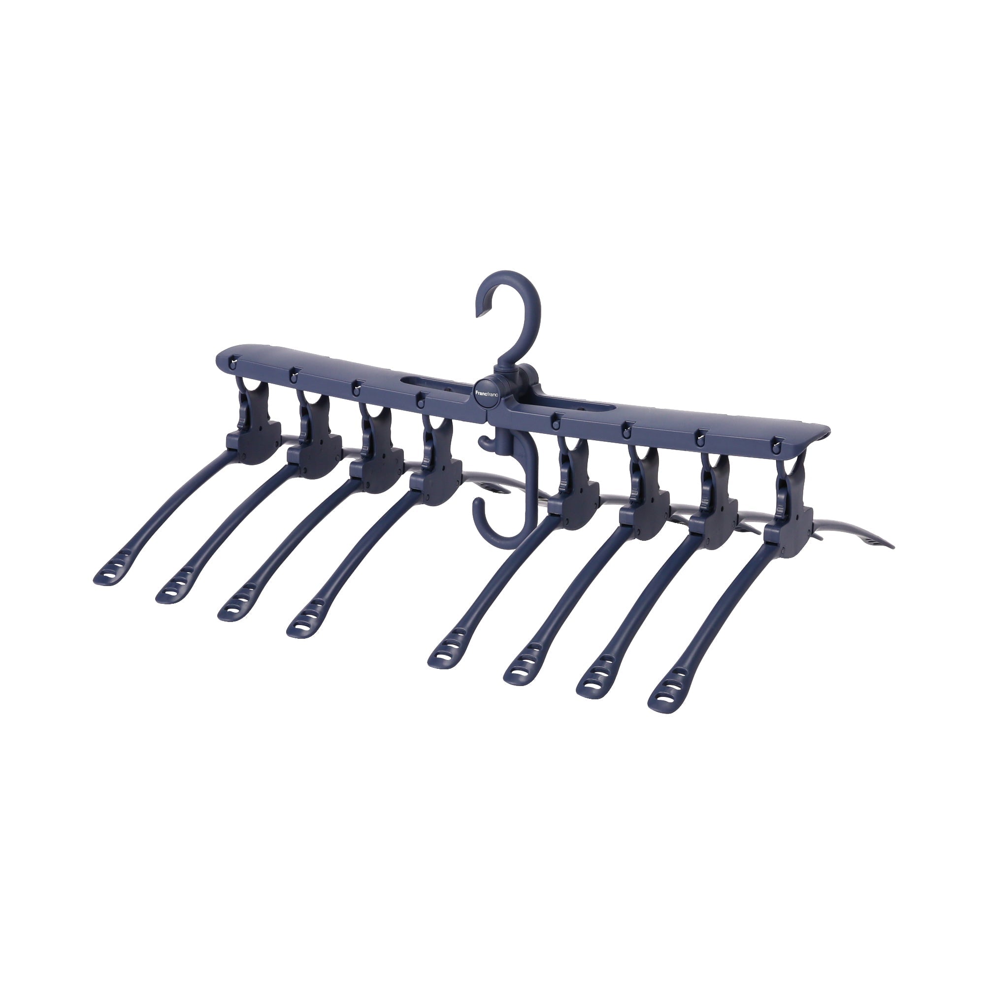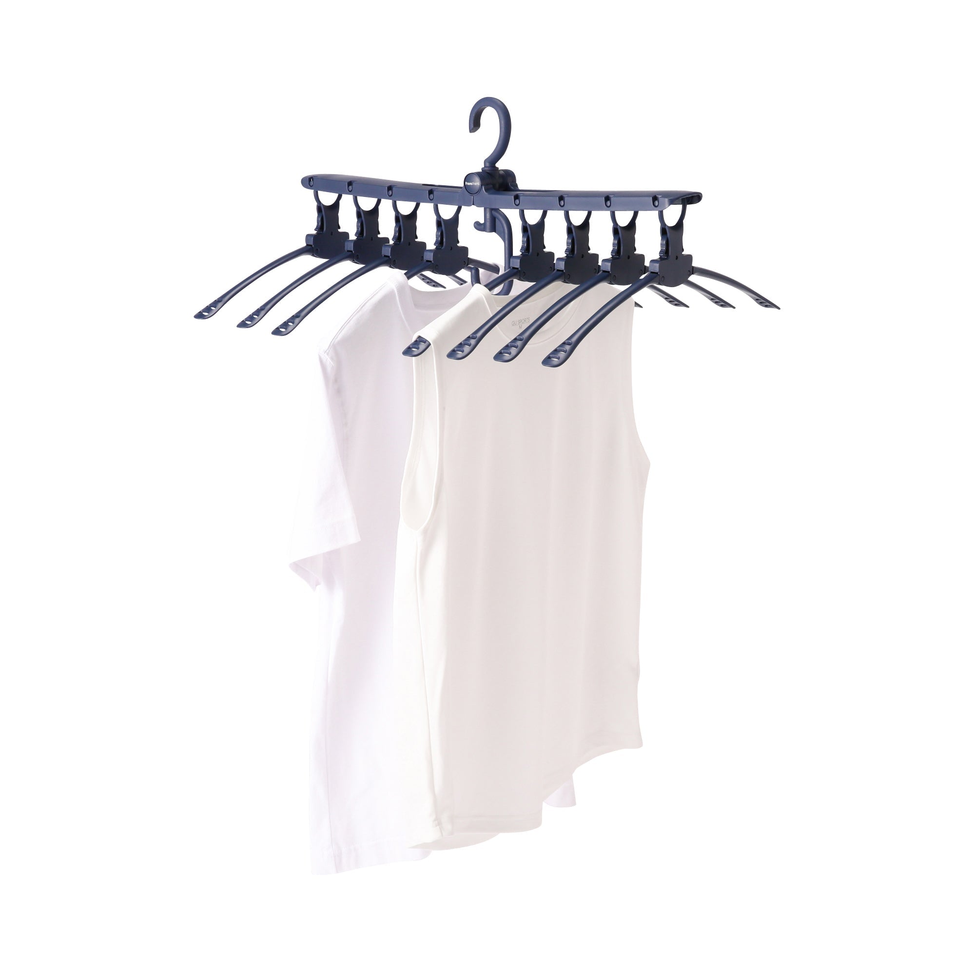 Tシャツ・ワイシャツをたっぷり8枚干してさっと取り込めるハンガーです。洋服の首元を伸ばさず簡単に干せてワンタッチで簡単に外せます。使わない時はスリムに収納できます。