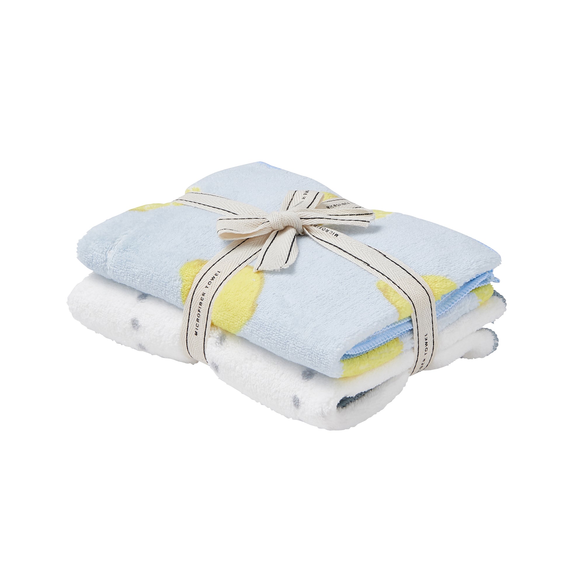 クイックドライ フェイスタオル レモン&ラインドット (2枚セット)