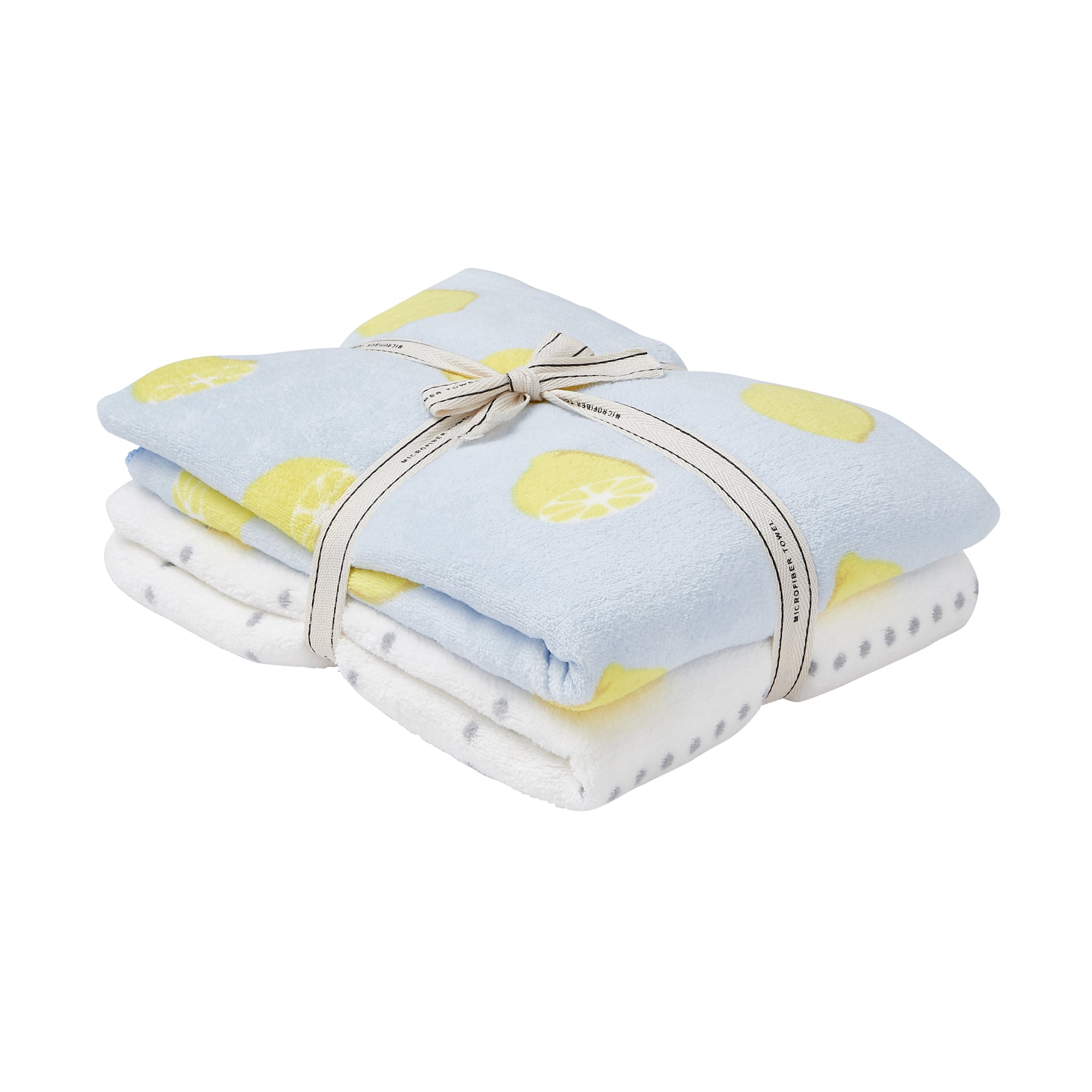 クイックドライ バスタオル レモン&ラインドット (2枚セット)
