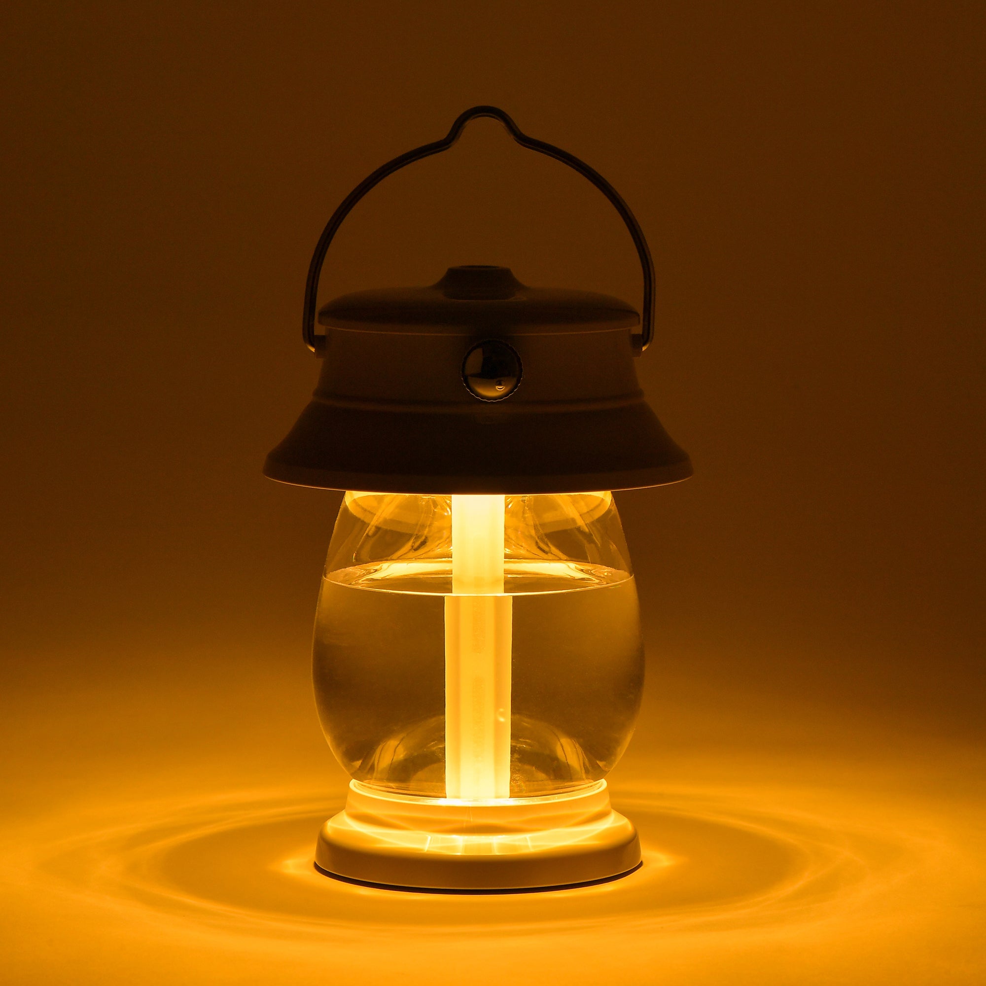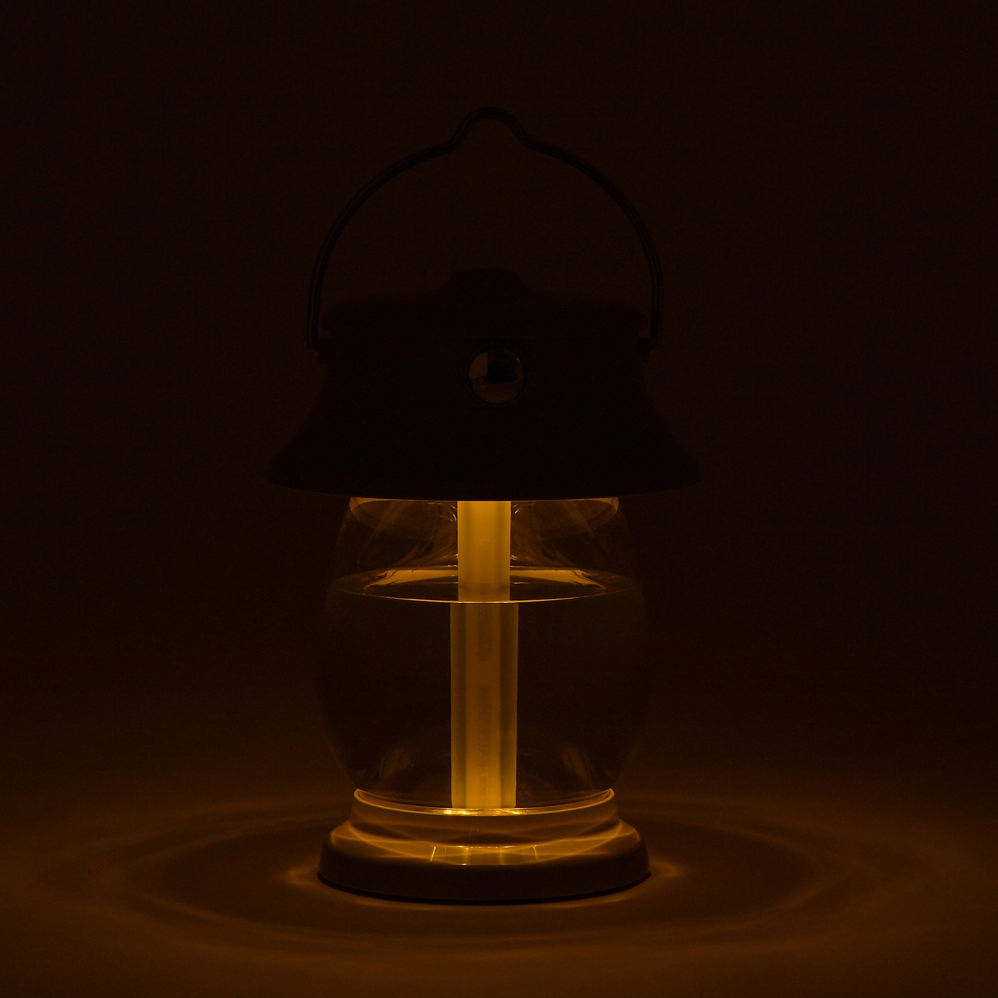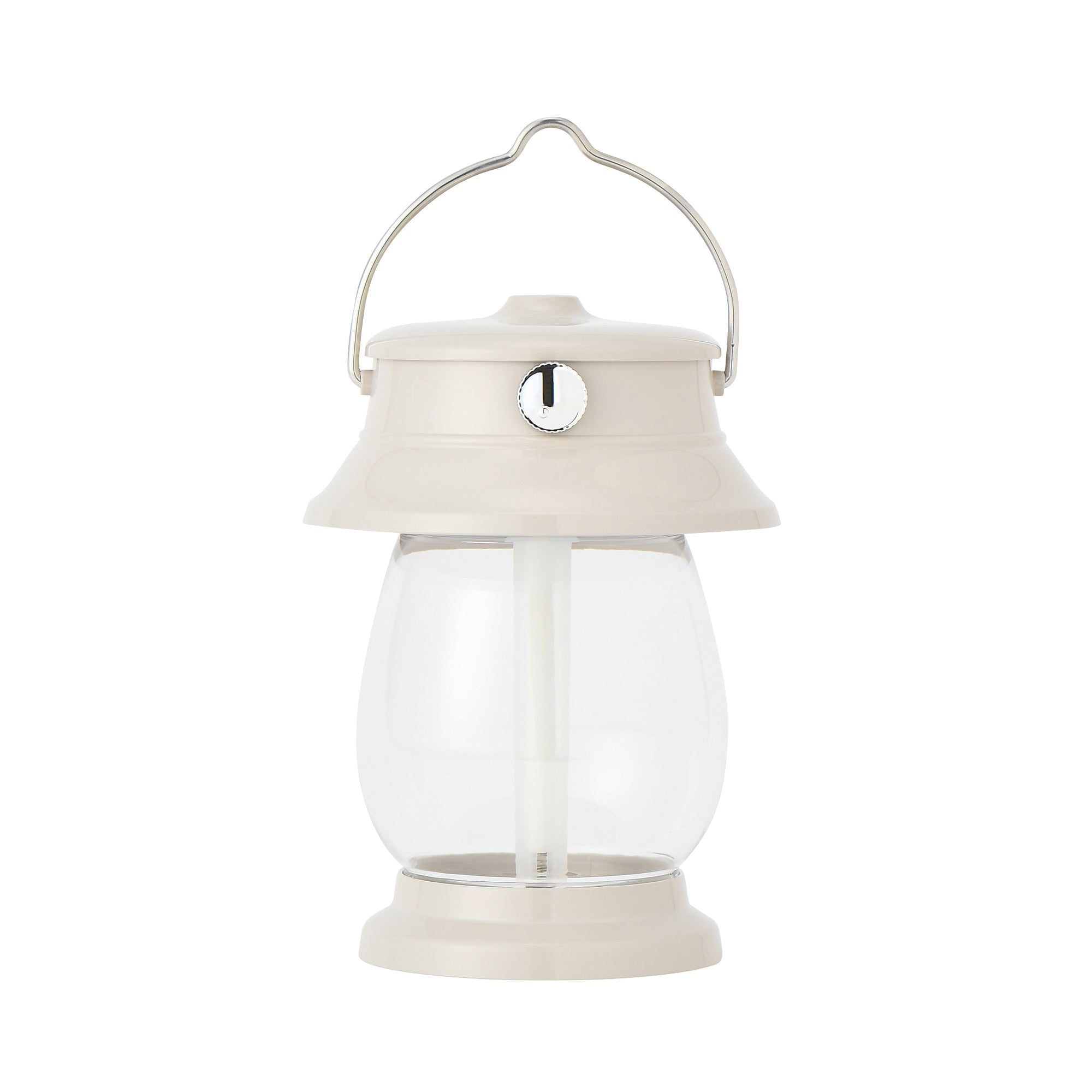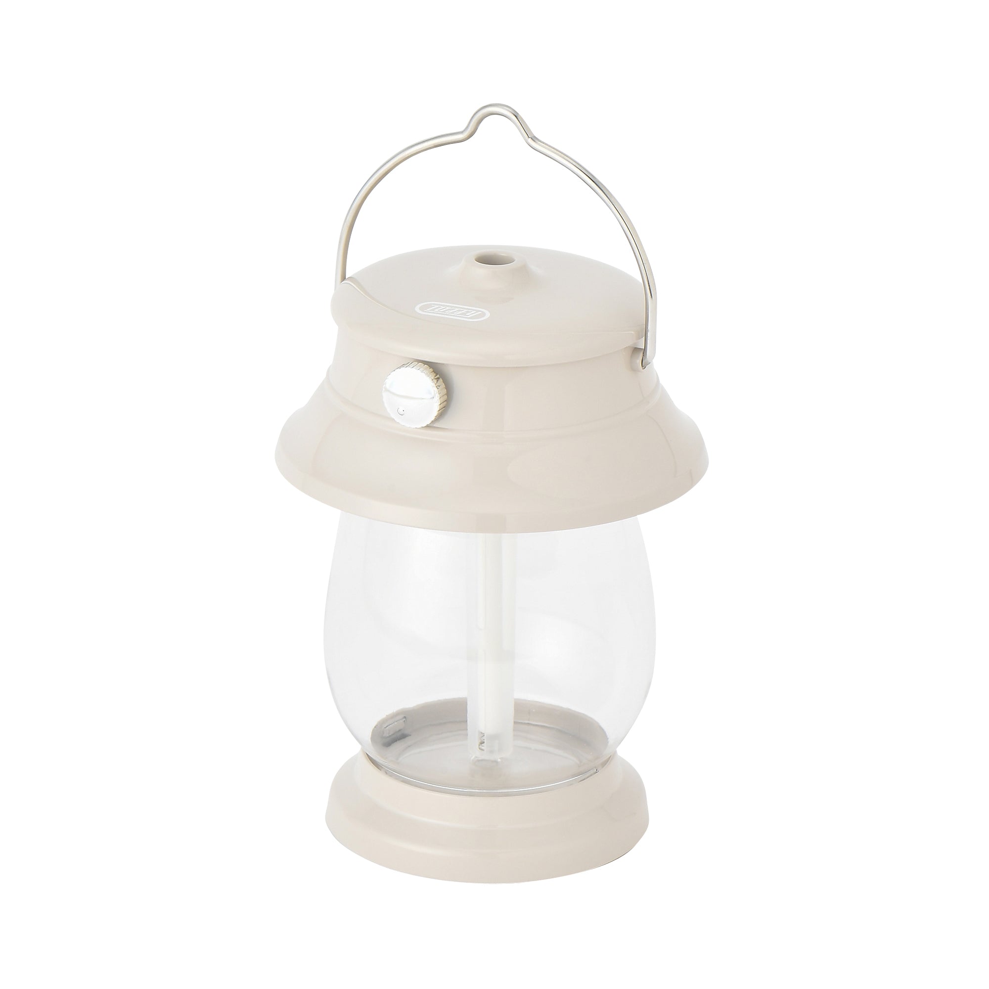 ランタン型のコードレス加湿器です。充電可能でコードなしで使用できるので、デスクやベッドサイドなどに置いて潤いを補充し、ライトを付ければランプとしても活躍してくれます。ライトはダイヤルを回して調光でき、加湿器を使用しないときもライトとしてお使いいただけます。