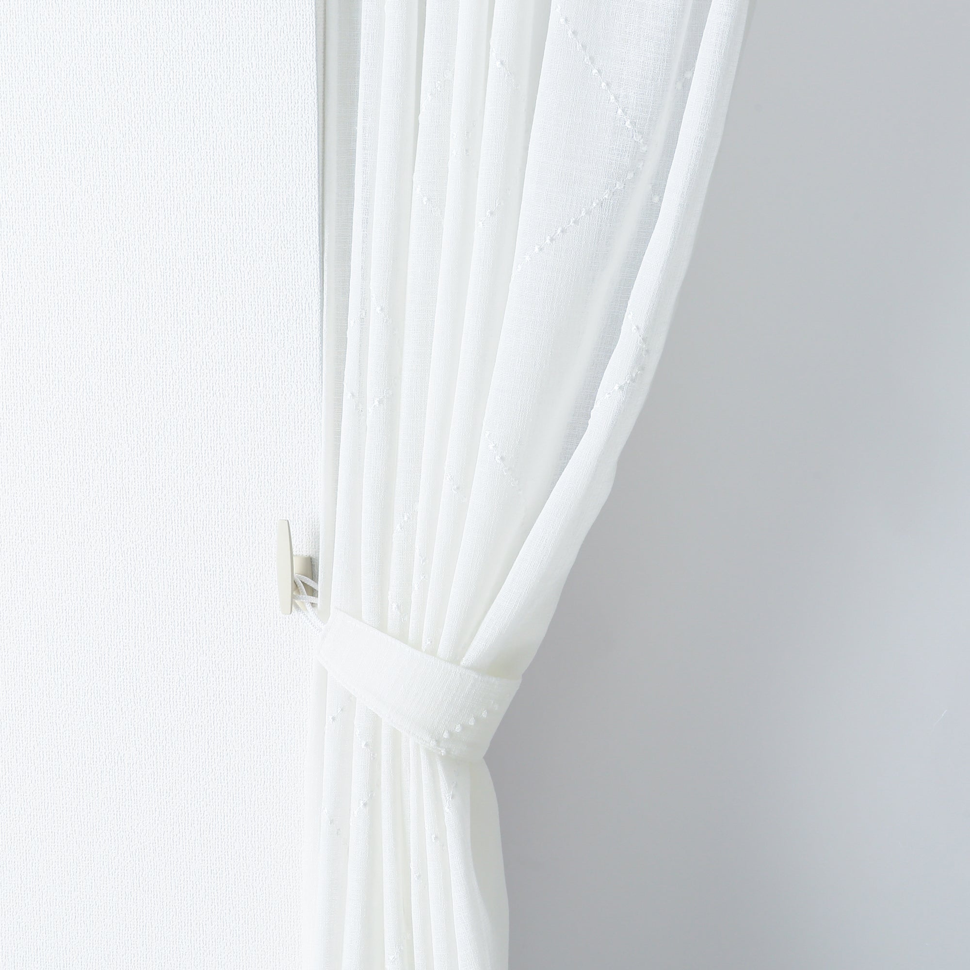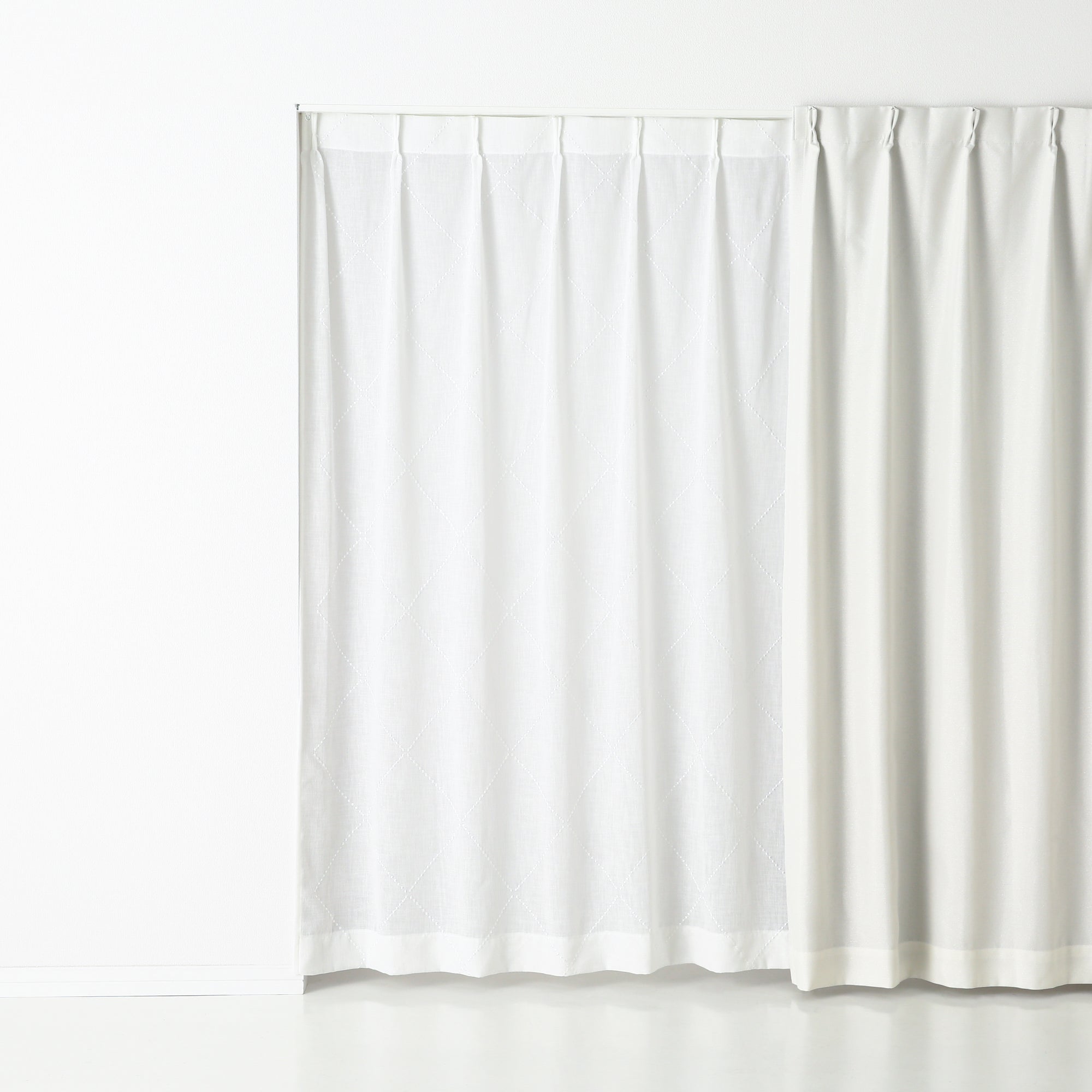 ナチュラルで明るい印象のレースカーテンです。 立体的に表現したドットが連なり、空間にさりげないリズムを生み出します。