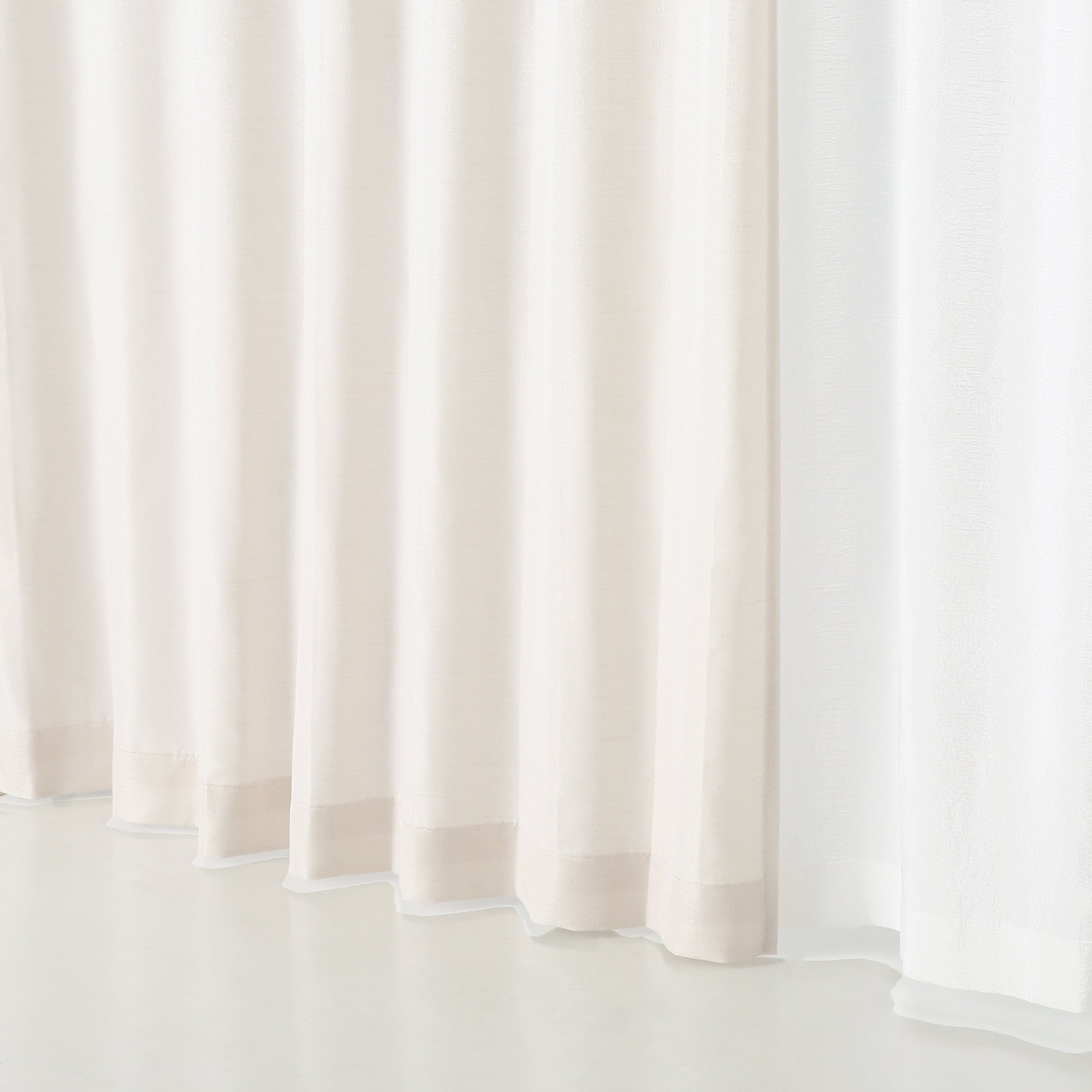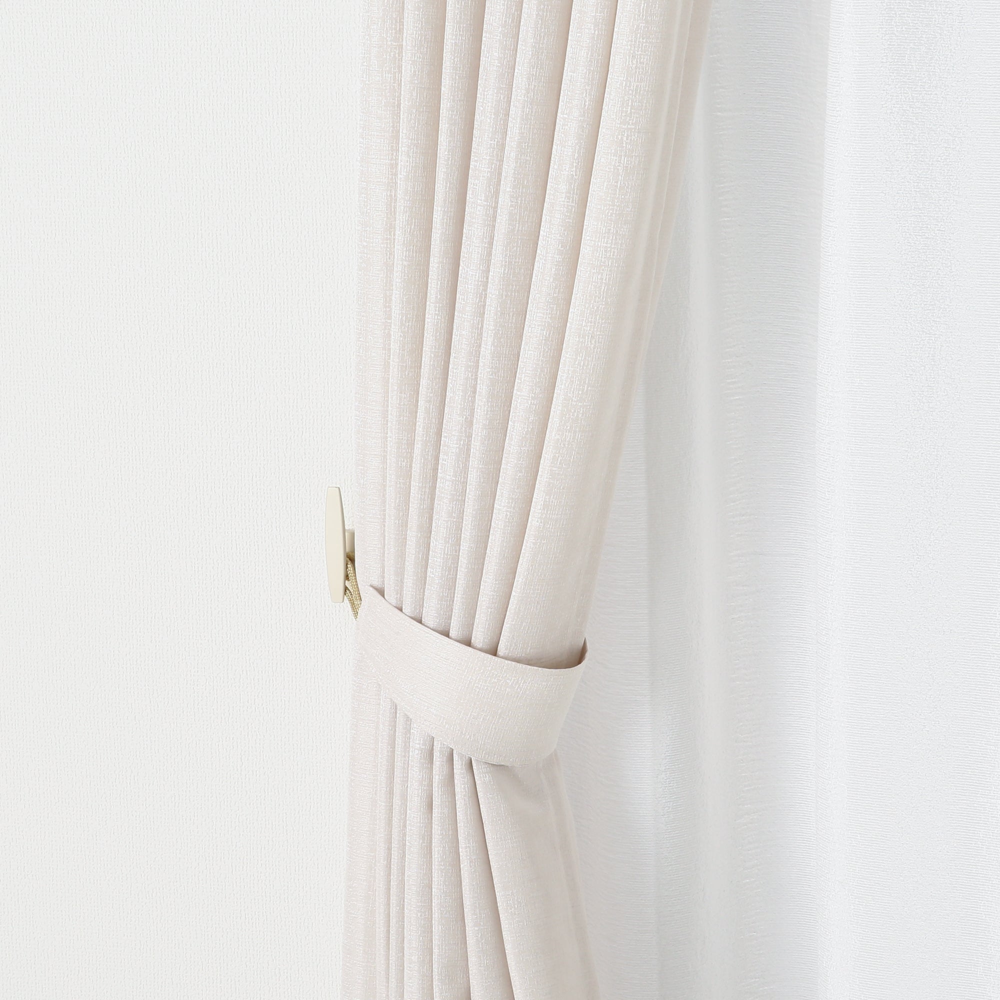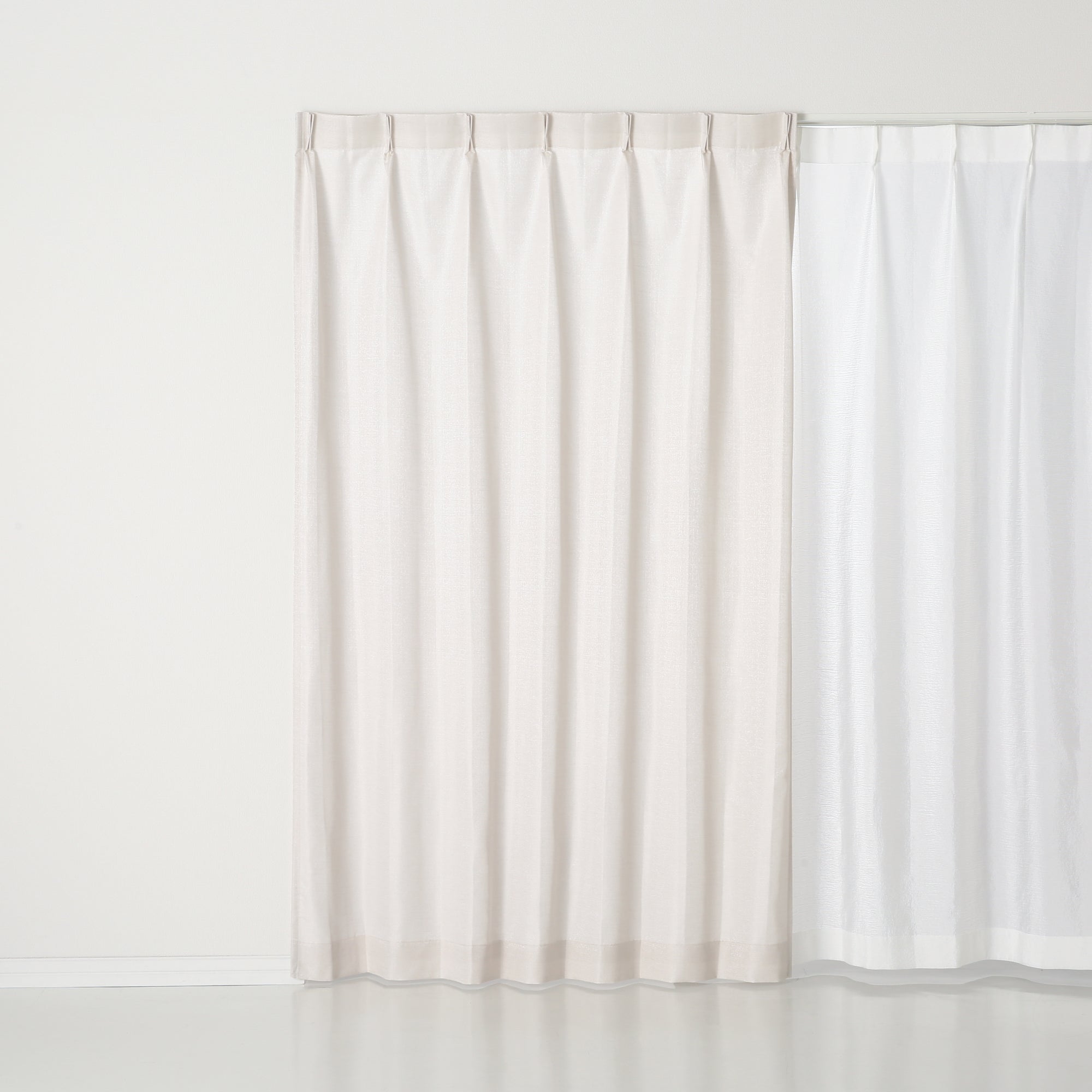 細かいテクスチャーがキラキラと輝く華やかな光沢のカーテンです。 優しい色味でお部屋を明るく上品にしてくれます。 いざという時に燃えにくい防炎機能も付いて安心です。 ※掲載画像はウェーブ加工を施しております。