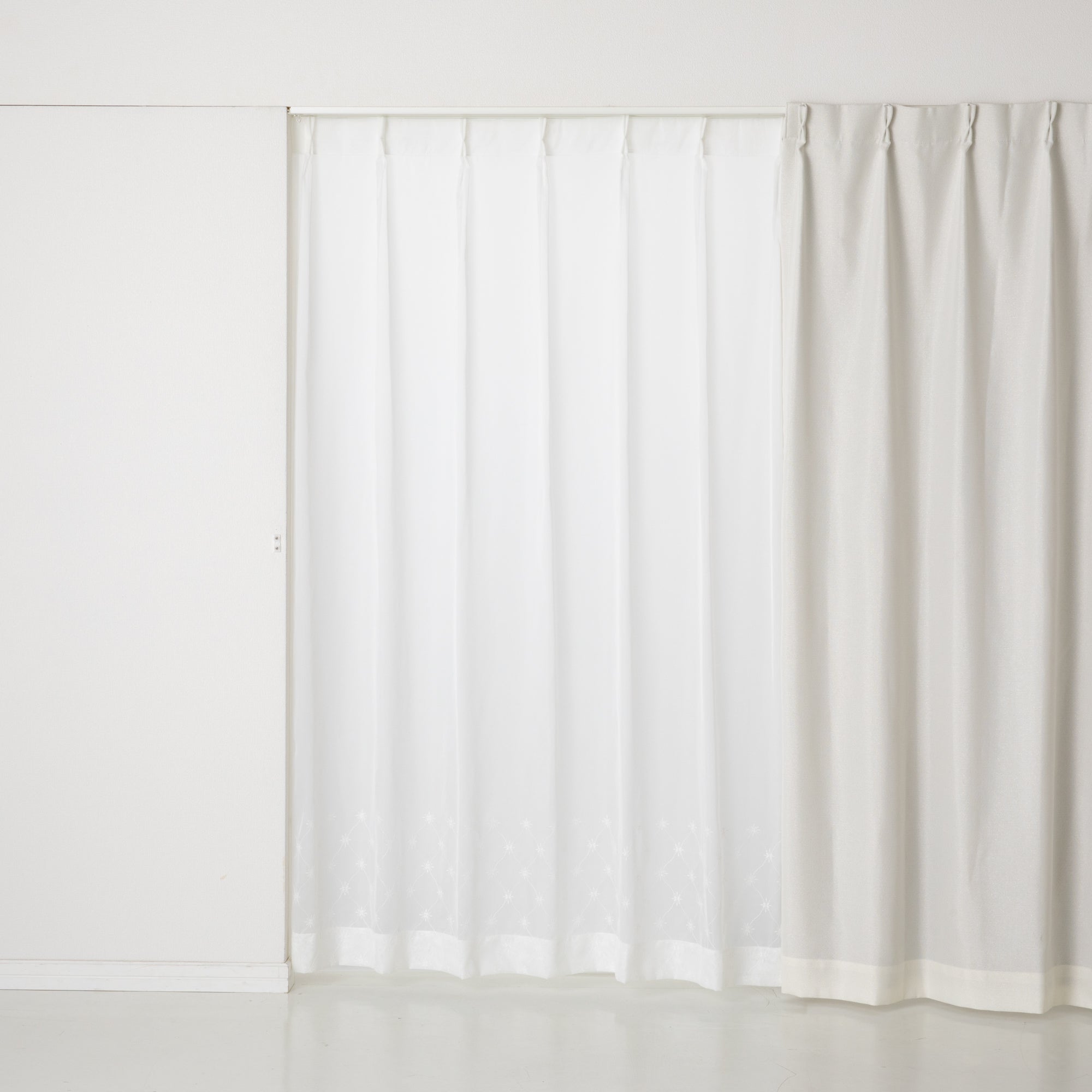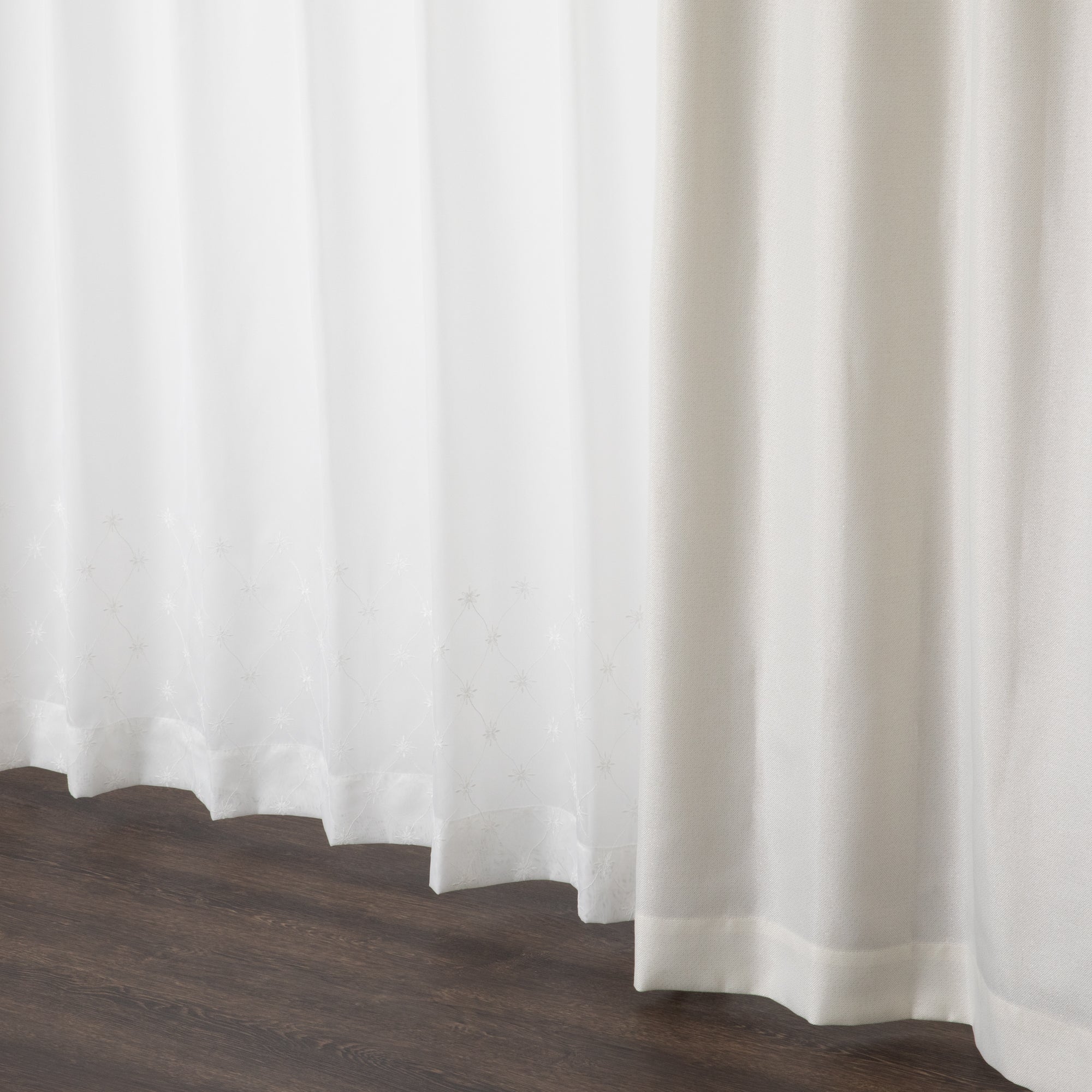 上部は無地、裾部分のみに花模様の刺繍を施したデザインレースです。 ※生地の下部を基準位置として裁断するため、ご注文頂く丈が短い場合は上部無地になりませんのでご了承ください。