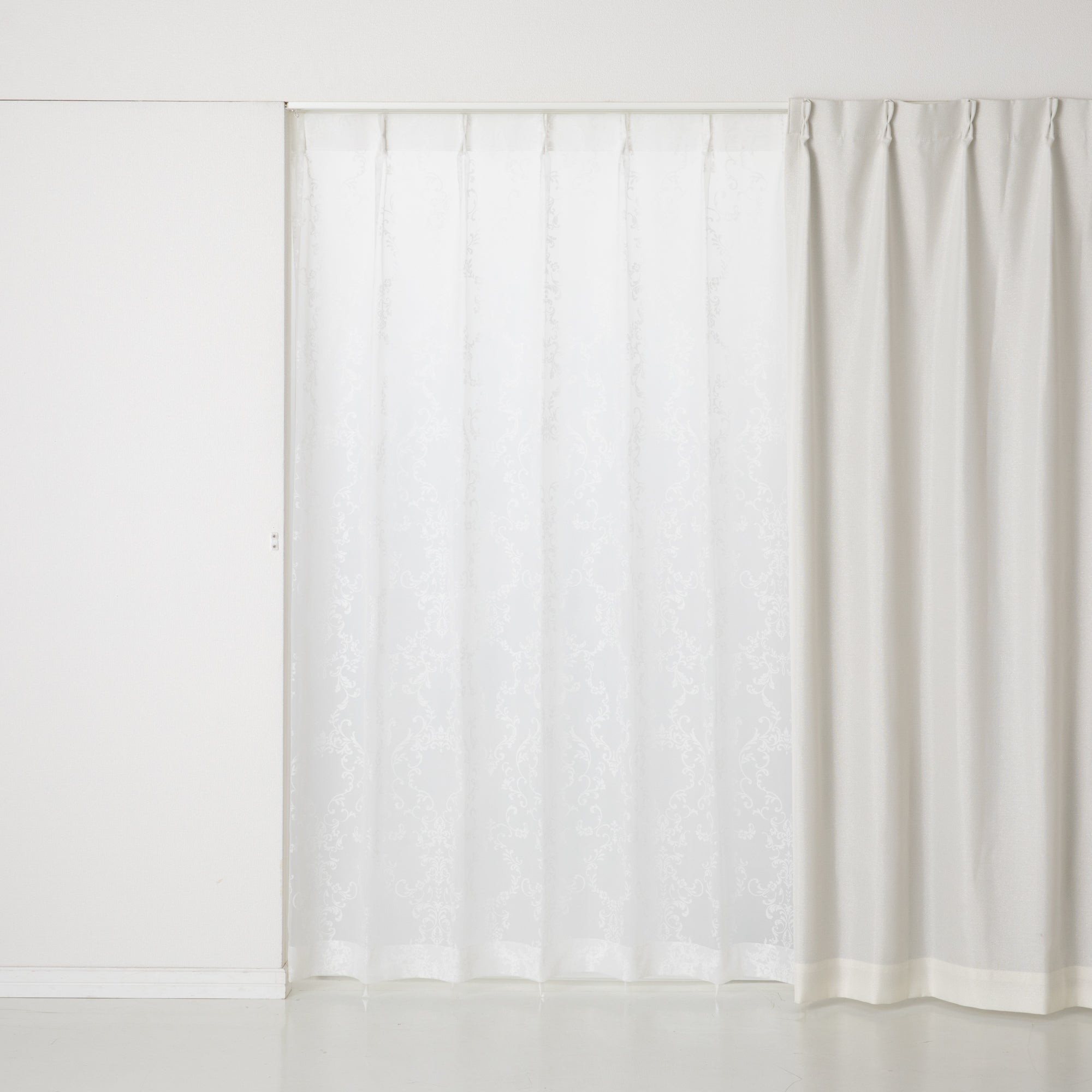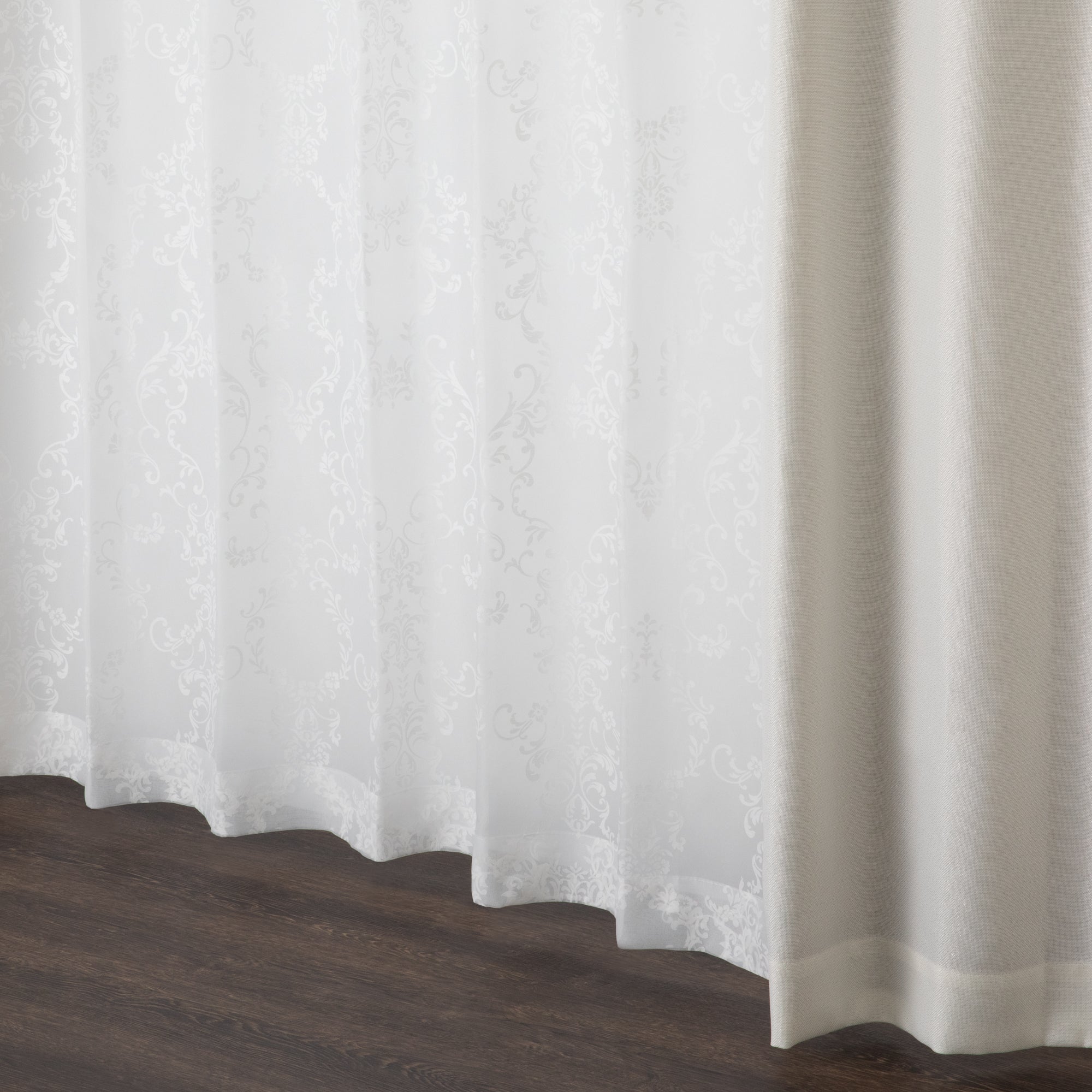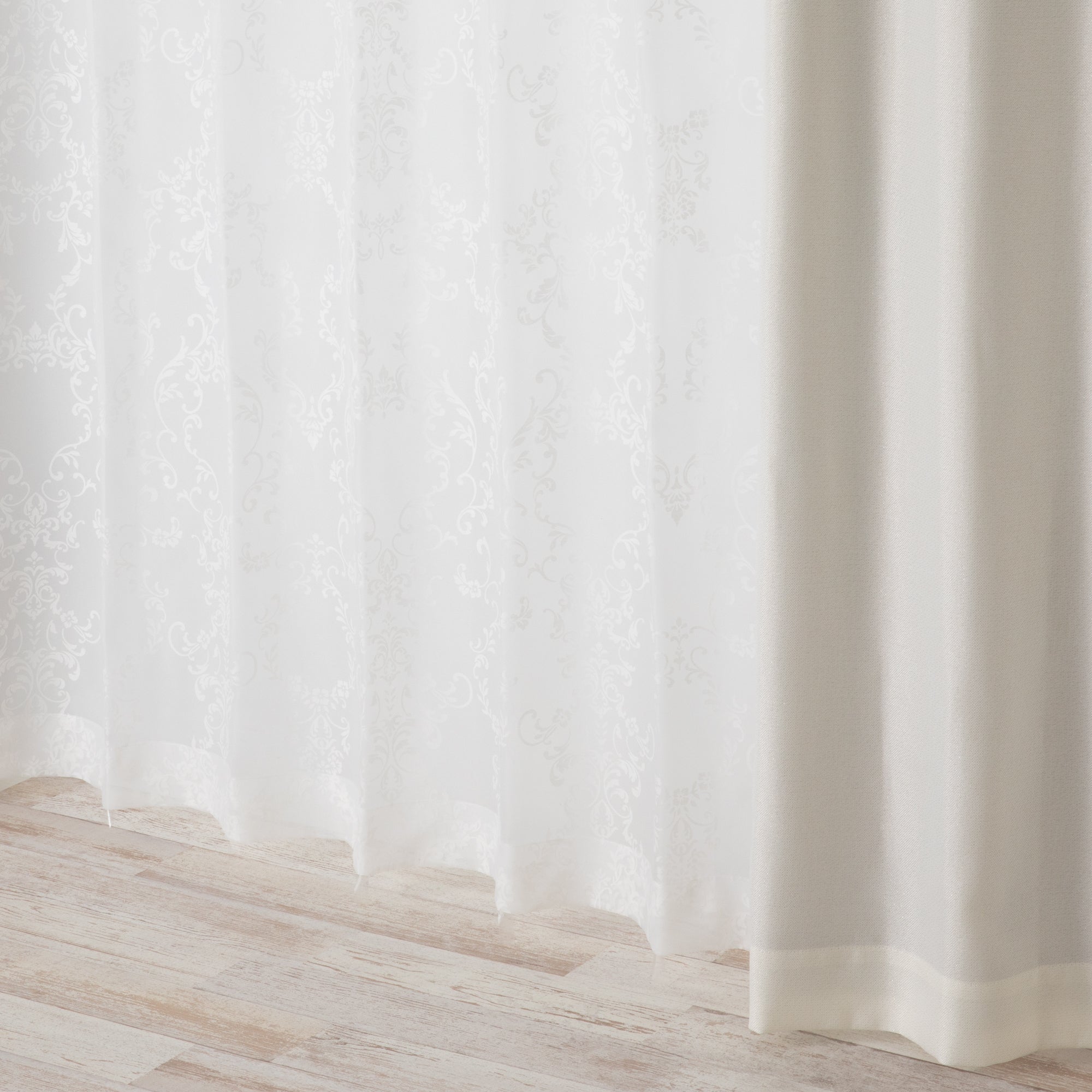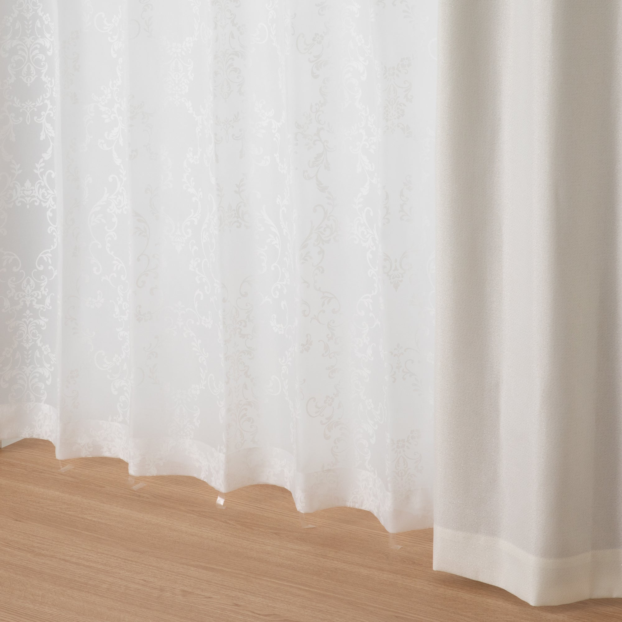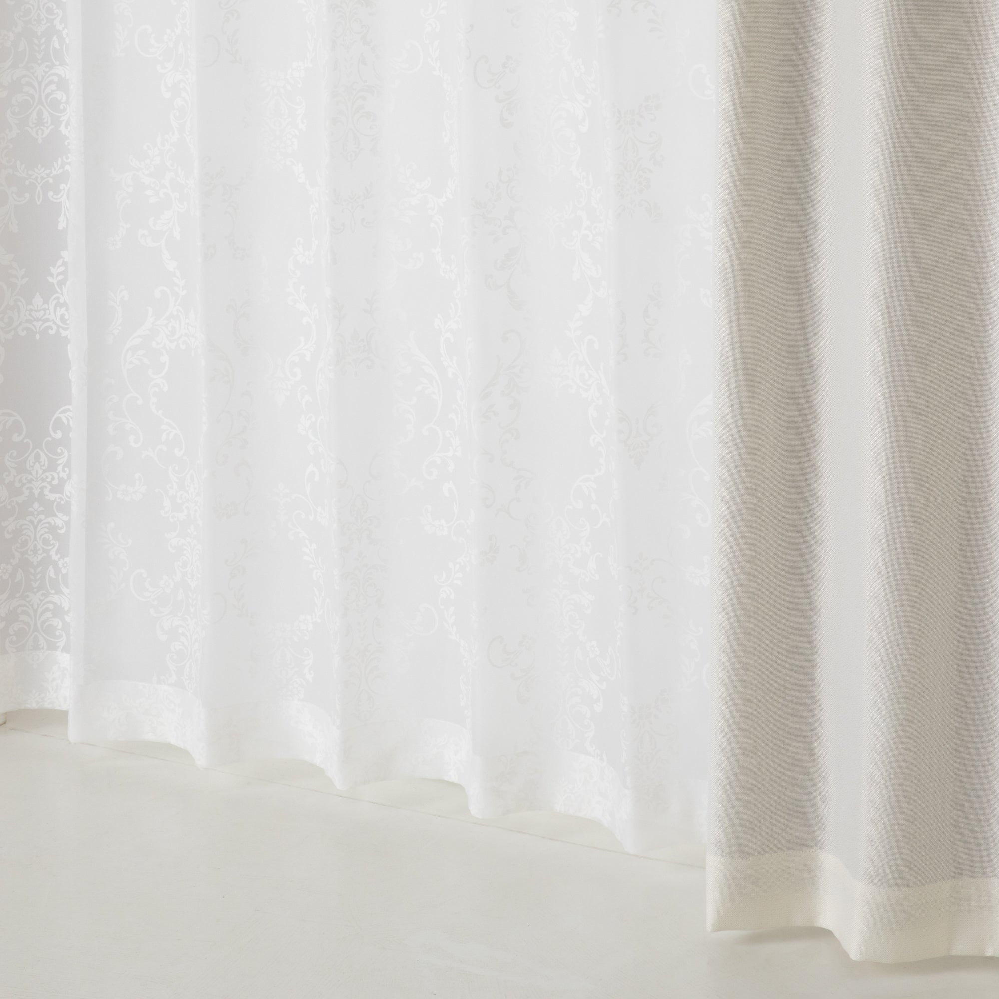 オーナメント柄をオパールプリントで施したレースカーテンです。 印象的なオーナメント柄は無地ライクなドレープとの相性抜群です。