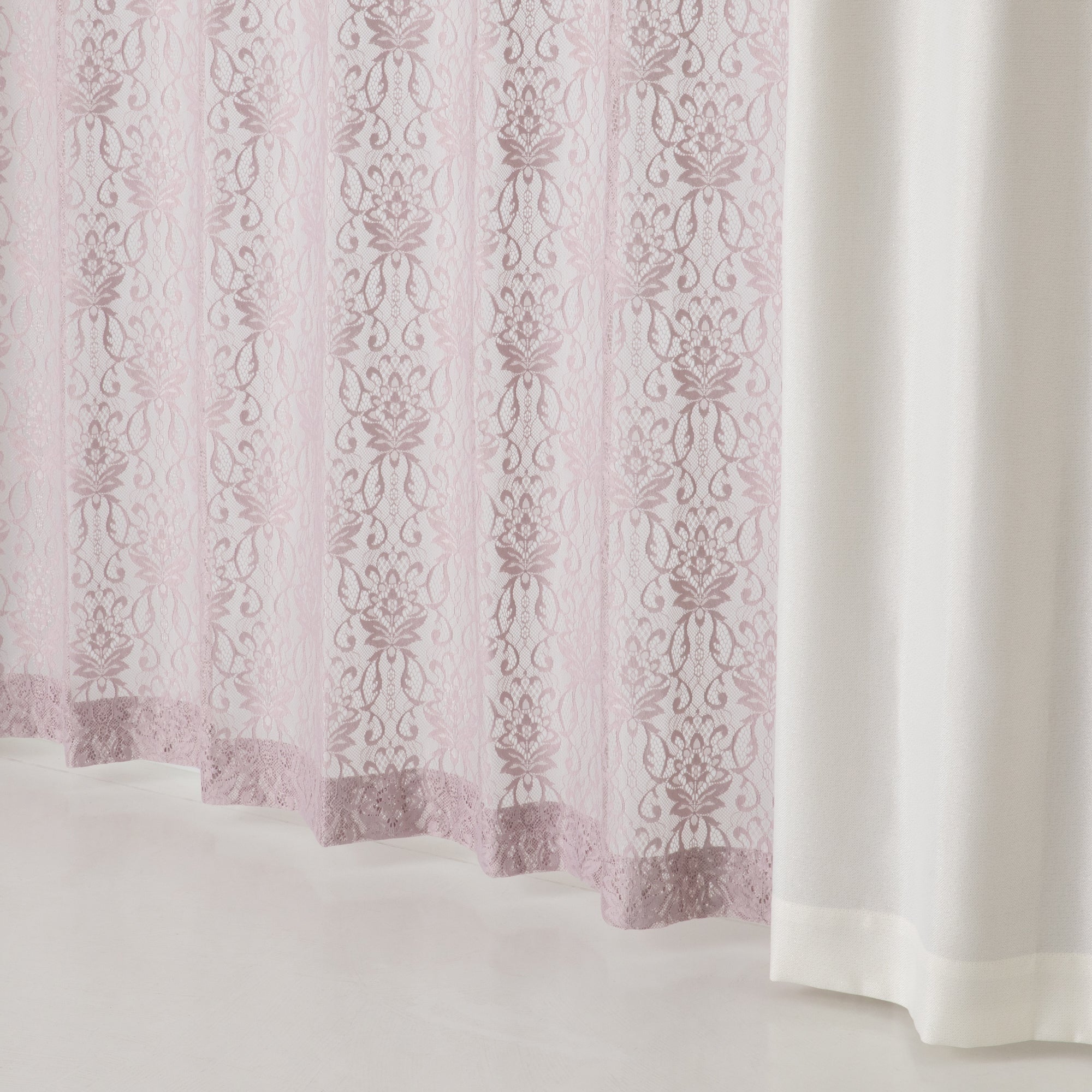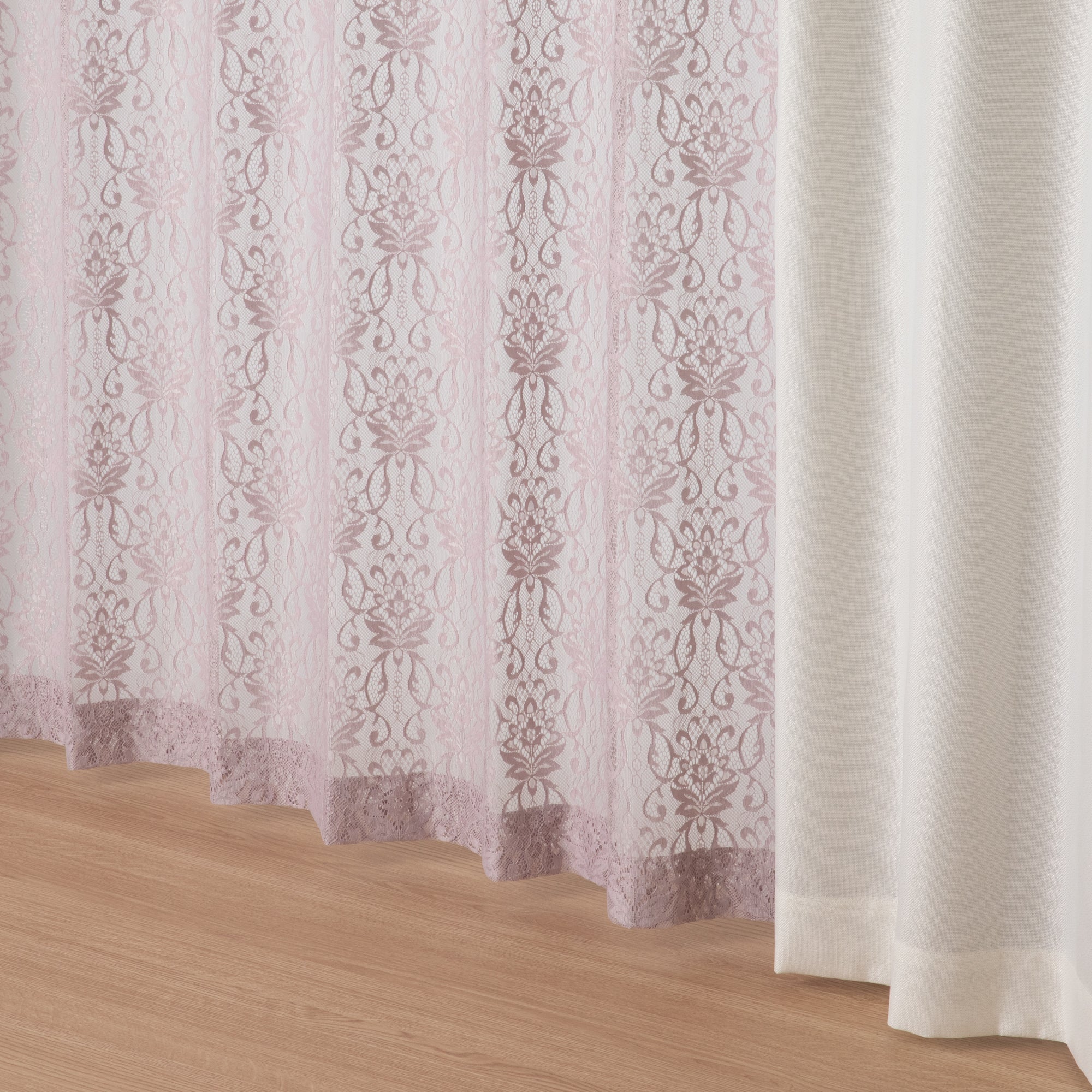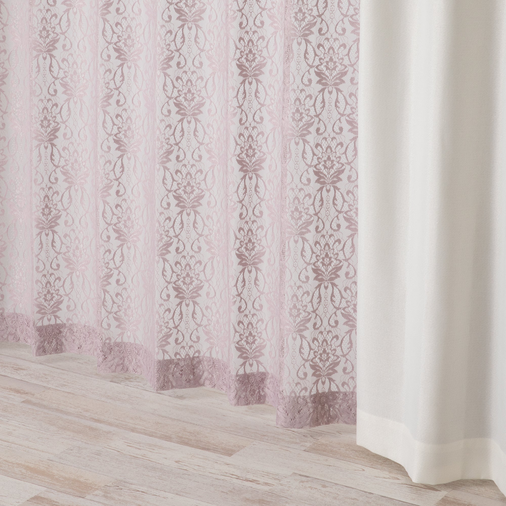お花のような幾何学模様が華やかなレースカーテンです。 スイートなコーディネートにピッタリのデザインです。
