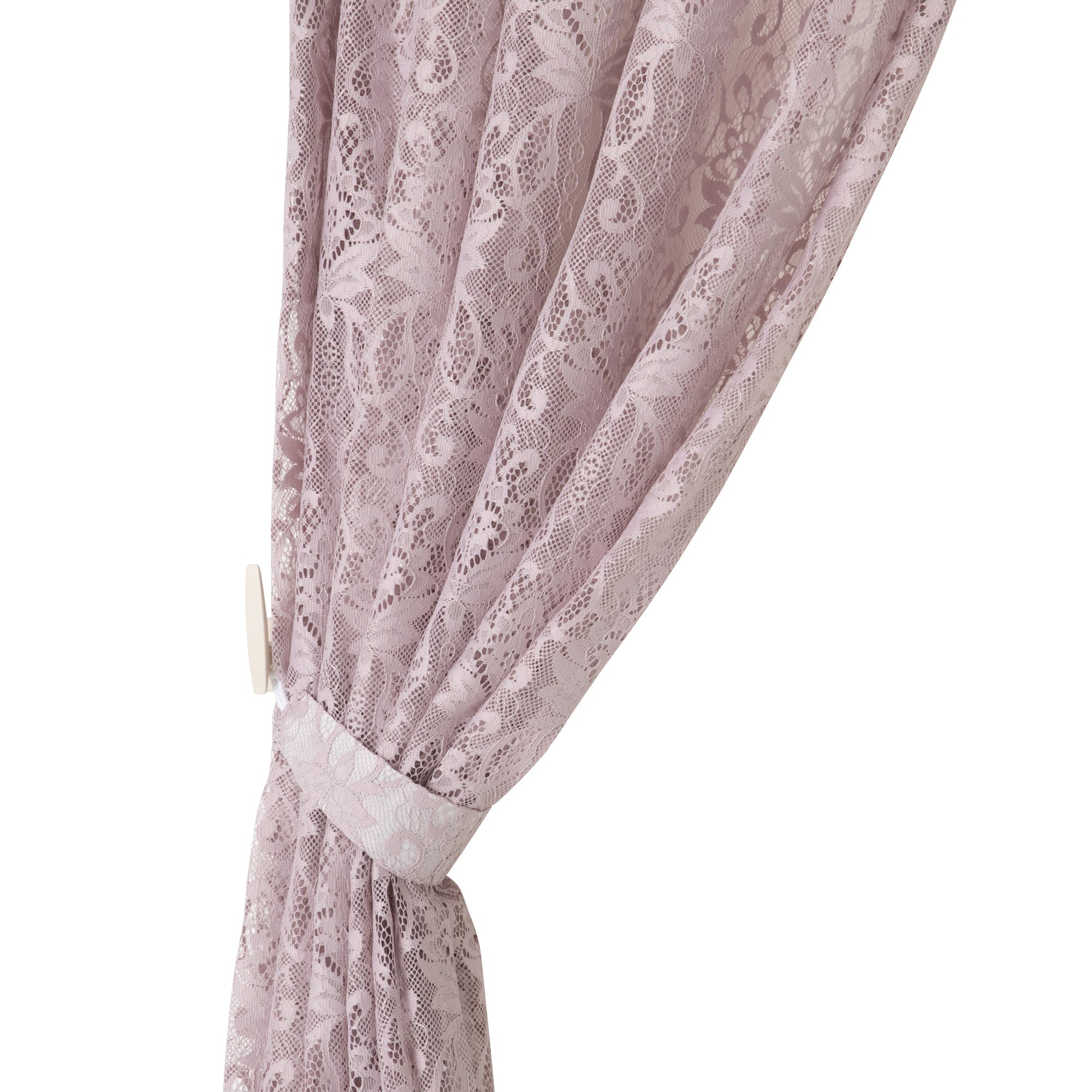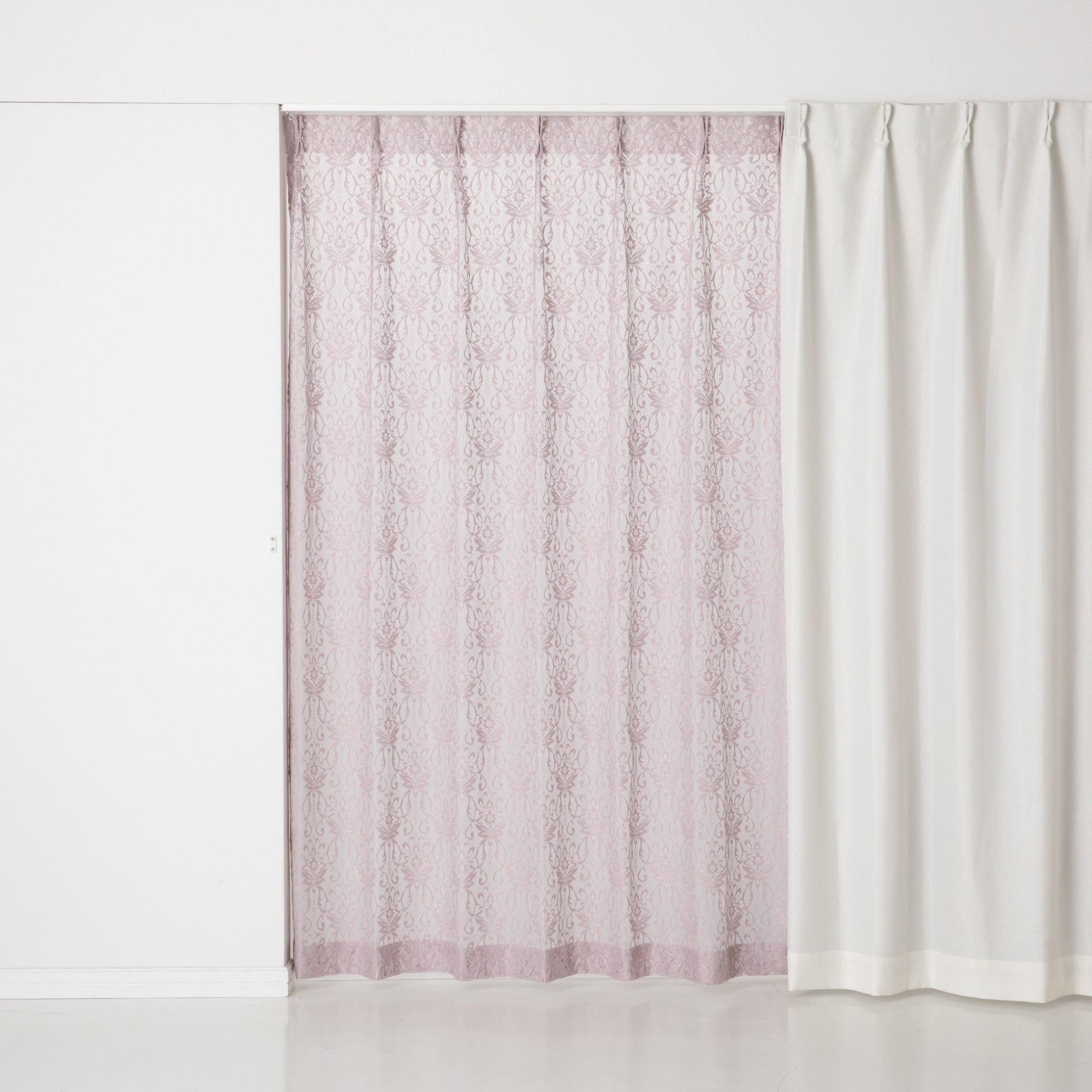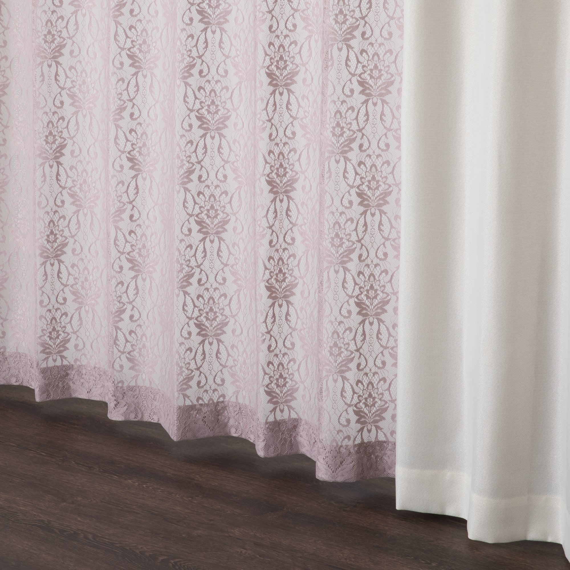 お花のような幾何学模様が華やかなレースカーテンです。 スイートなコーディネートにピッタリのデザインです。