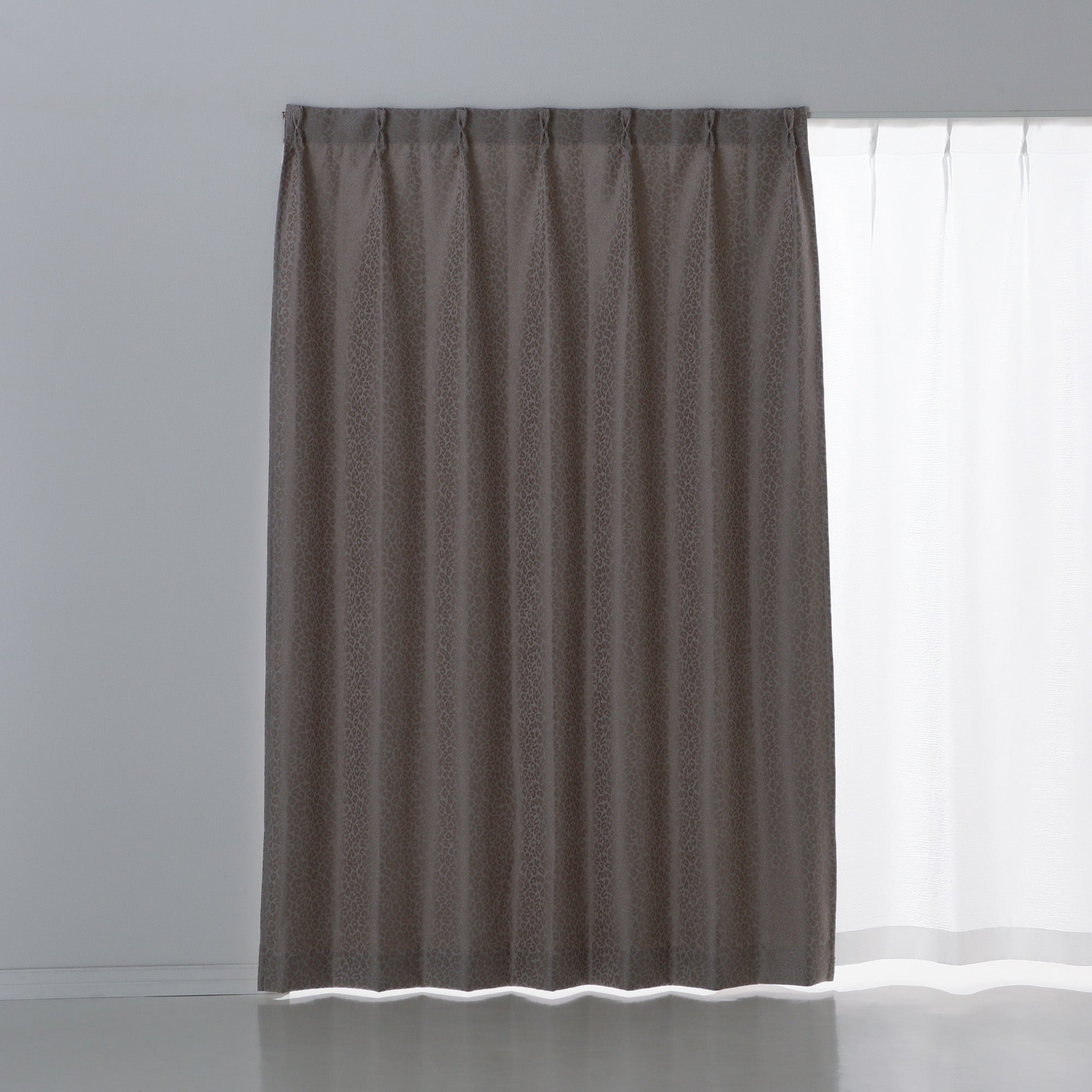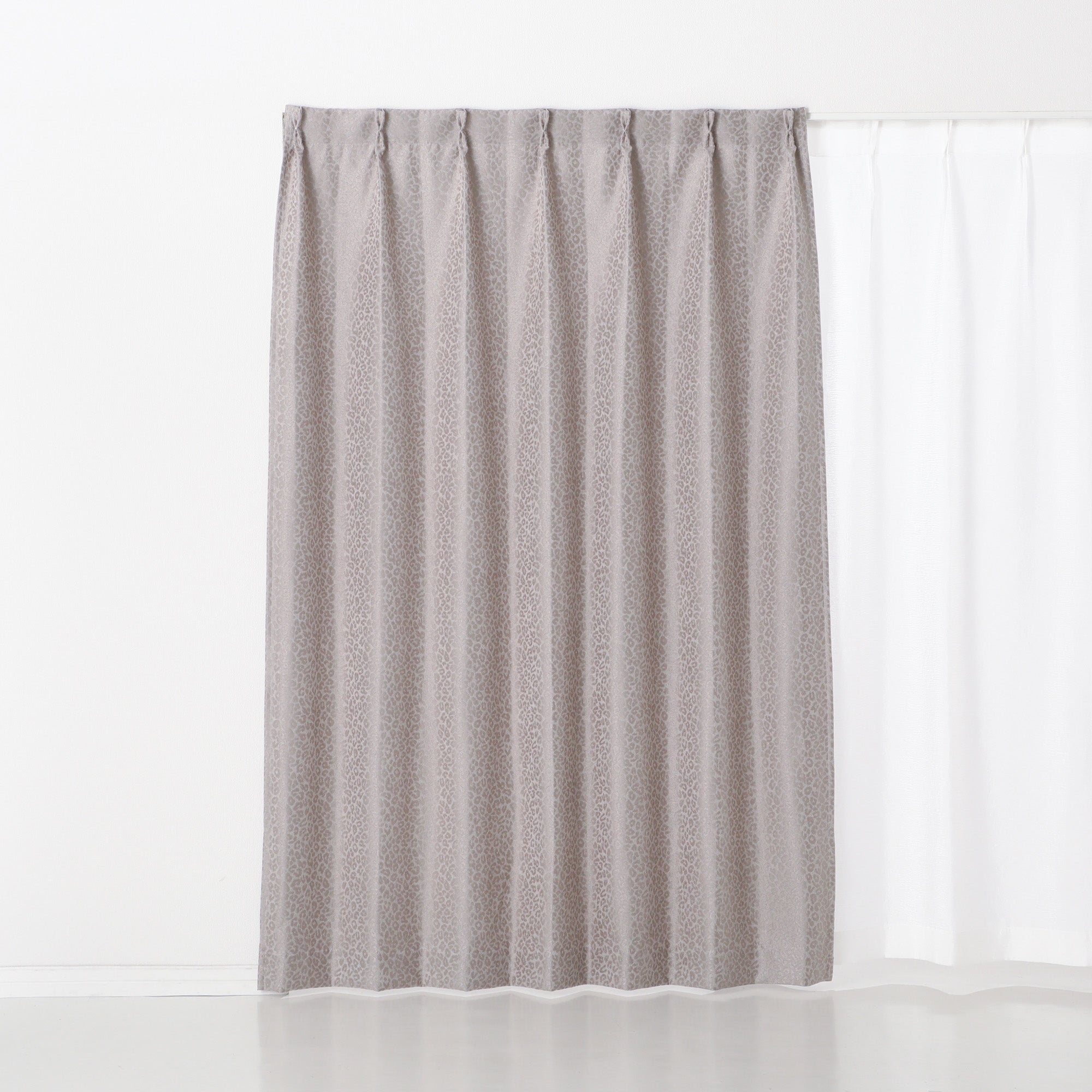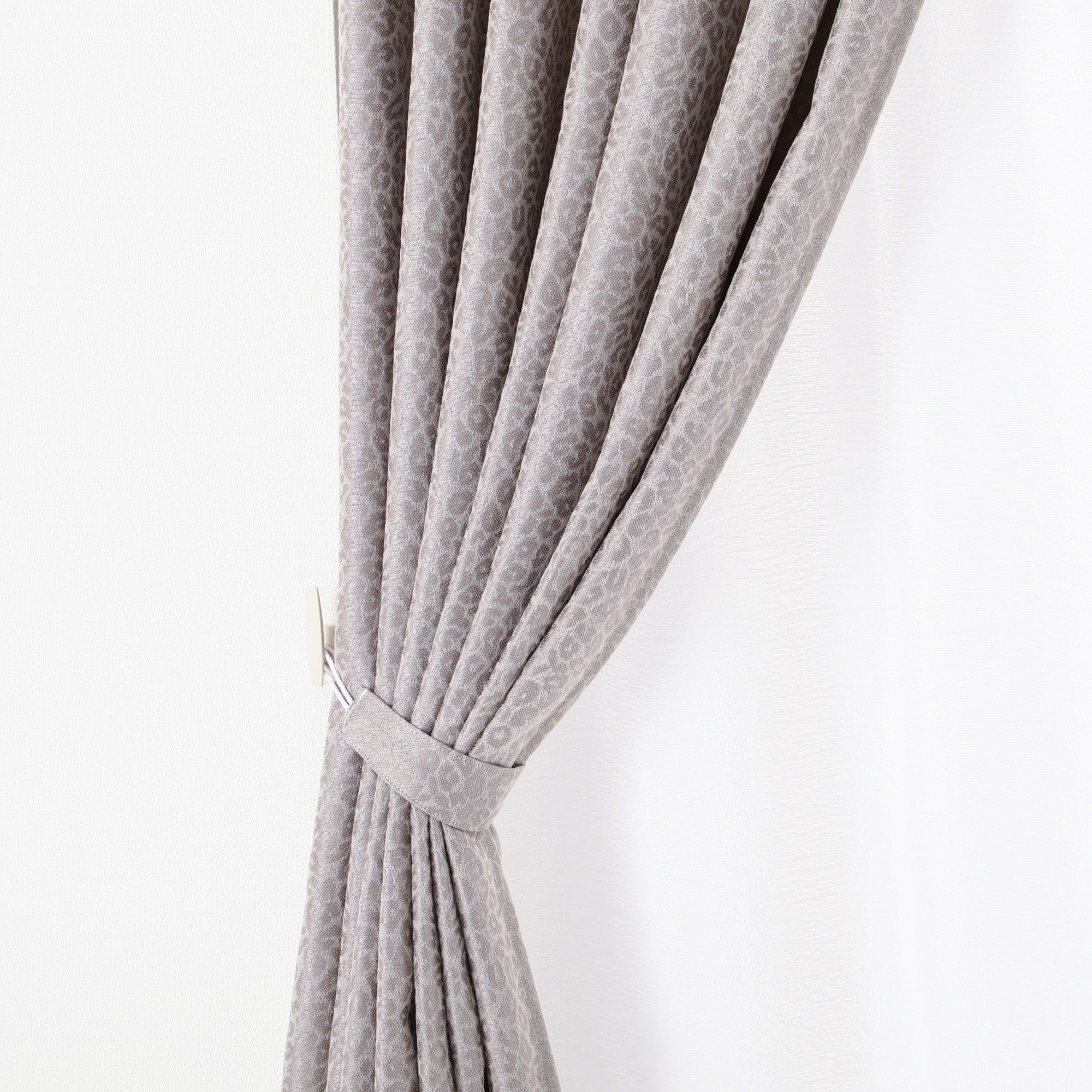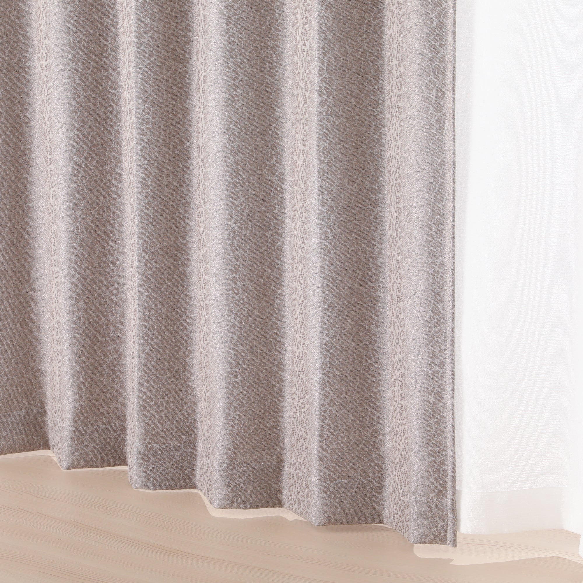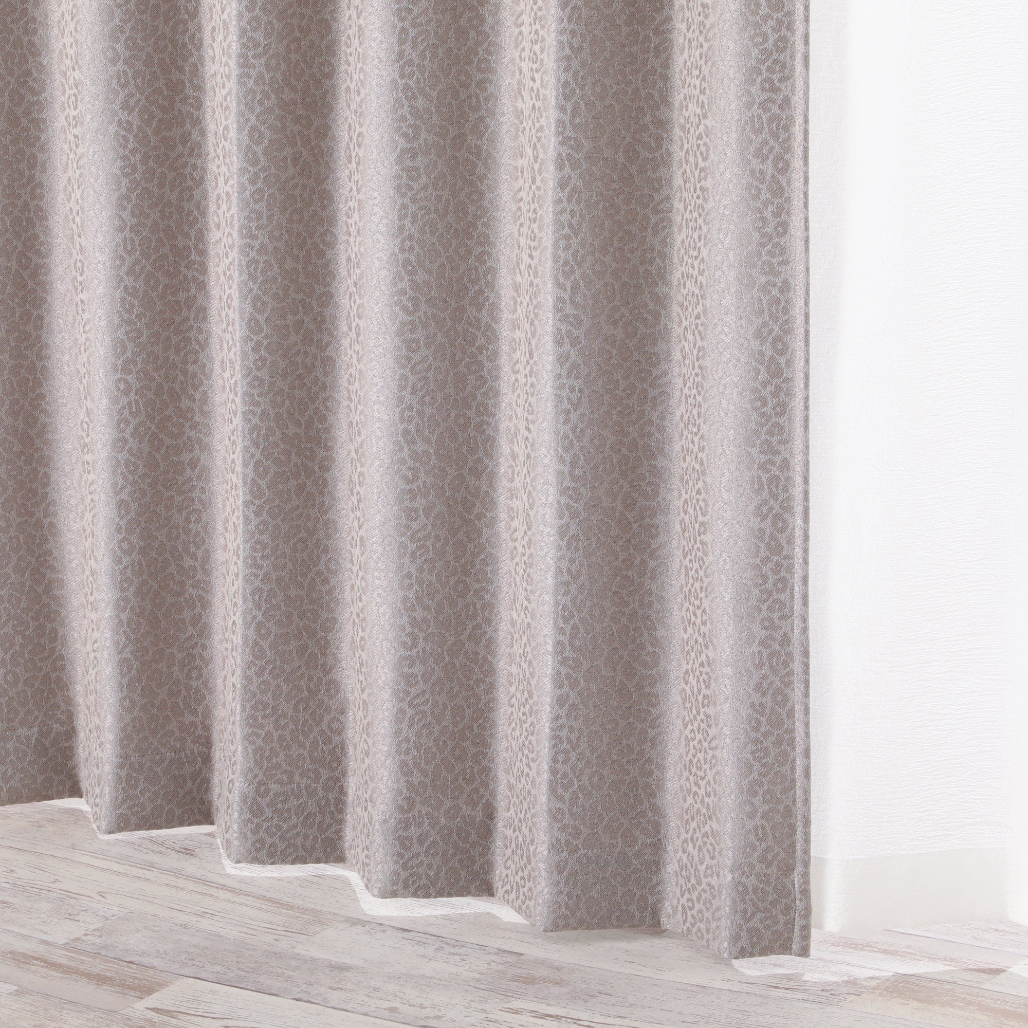 トレンドのアニマル柄のドレープカーテンです。お部屋側がレオパード柄になるので、インテリアのスパイスとして取り入れるのがおすすめです。遮光機能付きの贅沢なカーテンです。