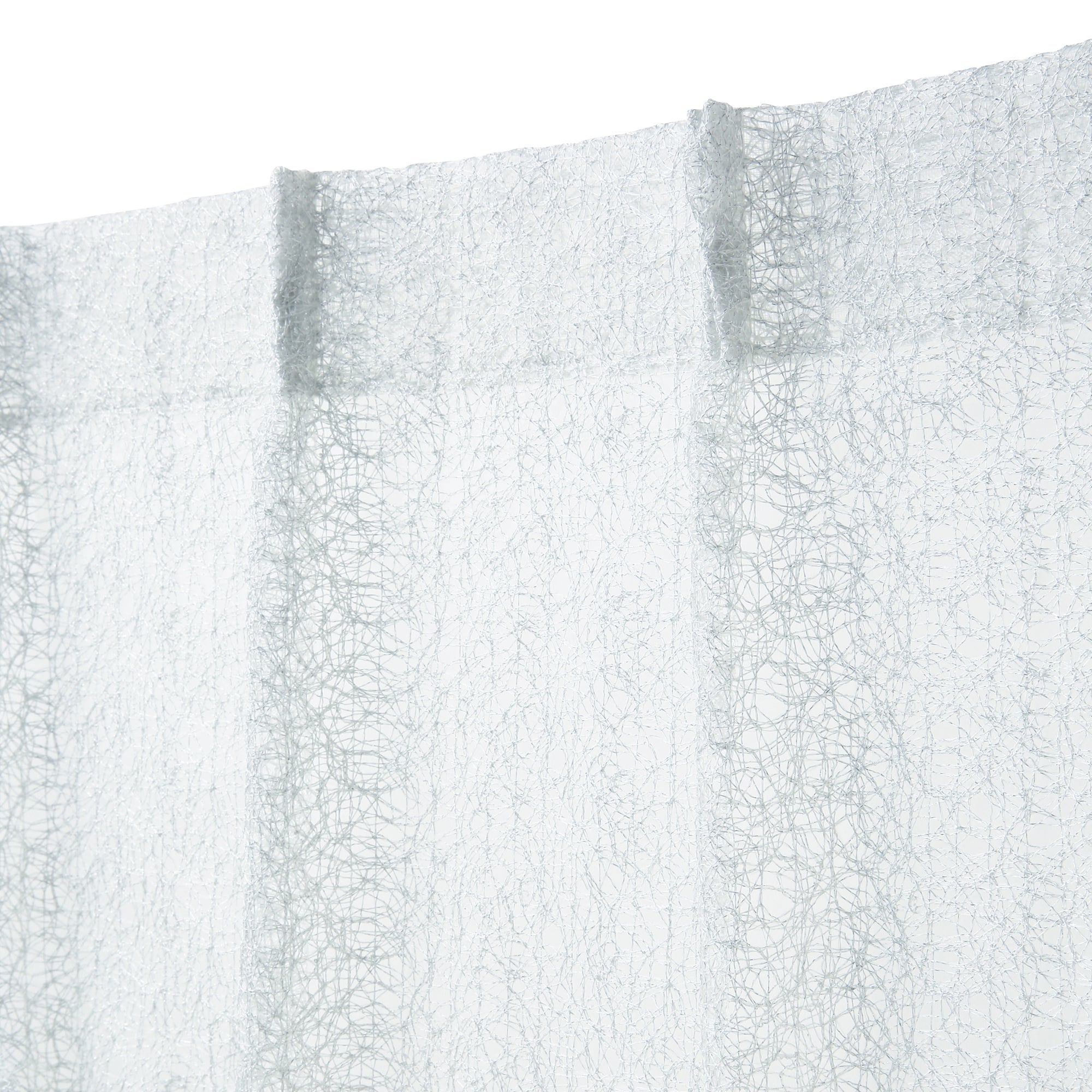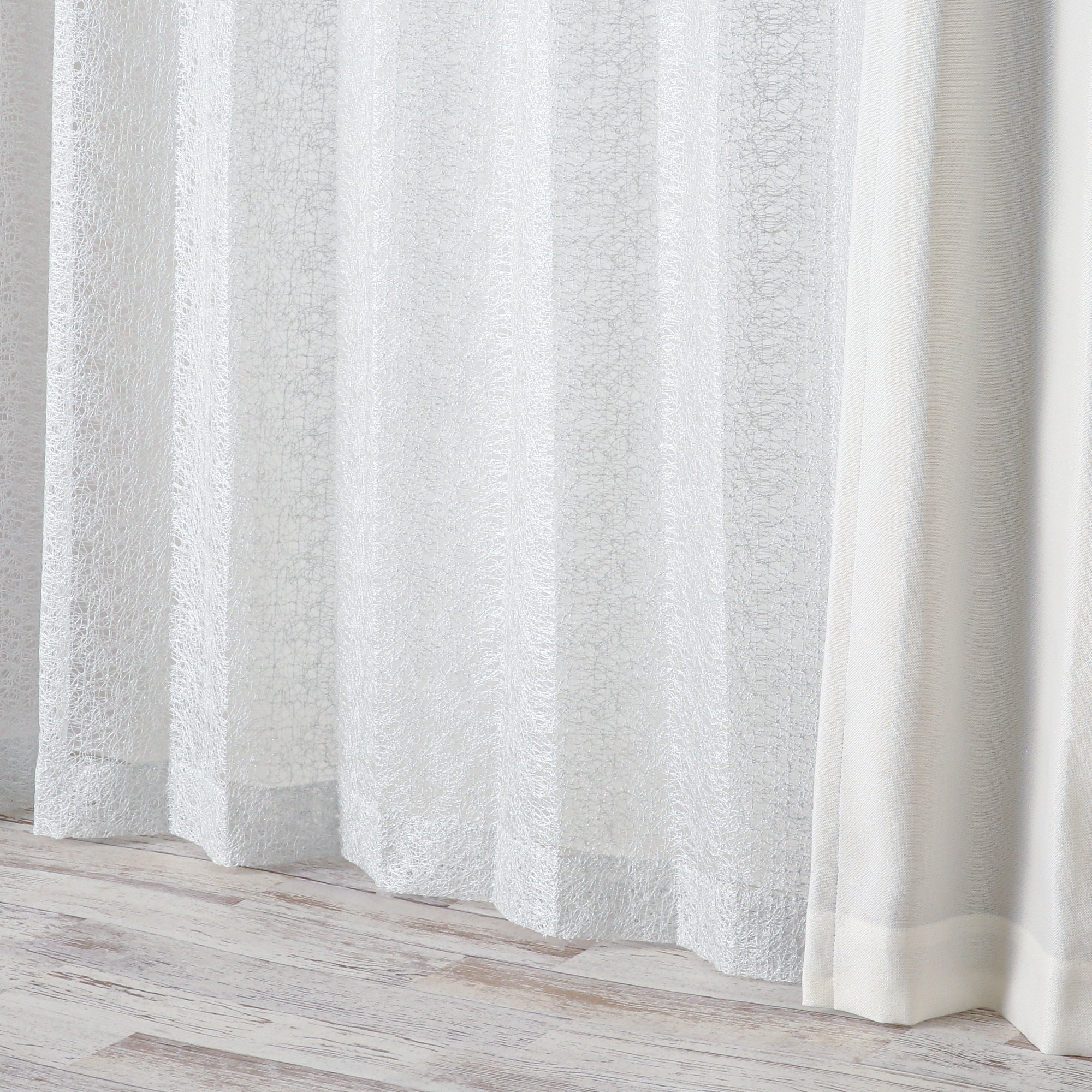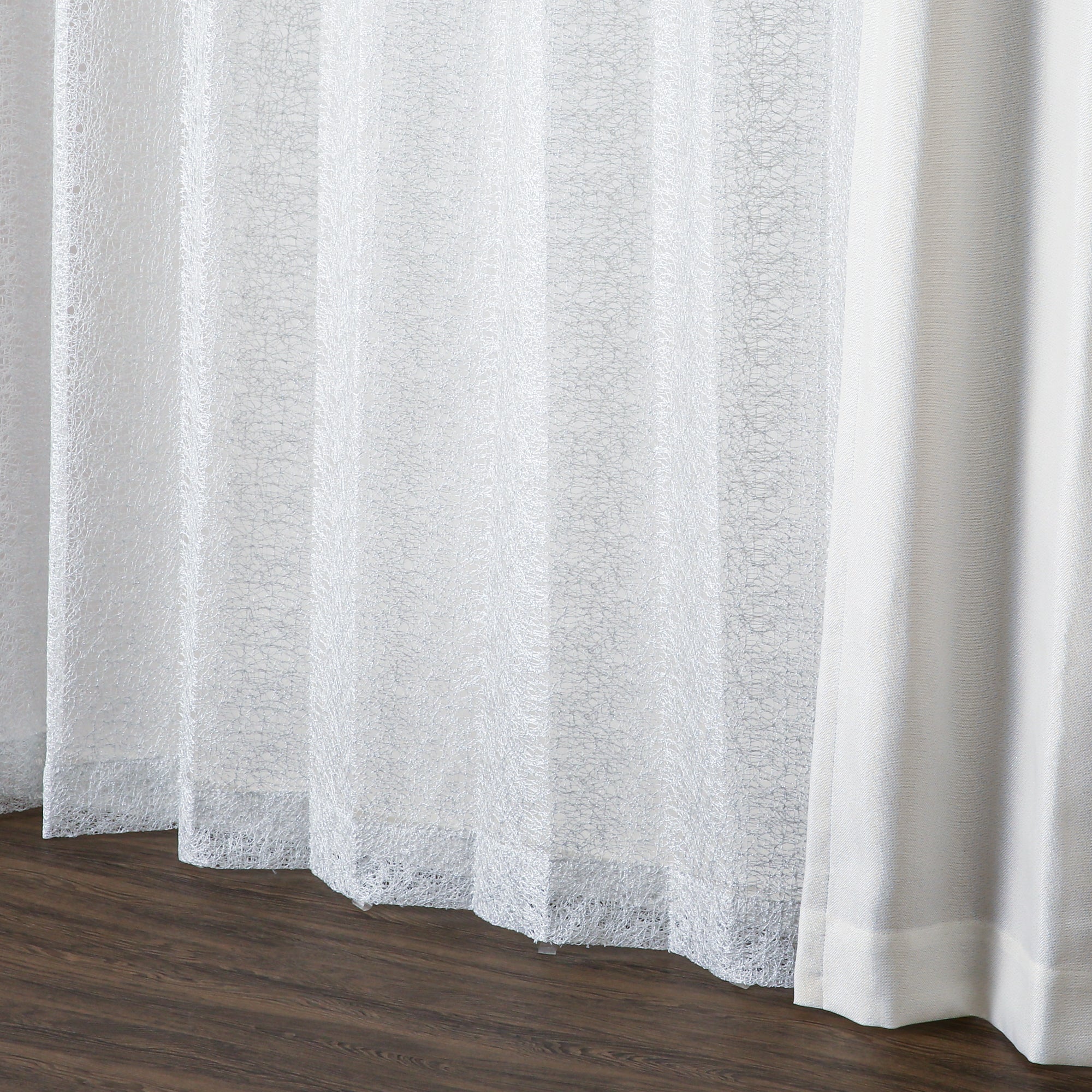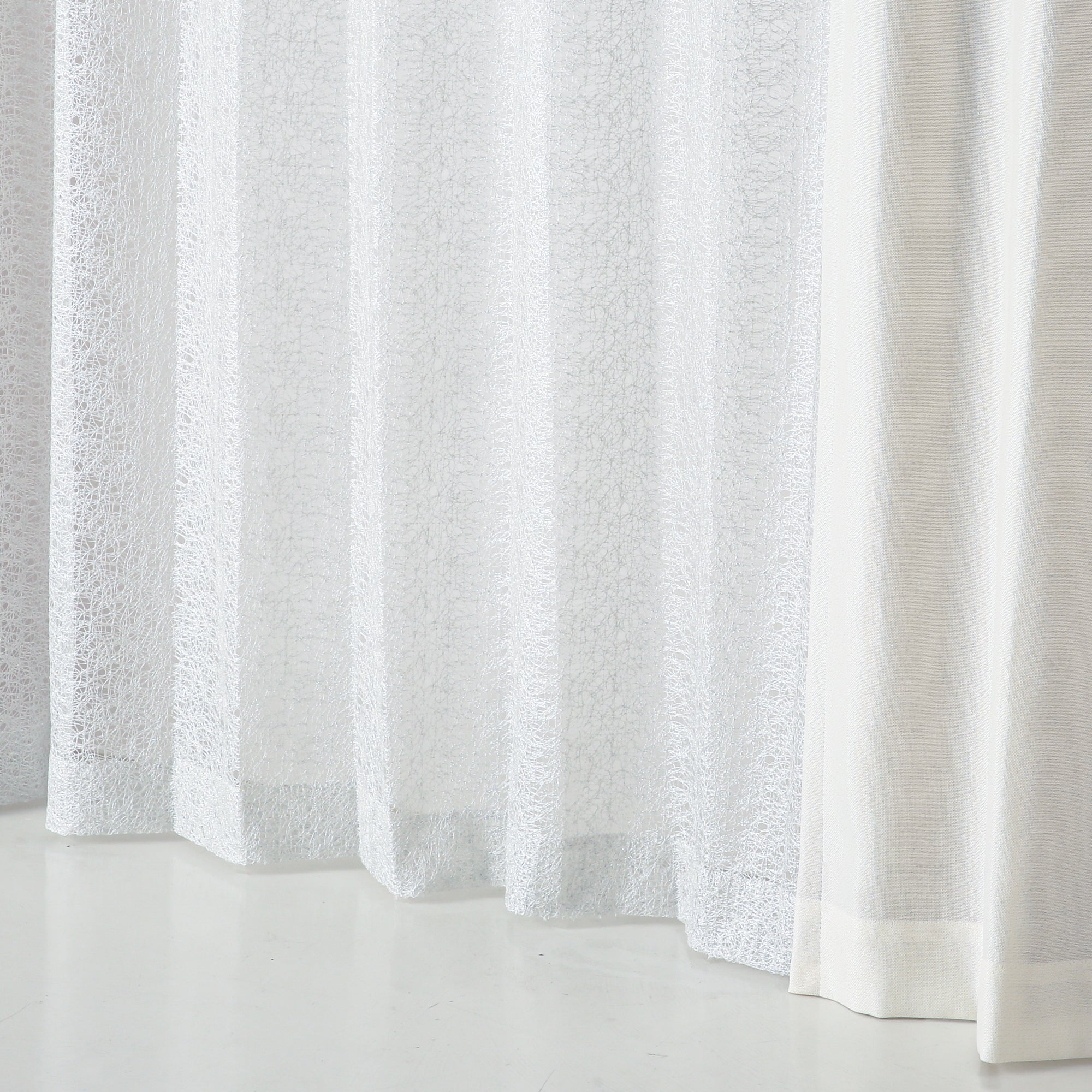 モールのように重ね合わせた糸が独特のテクスチャー感のレースカーテンです。 シンプルなシルバーのカラーは淡い色とも濃い色とも相性がよく、組み合わせるカーテンによって印象が変わるのでコーディネートをお楽しみいただけます。 洋室にはもちろん、和室にもあうデザインで、モダンなインテリアのコーディネートにおすすめです。
