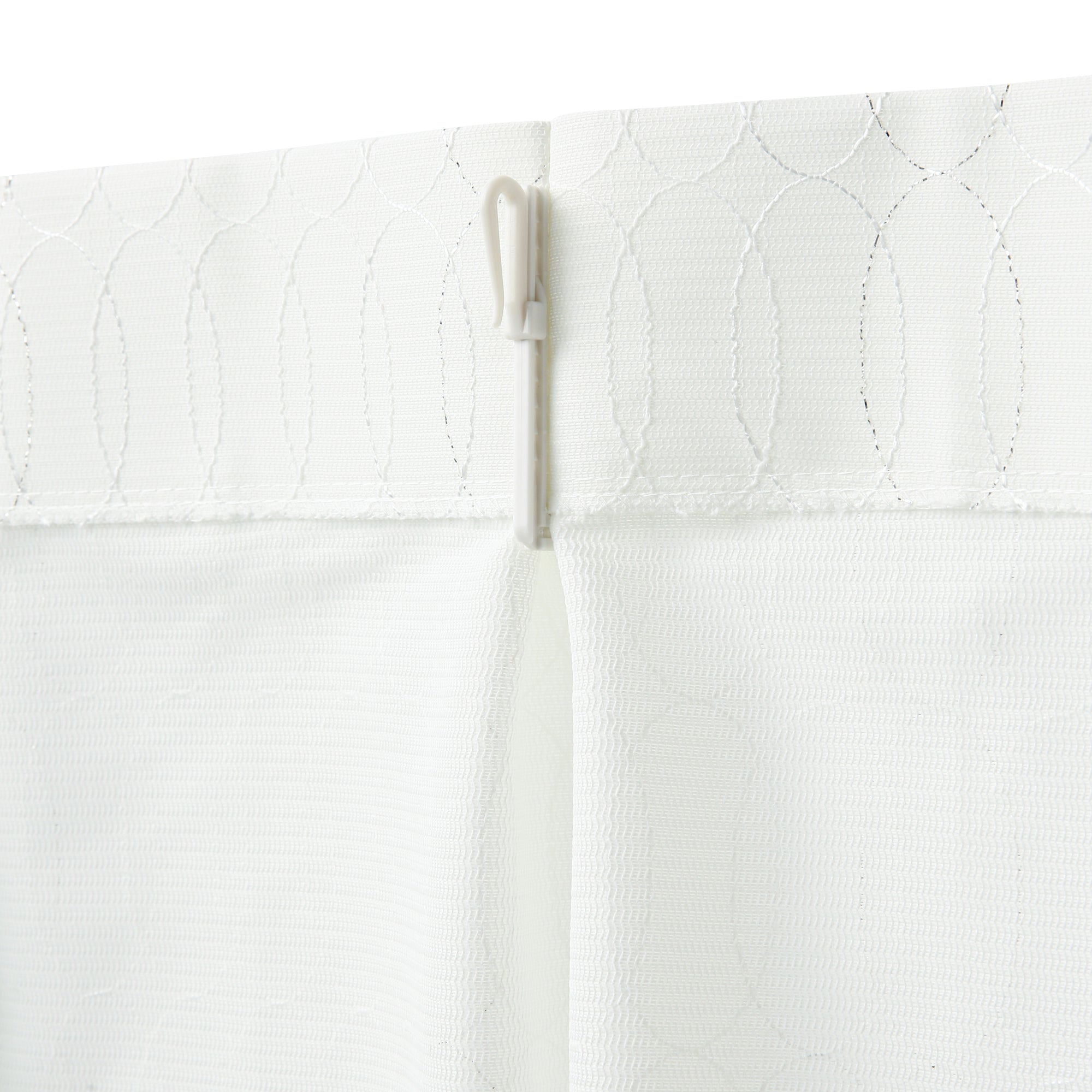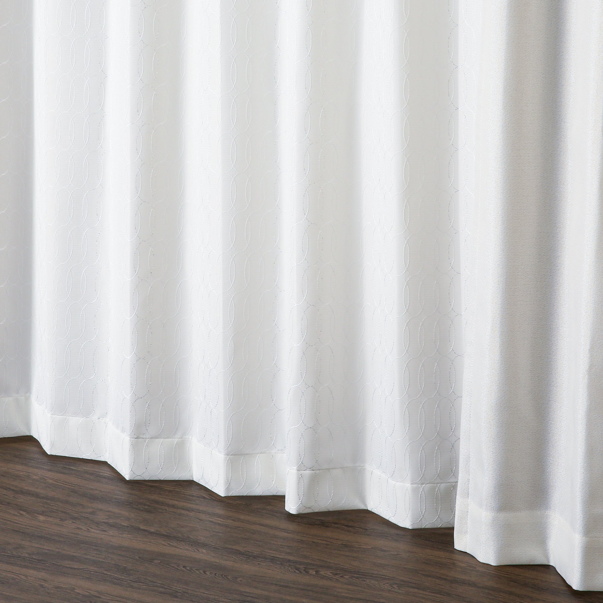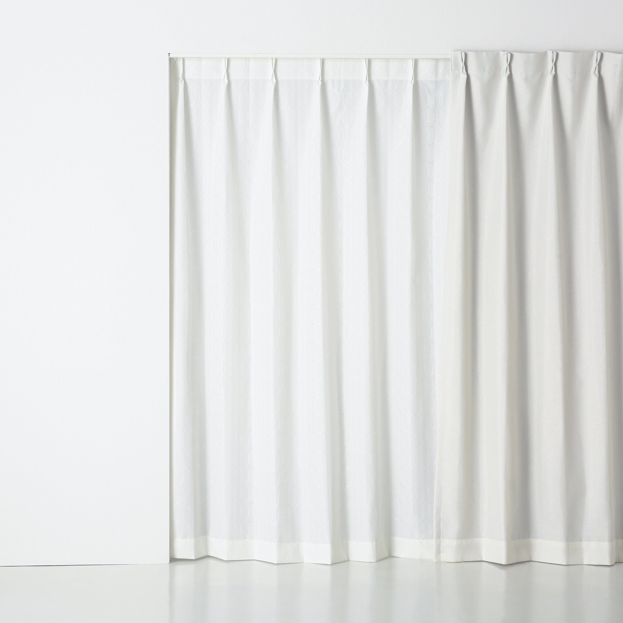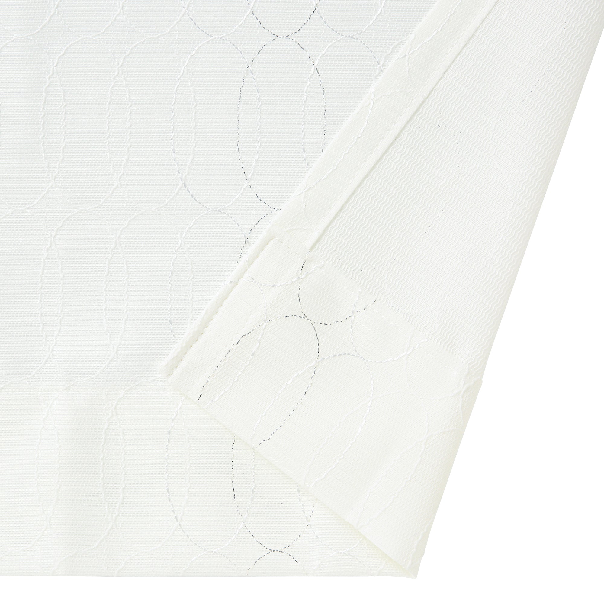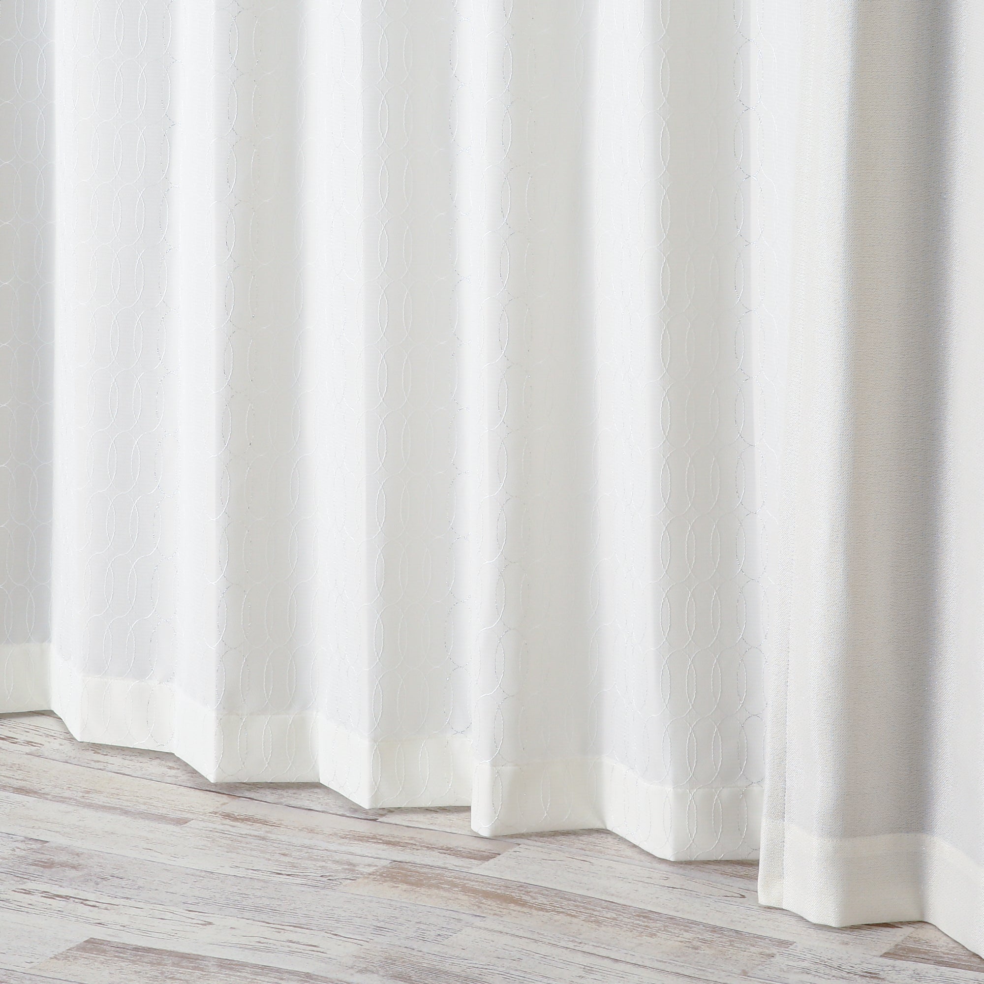 楕円形の刺繍をほどこしたレース生地です。 アクセントとしてところどころラメ糸が使用されています。 遮熱・UVカット・オフシェイドを搭載しており、機能性とデザイン性、どちらも兼ね備えたカーテンです。