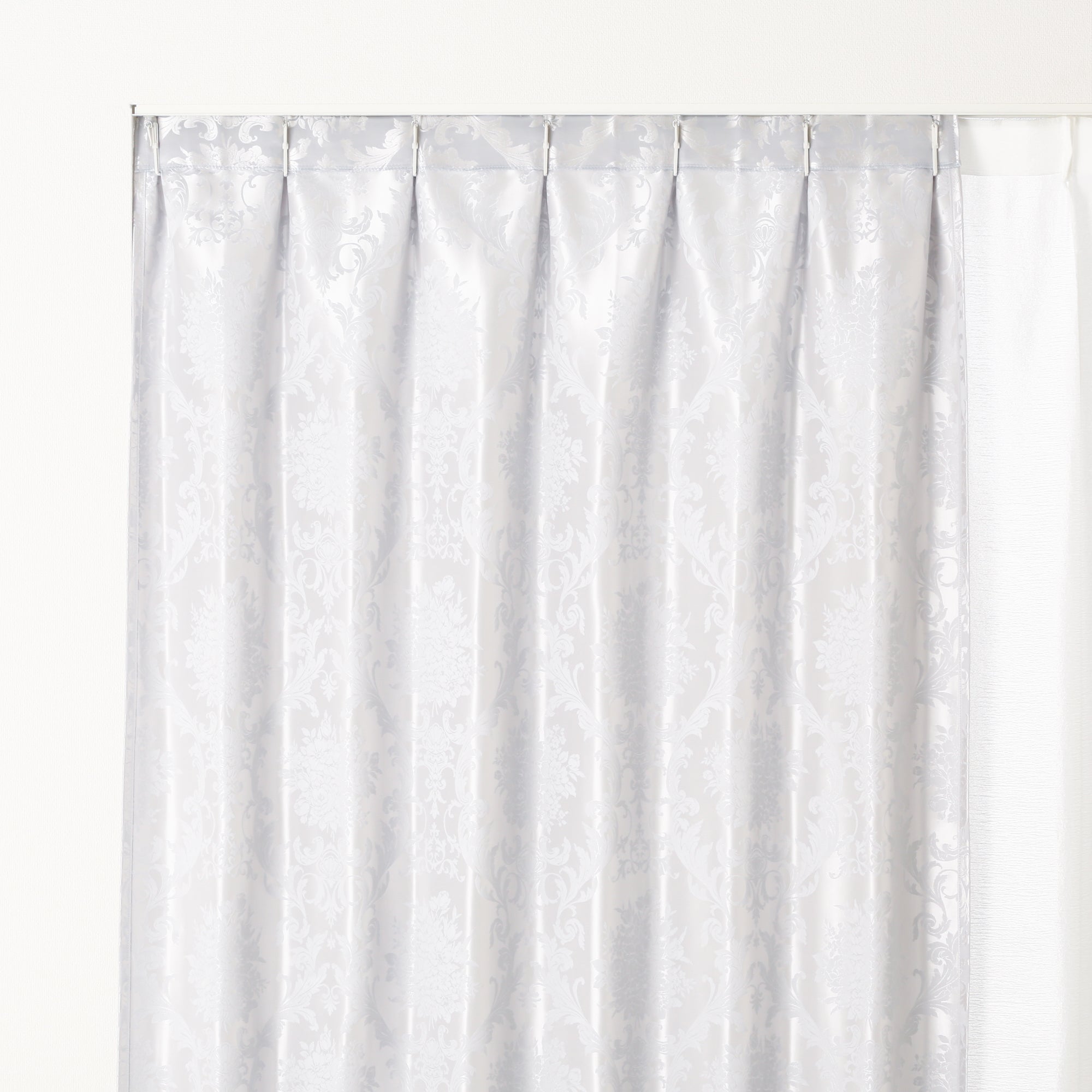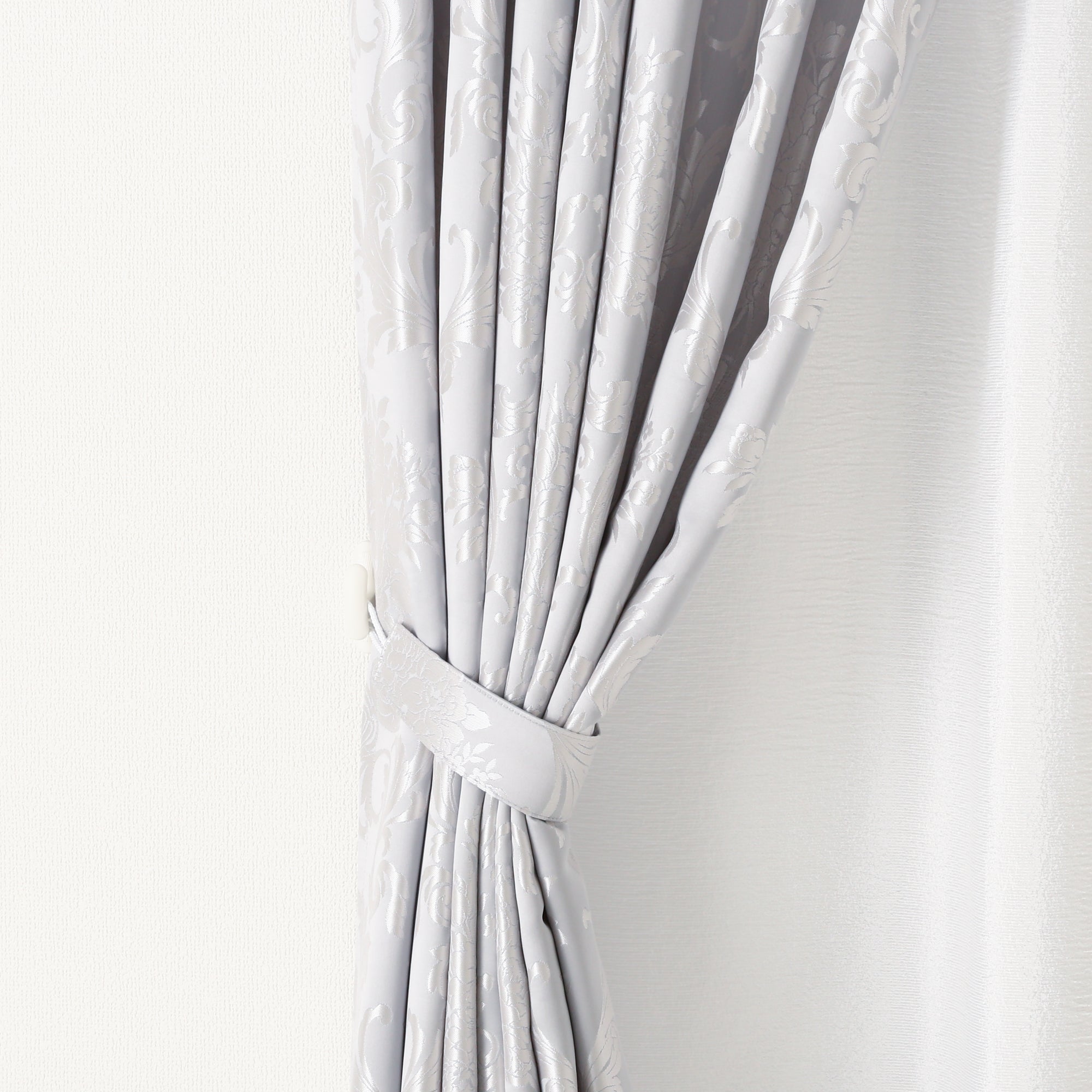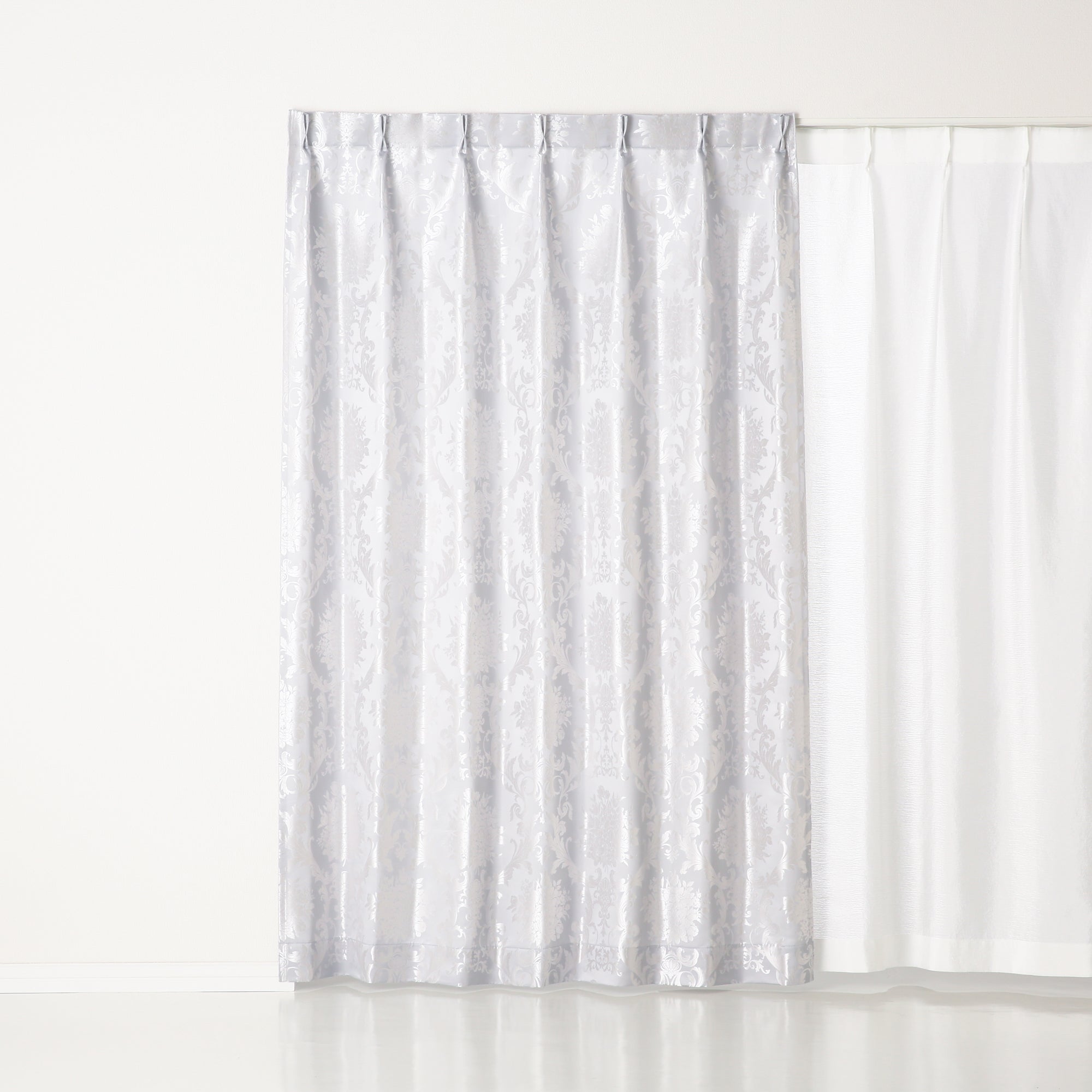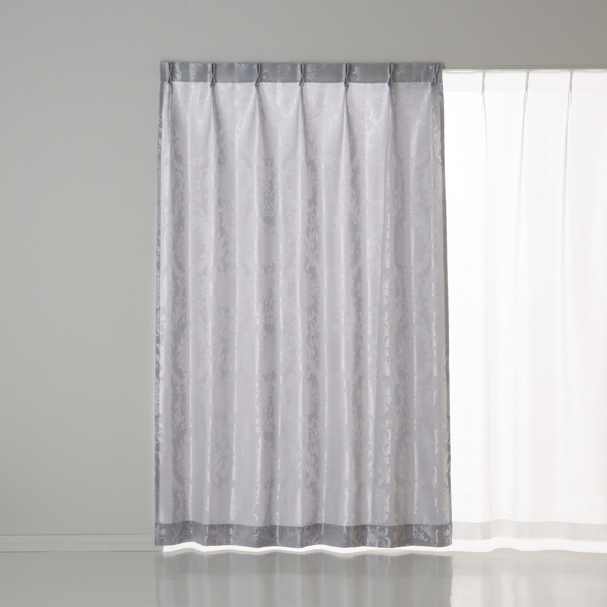 上品な光沢のサテン地が美しいジャガード織りのカーテンです。 エレガントなフラワーオーナメント柄を表現しています。シックなカラー2色展開です。 ※掲載画像はウェーブ加工を施しております。