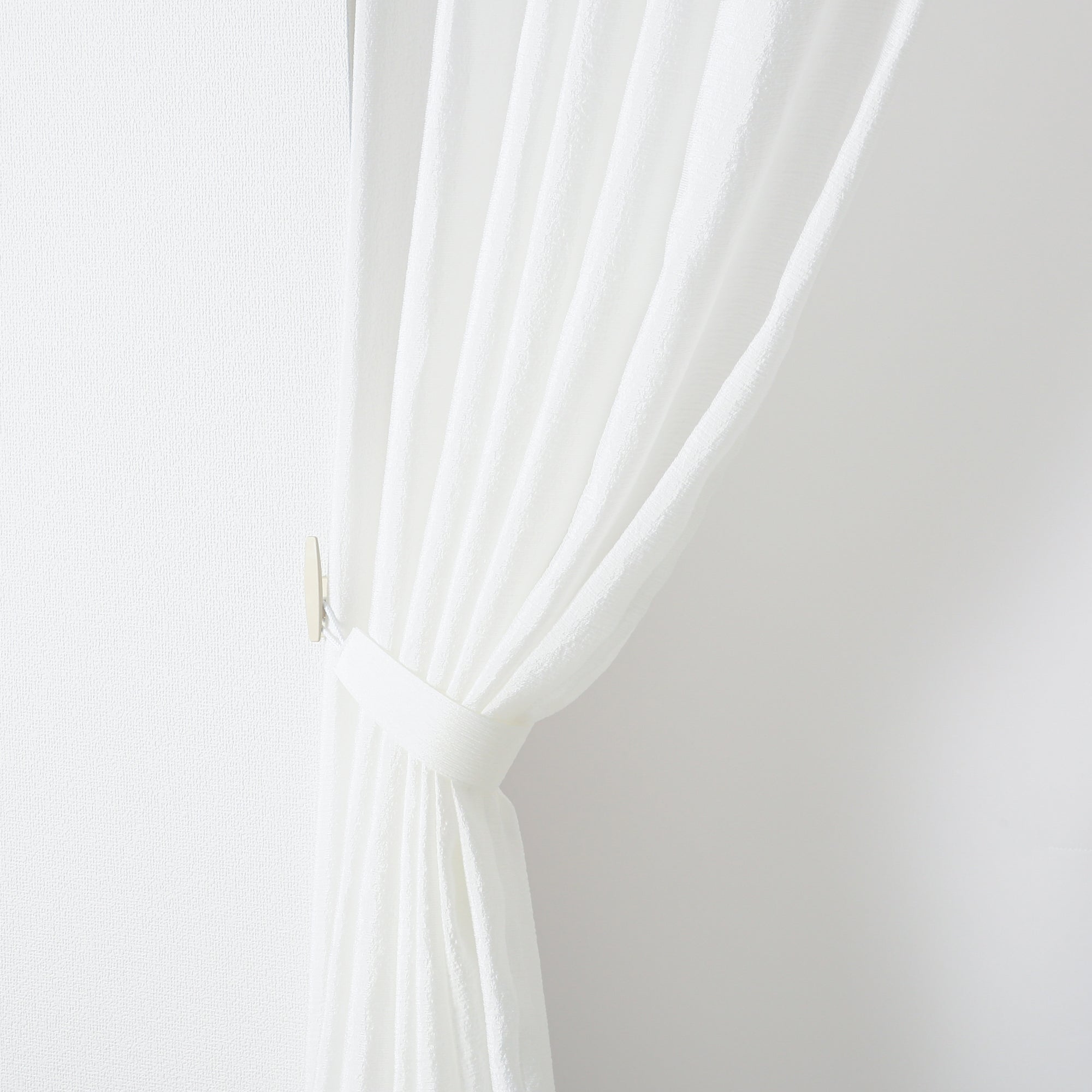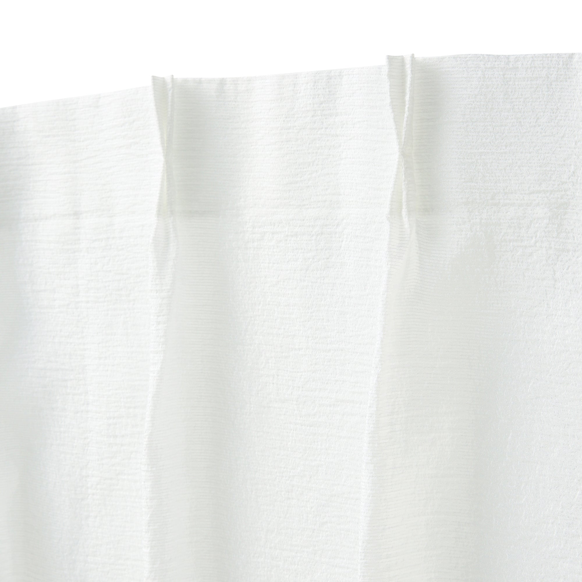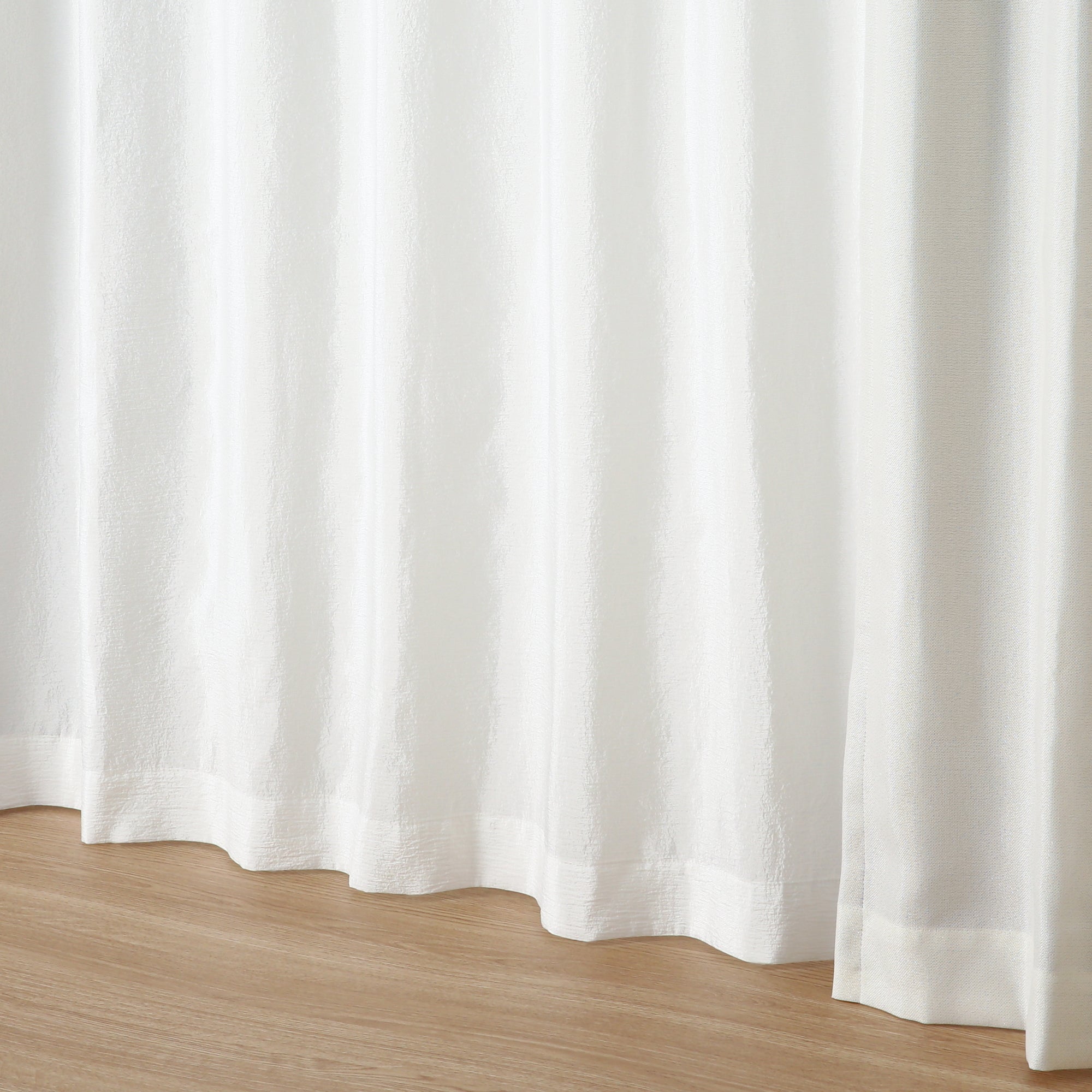 UVカット90%以上、遮熱、防炎加工と機能性に優れたレースカーテンです。 遮像性がありながら光を取り入れ、お部屋を明るくしながらもUVカット機能付きなのは嬉しいポイント。リビングなど、日中を過ごすお部屋におすすめです。 柔らかなしわの風合いでお部屋をやわらかい印象にしてくれます。