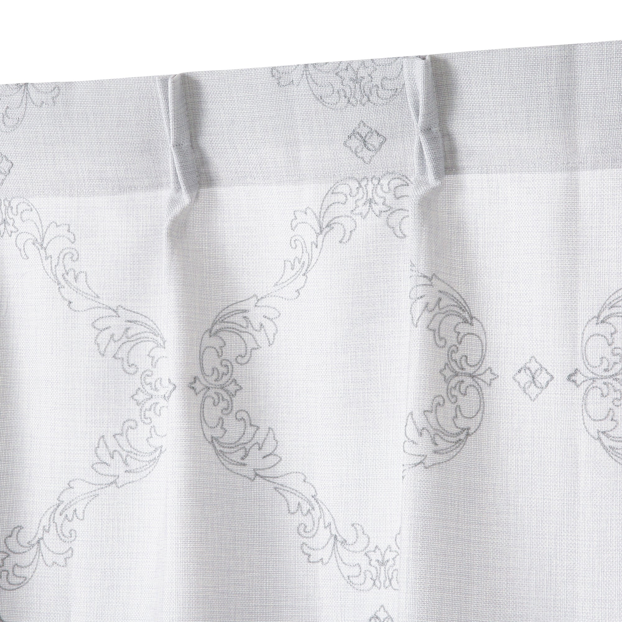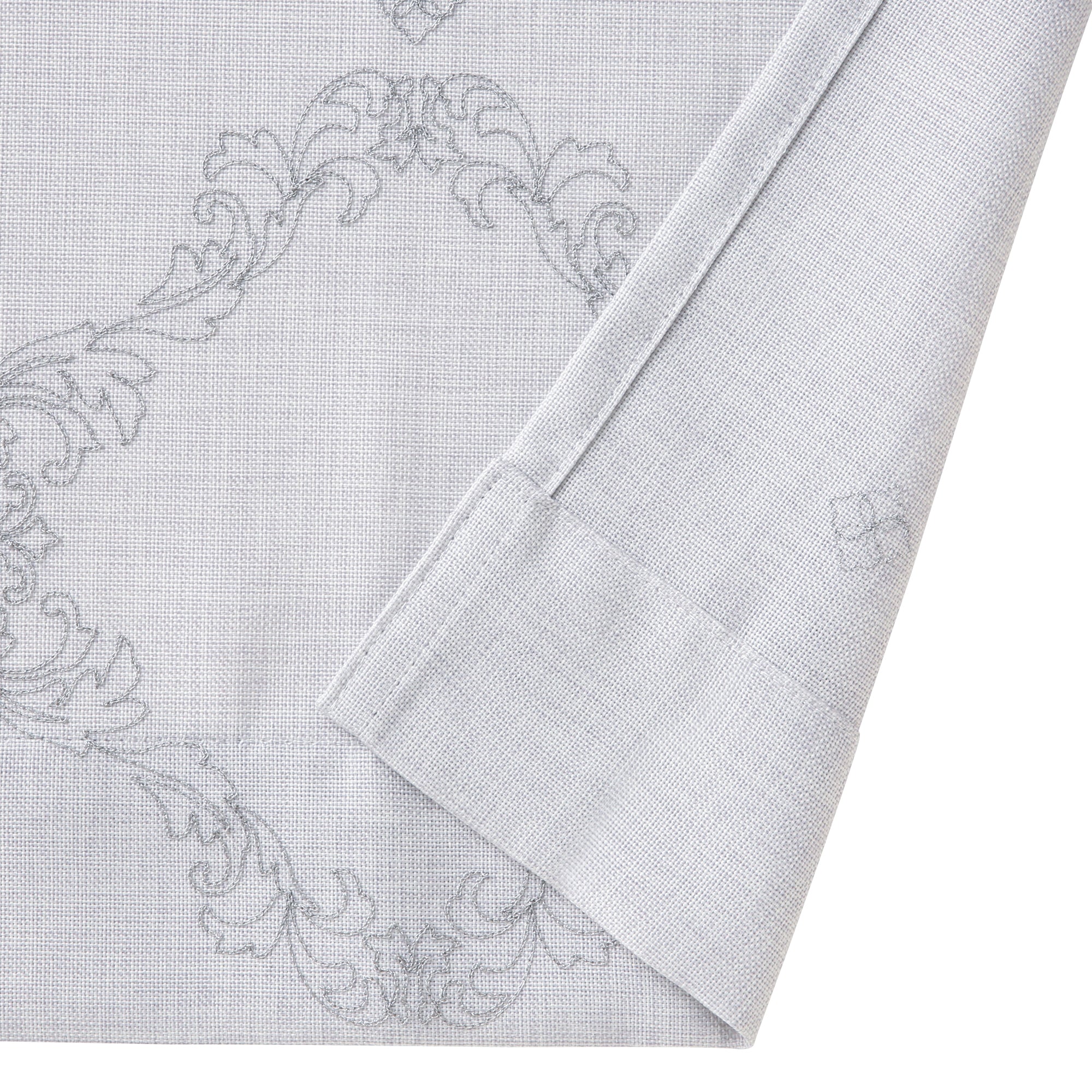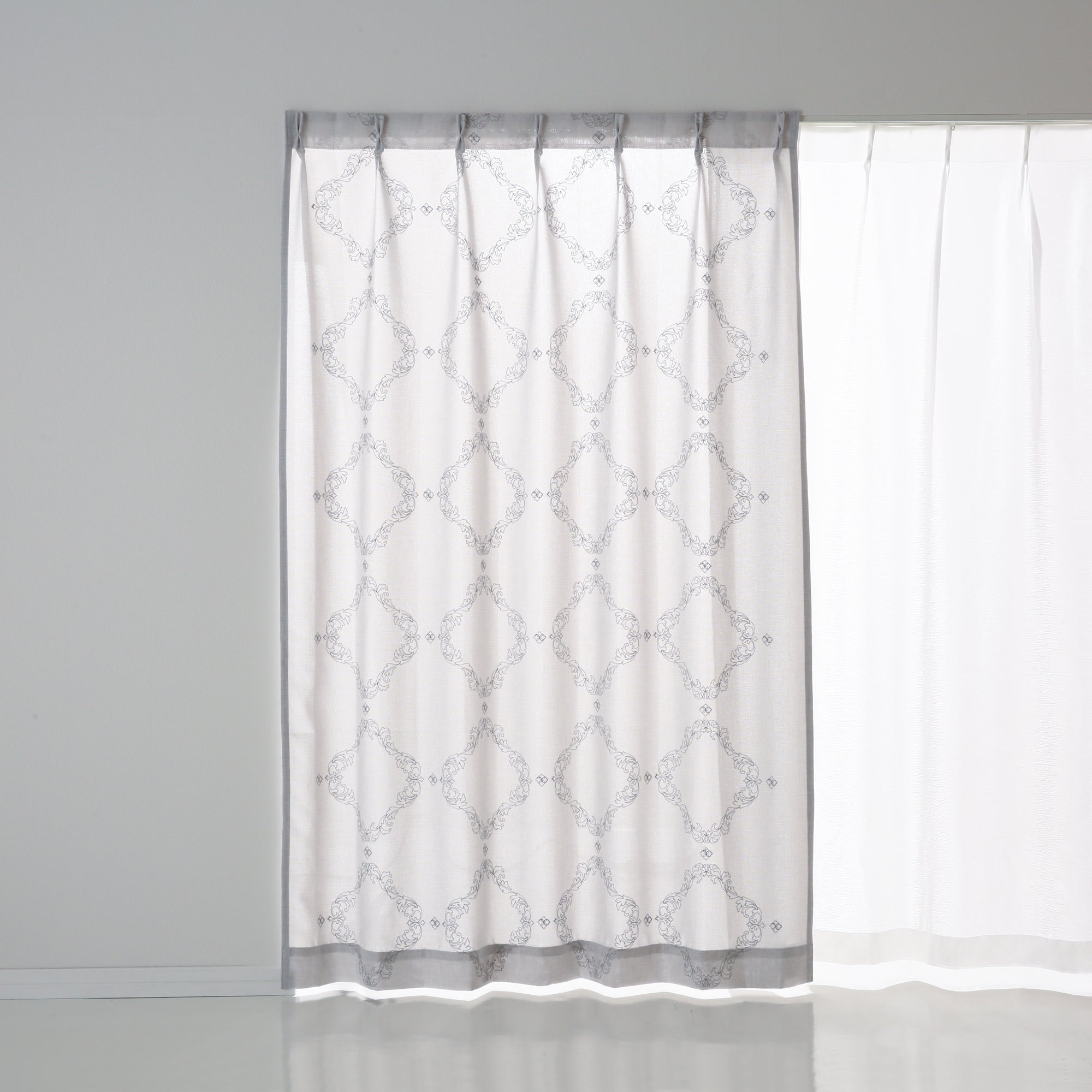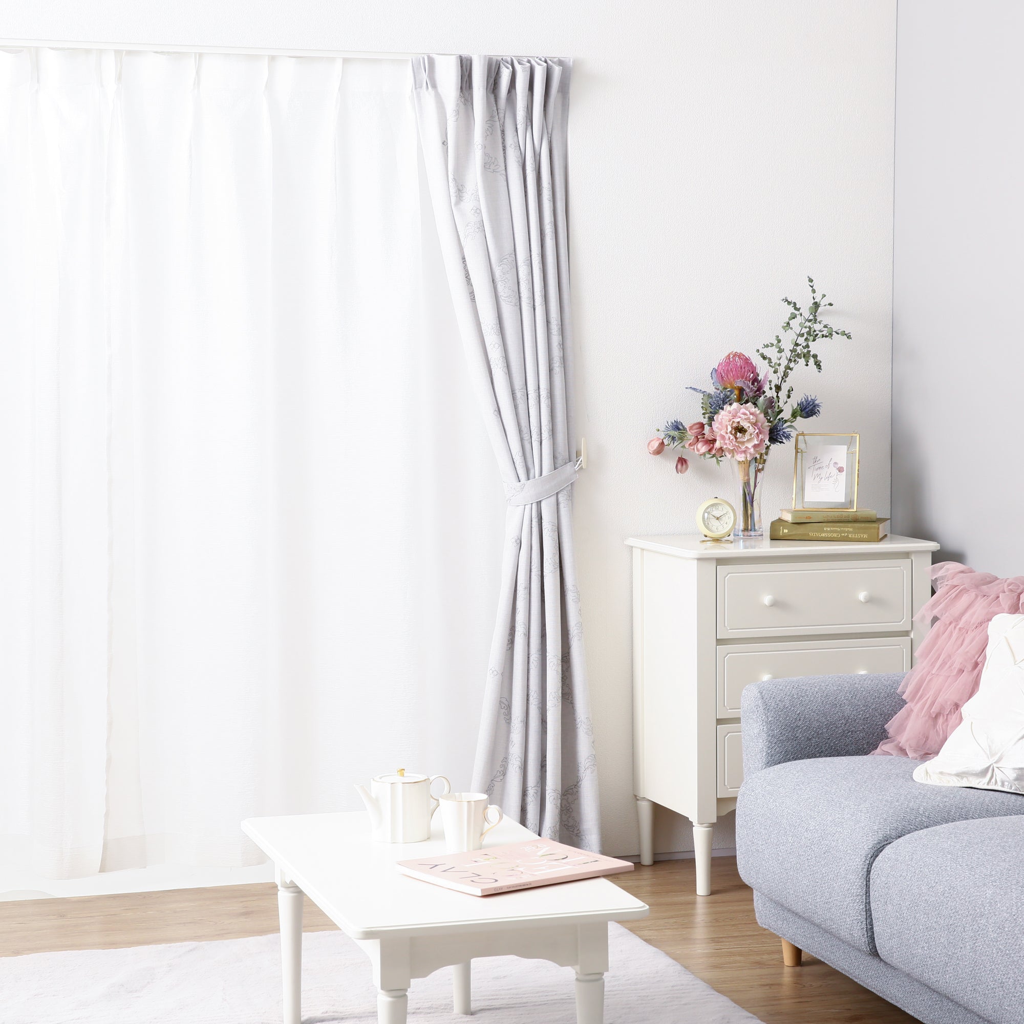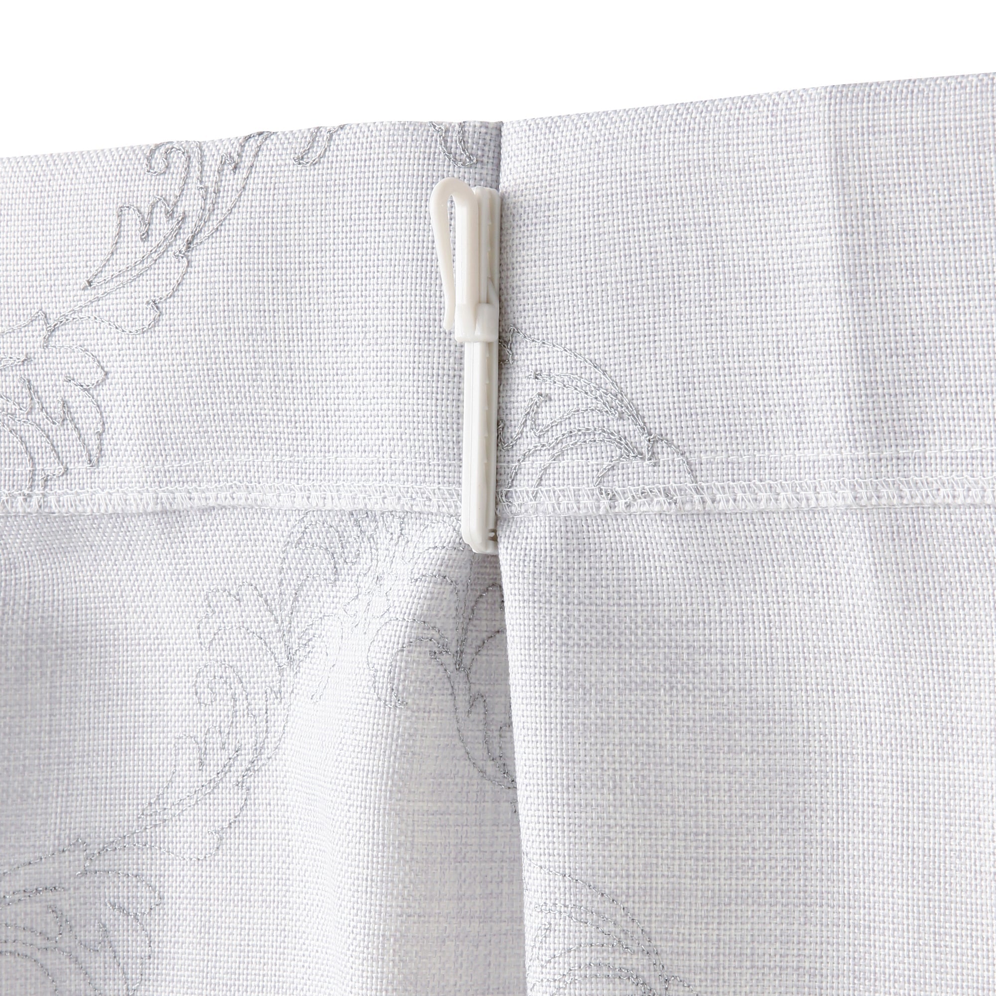 シャンブレー調の上品な生地に、シルバーのラメ刺繍で美しい曲線のオーナメントモチーフを施したカーテンです。 ラメ刺繍で華やかさもありながら全体的にはエレガントな印象のまとまりのあるデザイン。 シンプルななかにこだわりを感じるアイテムです。 ※掲載画像はウェーブ加工を施しております。