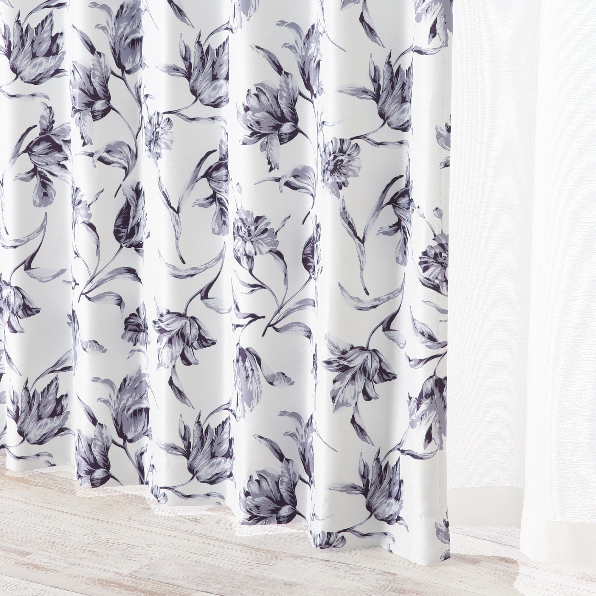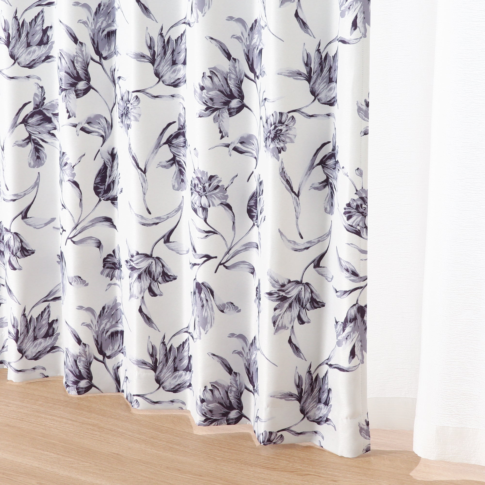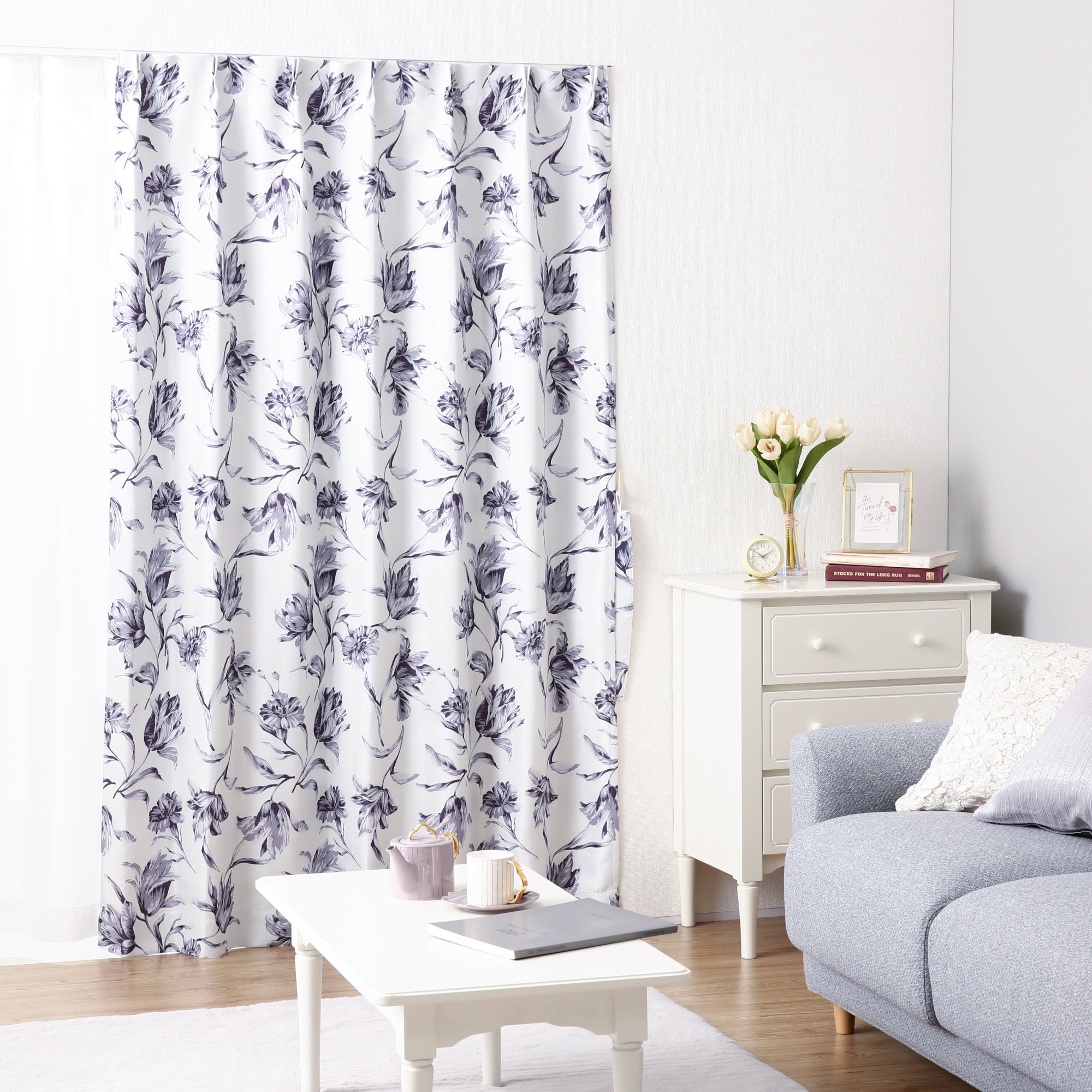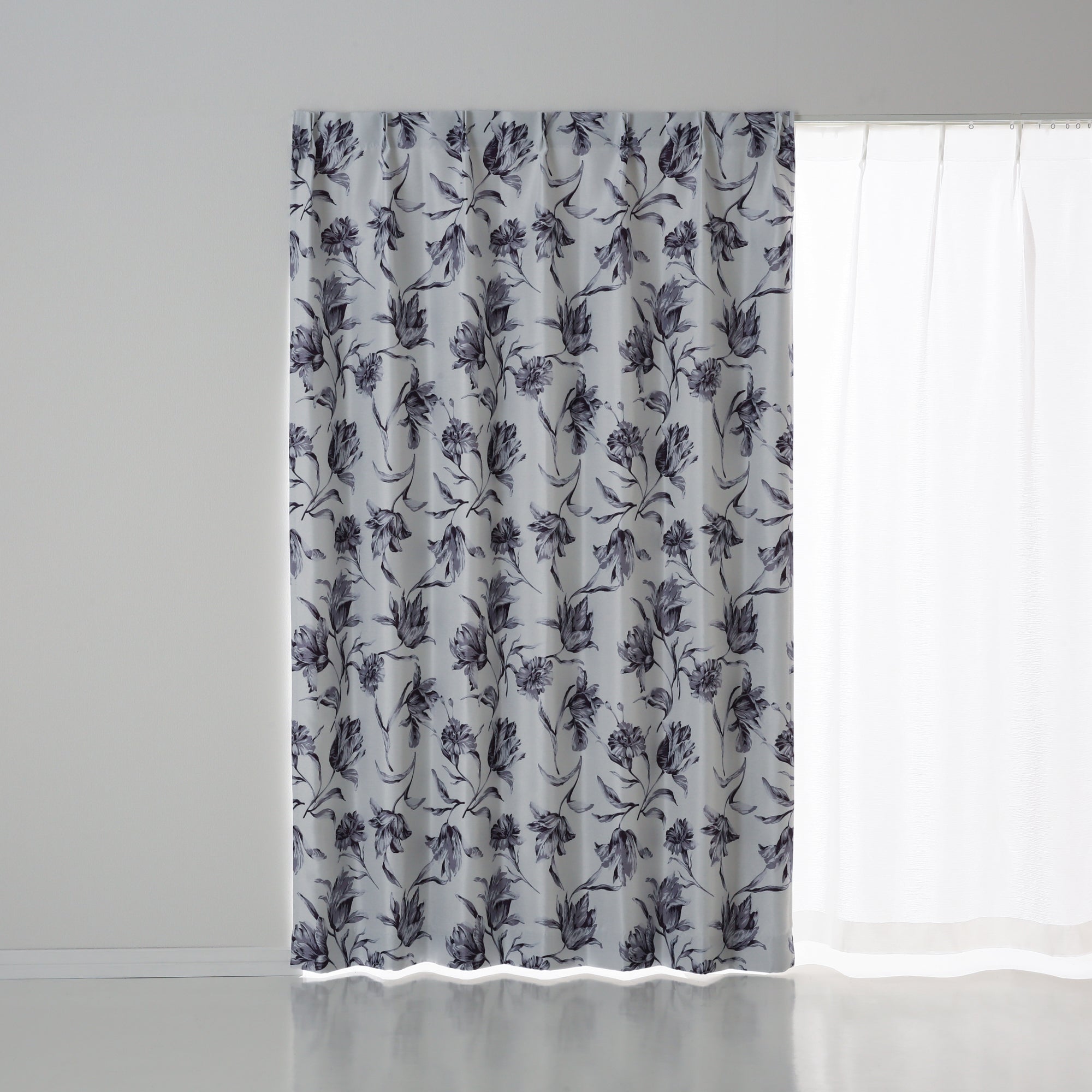 ブライト感のある遮光生地に曲線が美しいチューリップのデザインを施したカーテンです。 ベージュとモノトーンの落ち着きあるカラーで、2配色をご用意しました。 ナチュラルなインテリアにも馴染みやすい、明るい雰囲気になるカーテンです。 ※摩擦、色移りにご注意ください。 ※掲載画像はウェーブ加工を施しております。