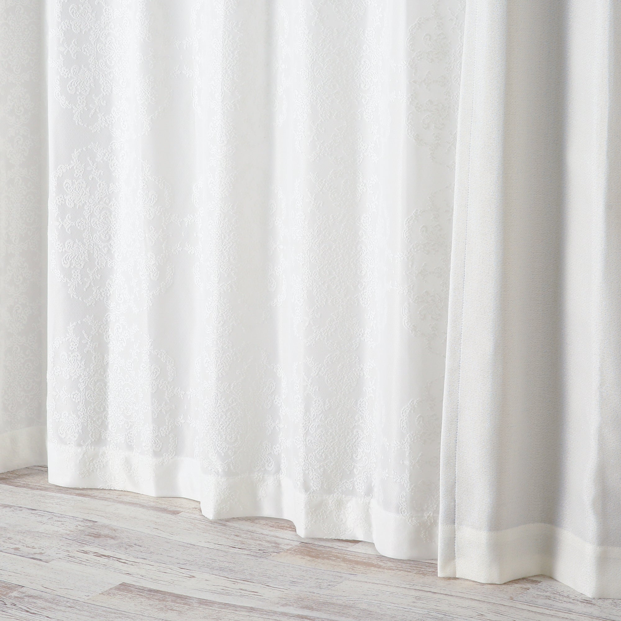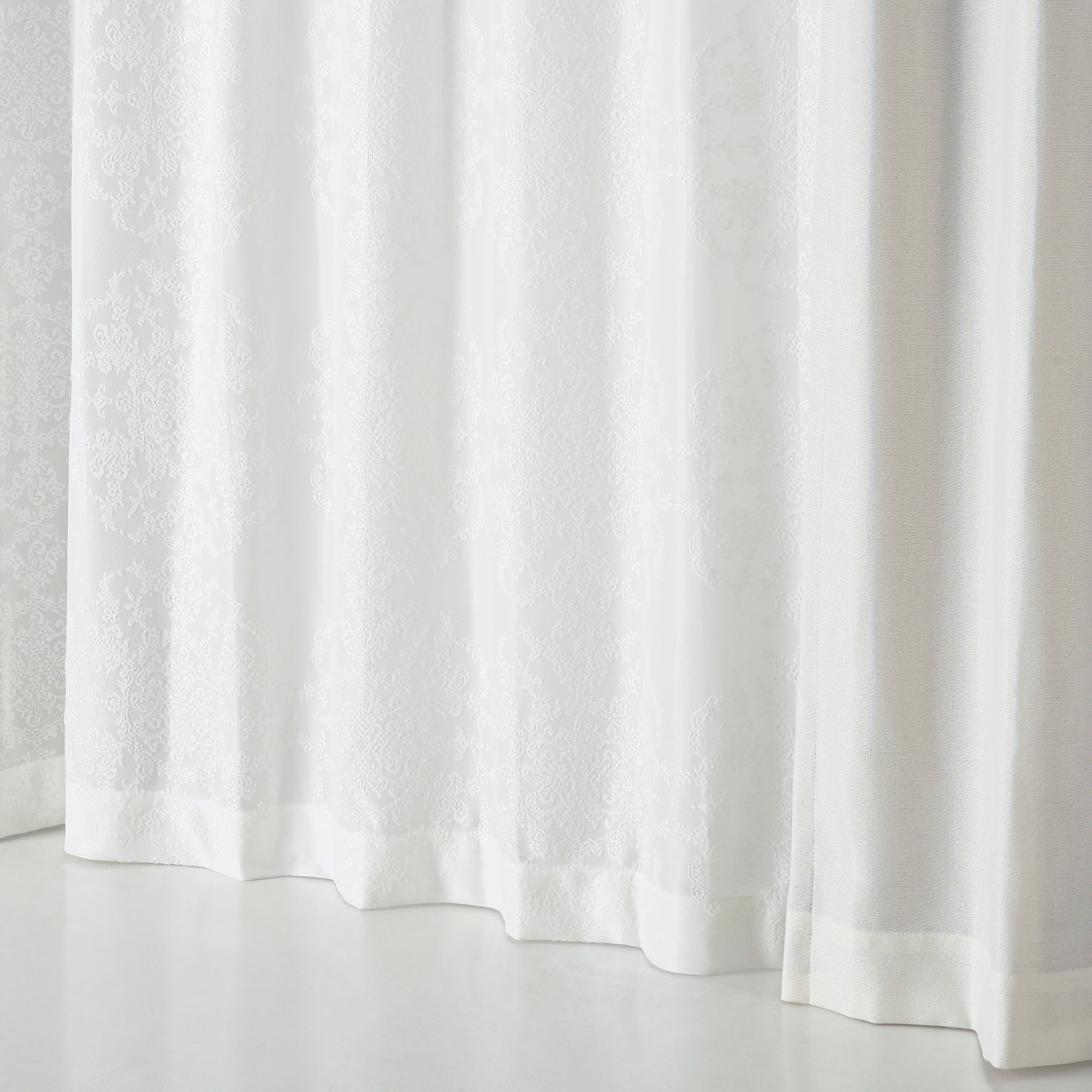ドイリーレースを大胆に美しく描いたレースカーテンです。 シンプルなホワイトは合わせるインテリアを選ばない万能カラーです。 太陽光を室内に取り入れつつ外からは室内が見えにくいミラー機能付きで、安心してお使いいただけます。